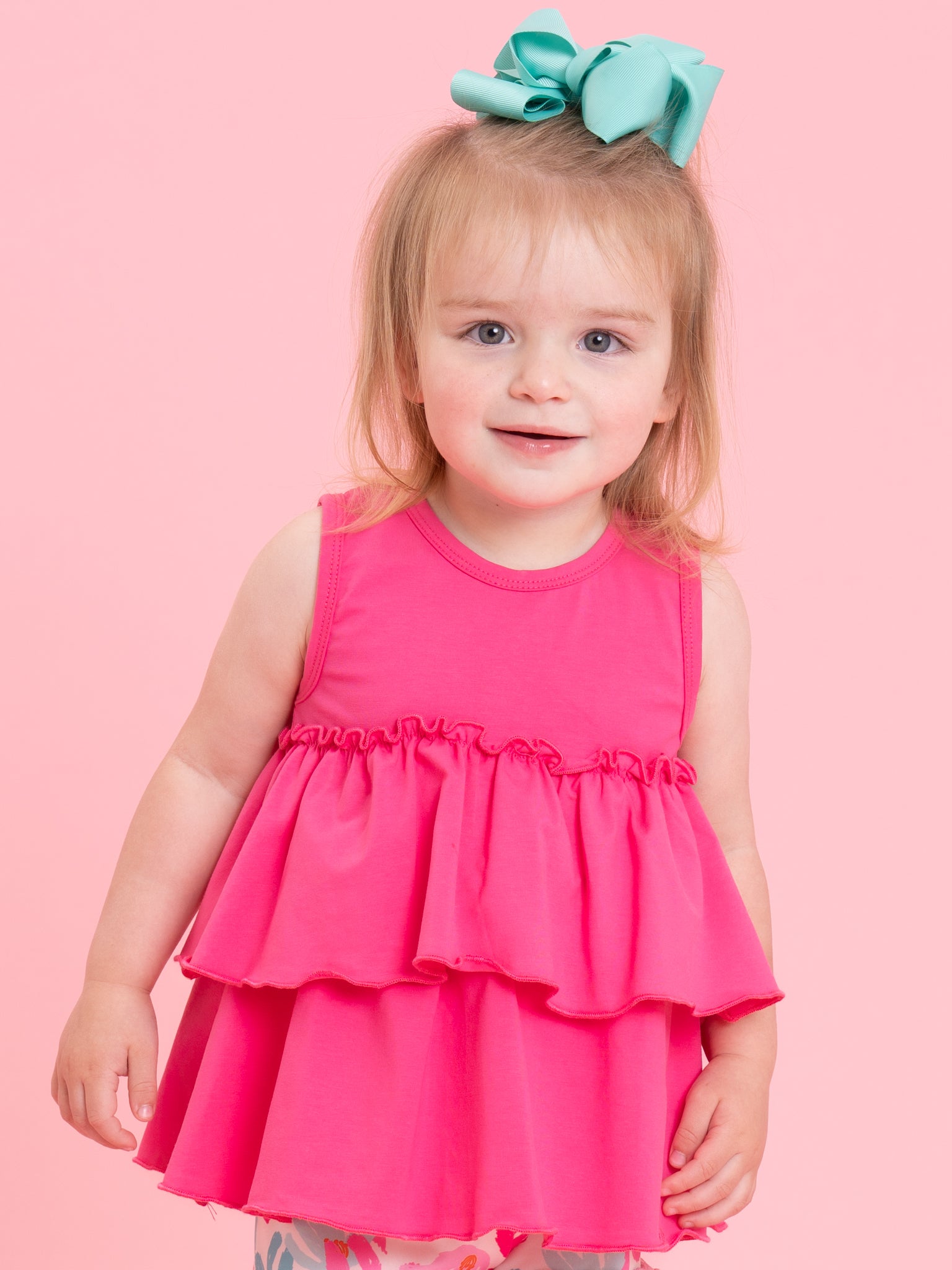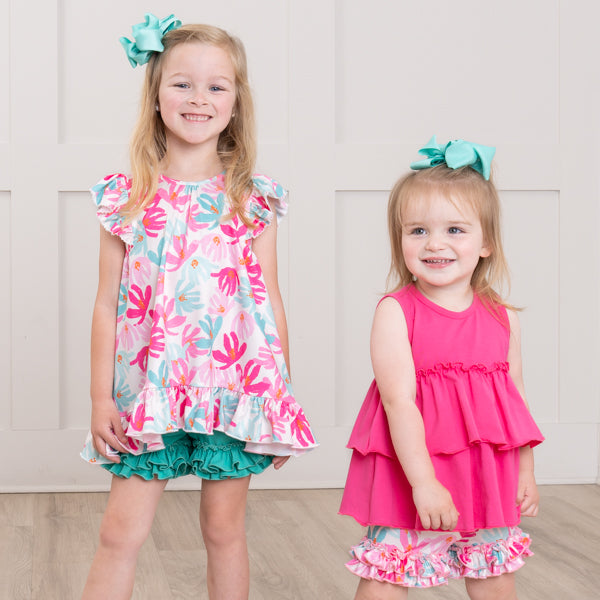 Flamingo Fizz Embroidered Plaid Ruffle Outfit