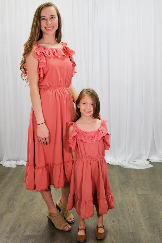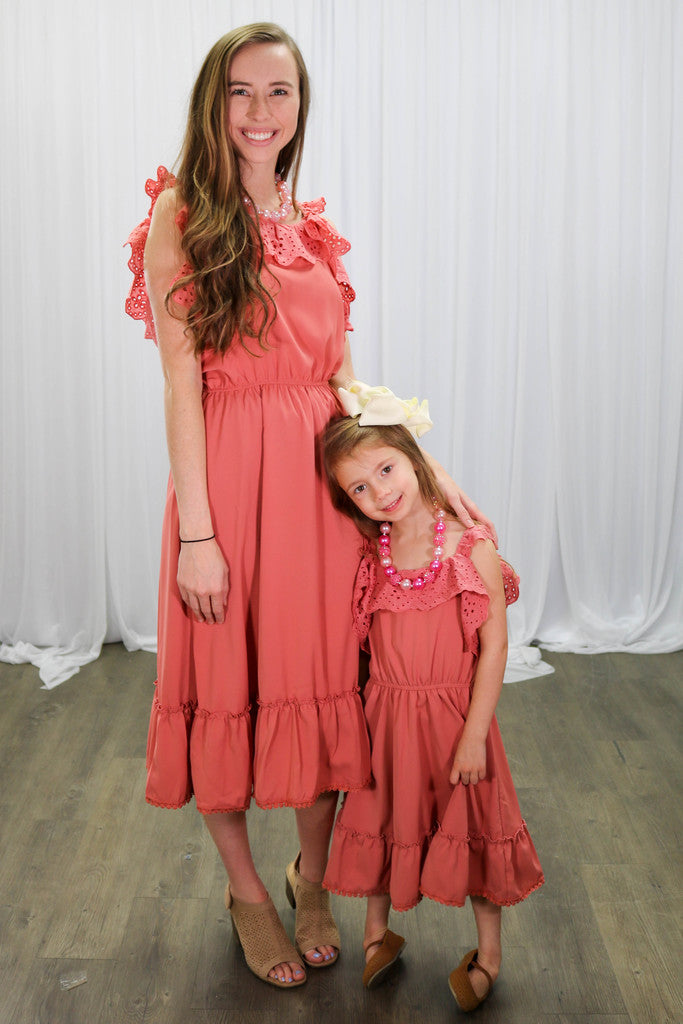 Mom & Me Dusty Rose Ruffle Midi Tank Dress