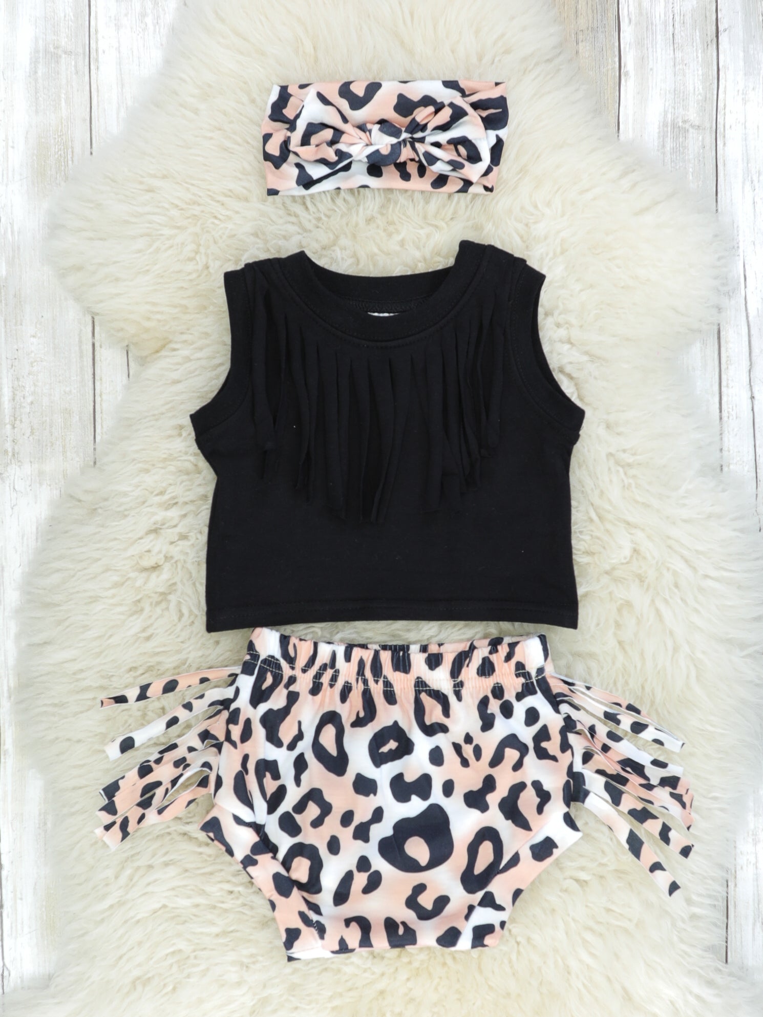 Black Top, Pink Leopard Bloomers, & Matching Headband Set