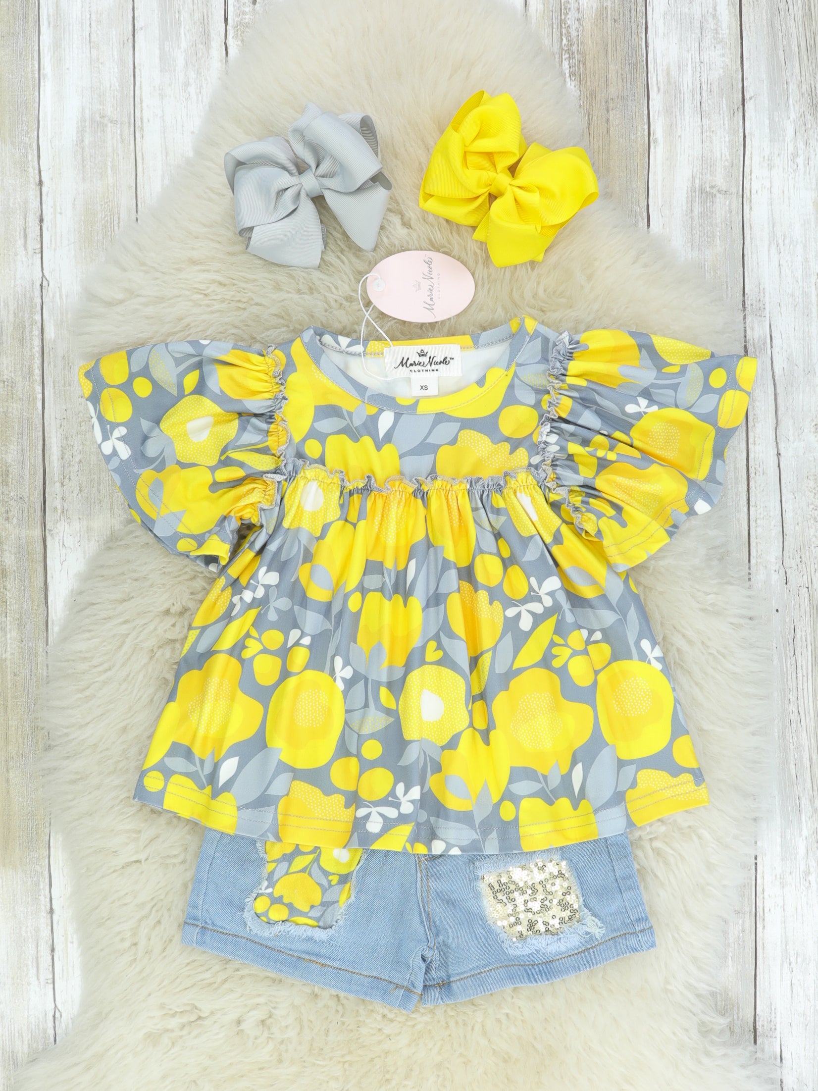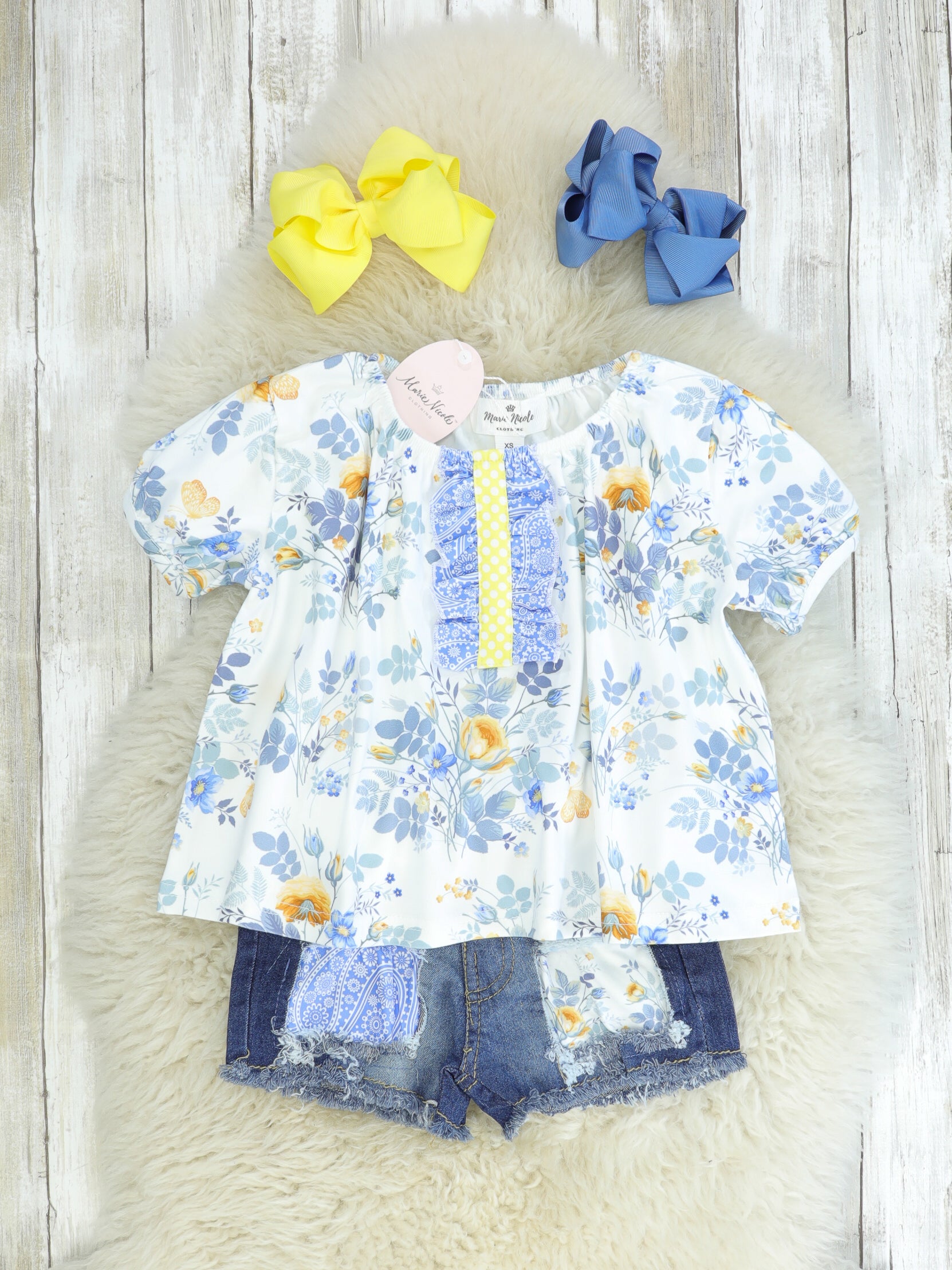 Sweet Floral Ruffle Top & Denim Shorts Outfit
