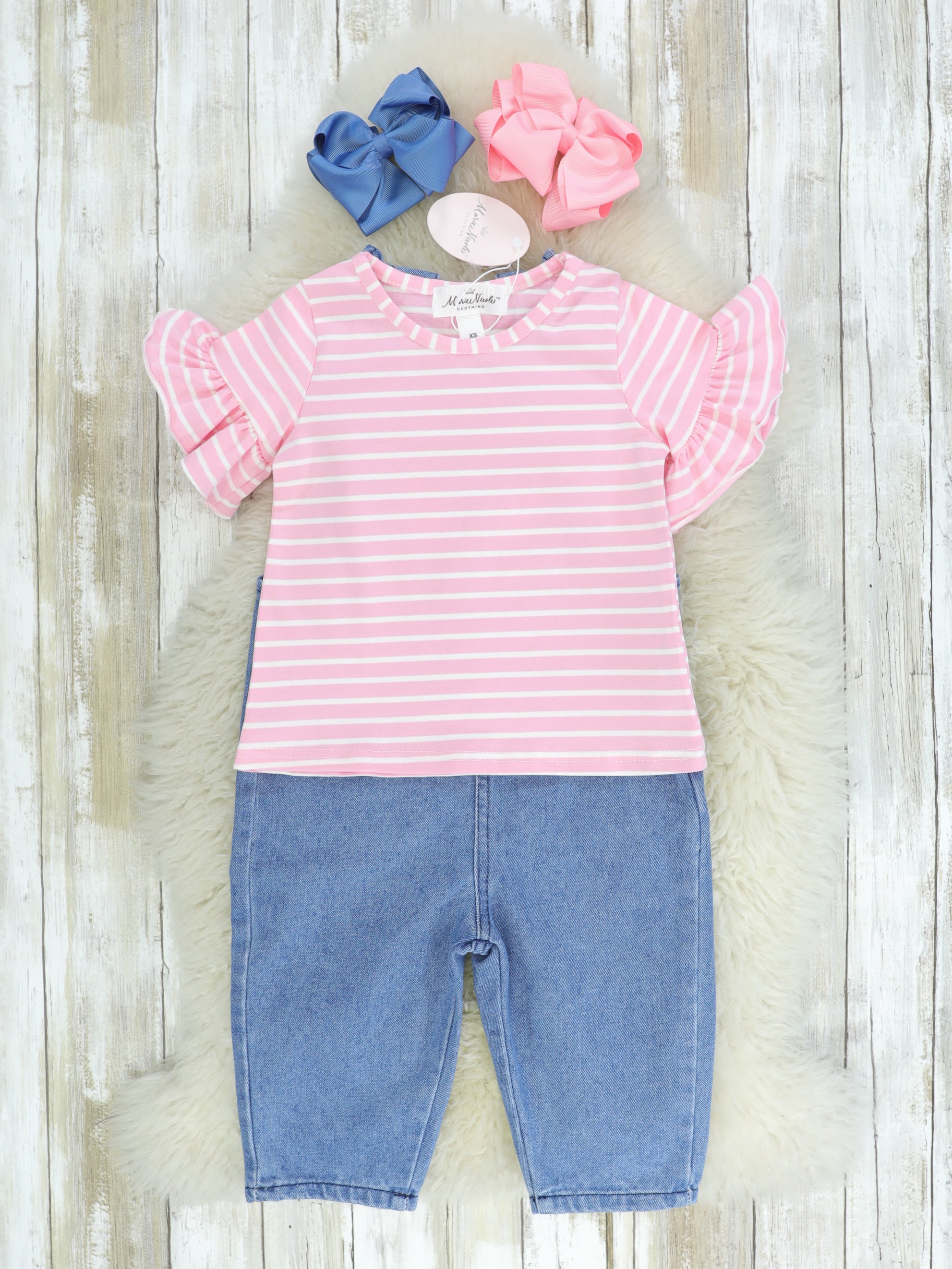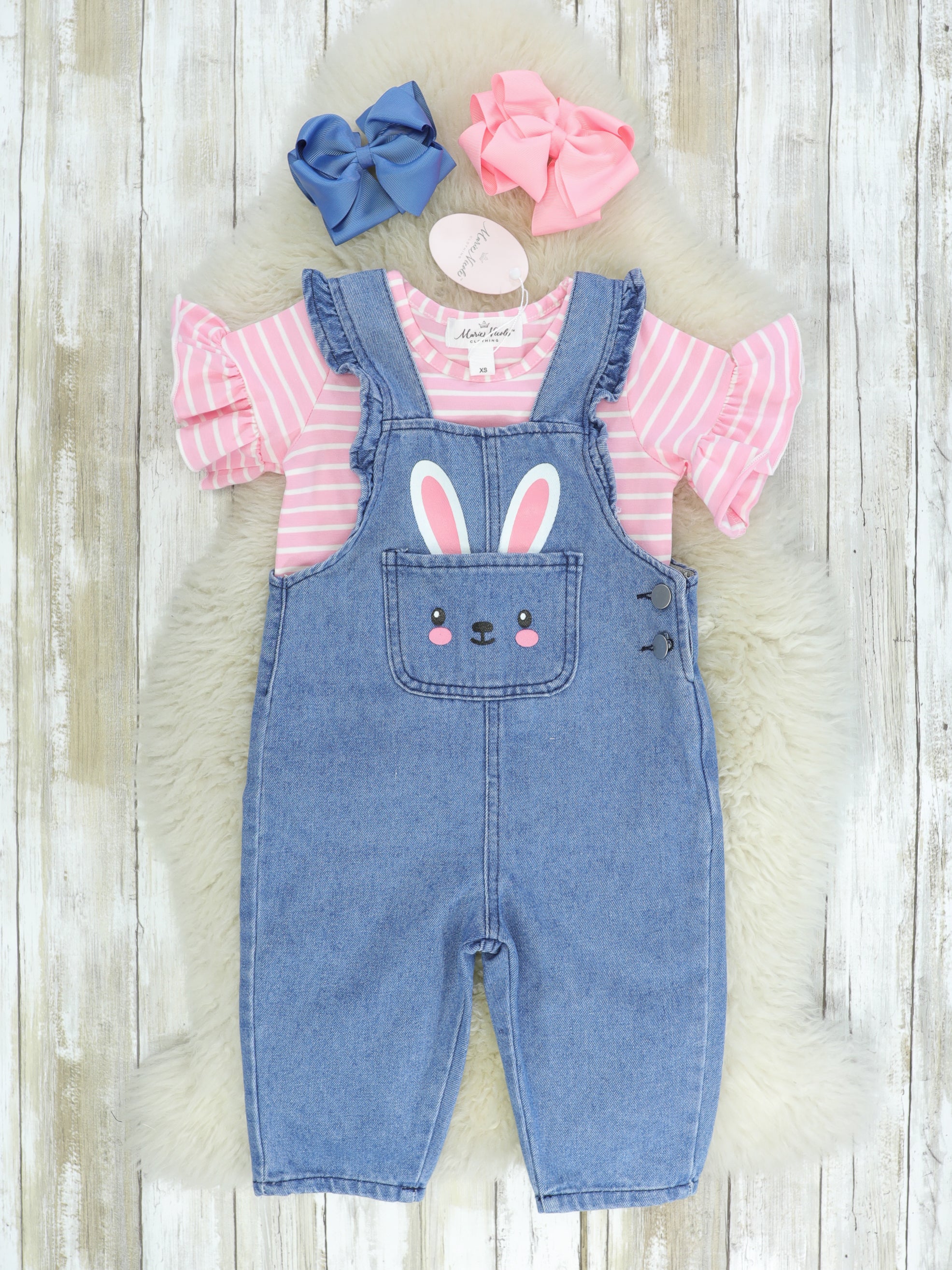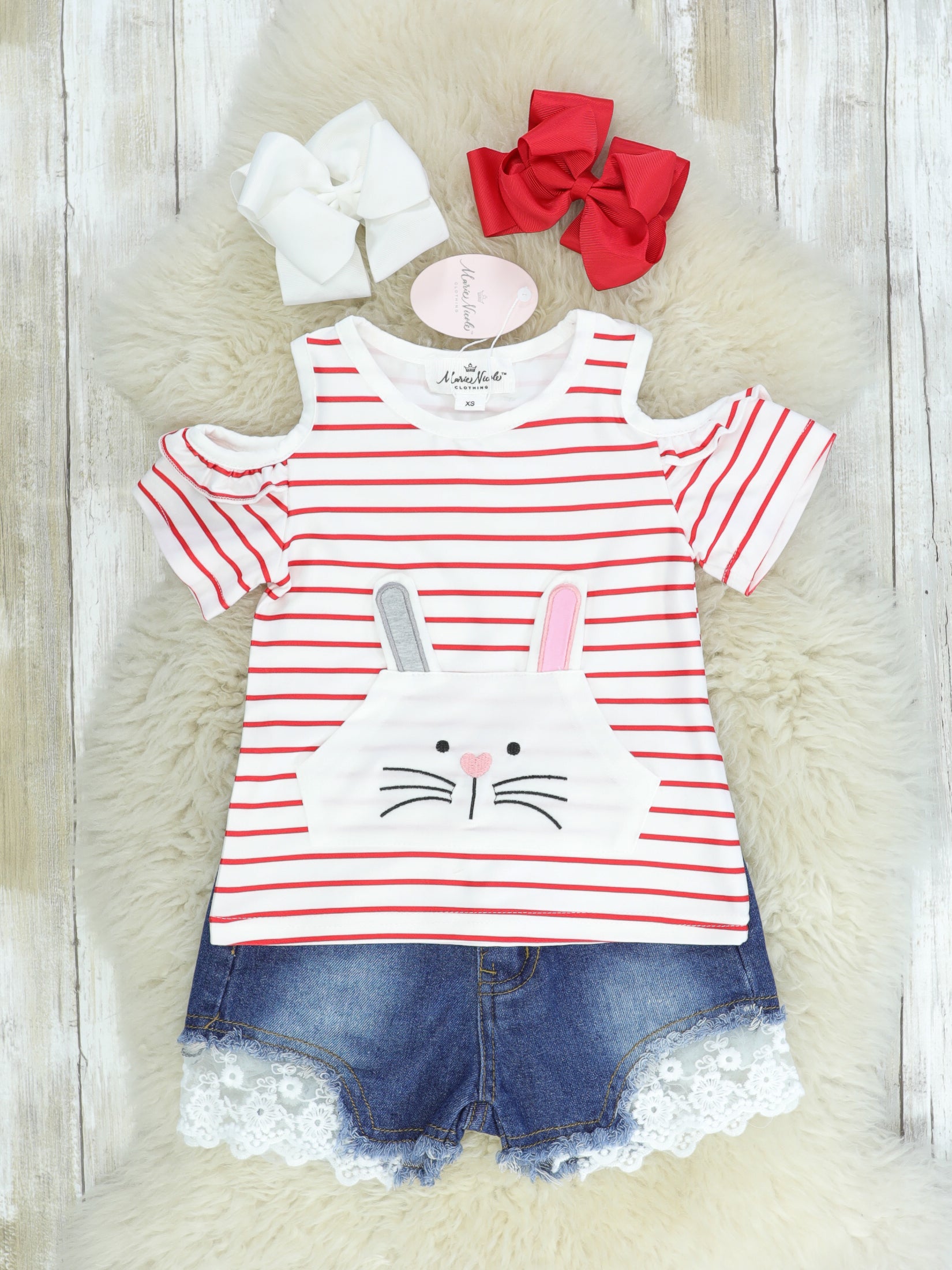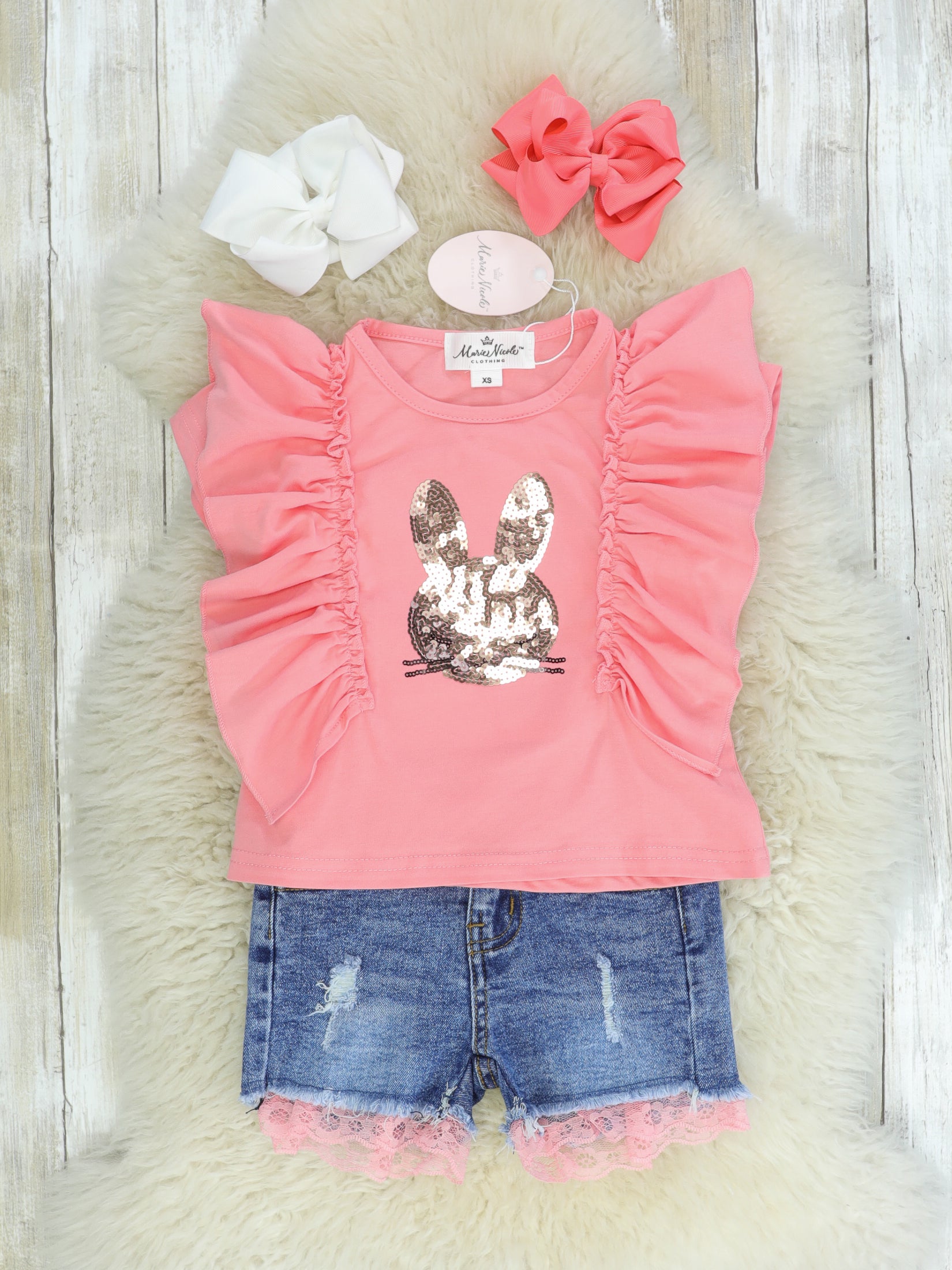 Sequin Bunny Coral Ruffle Top & Denim Shorts