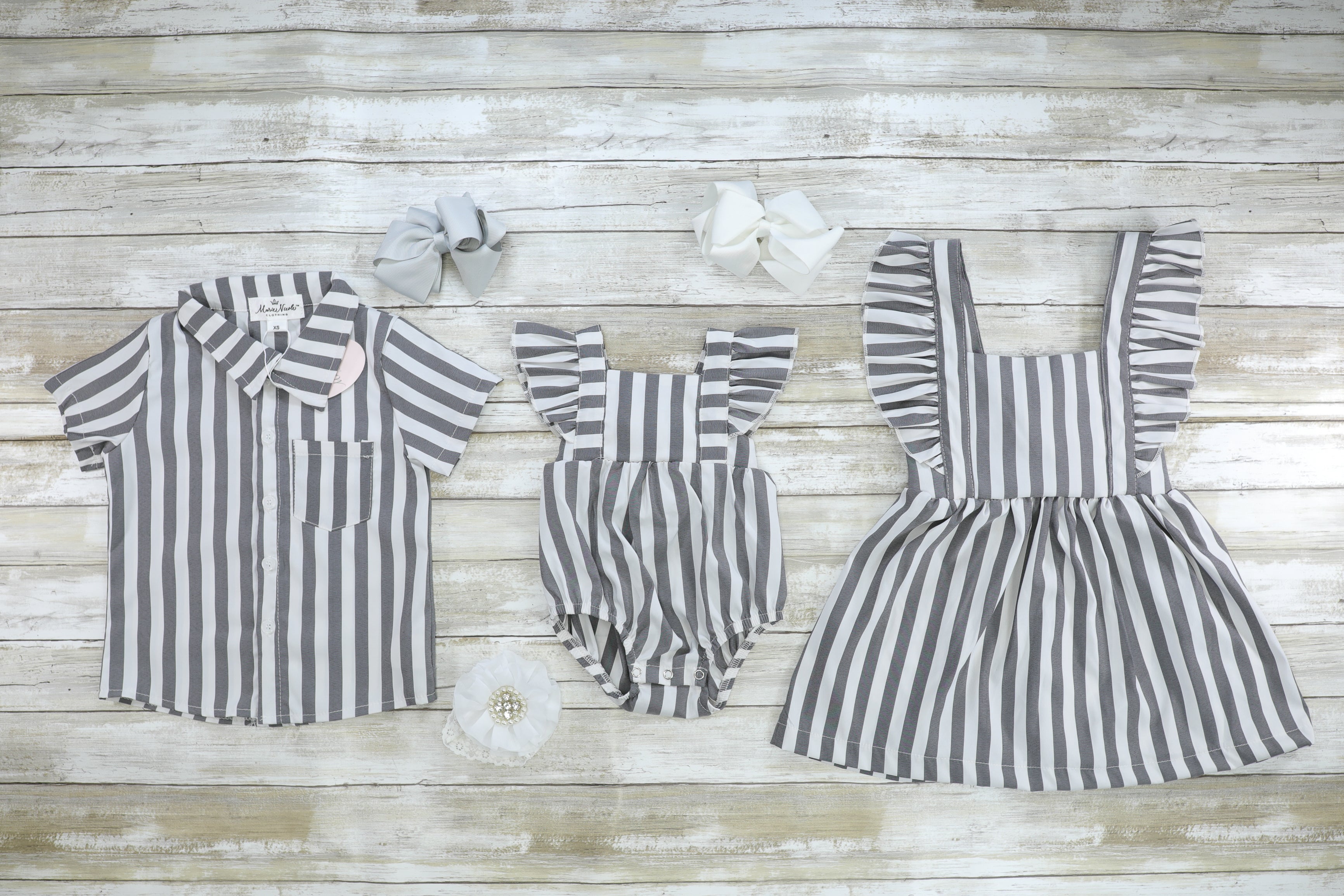 ✨A pinstriped moment✨ We love this basic sibling set! This dress features cute flutter sleeves!