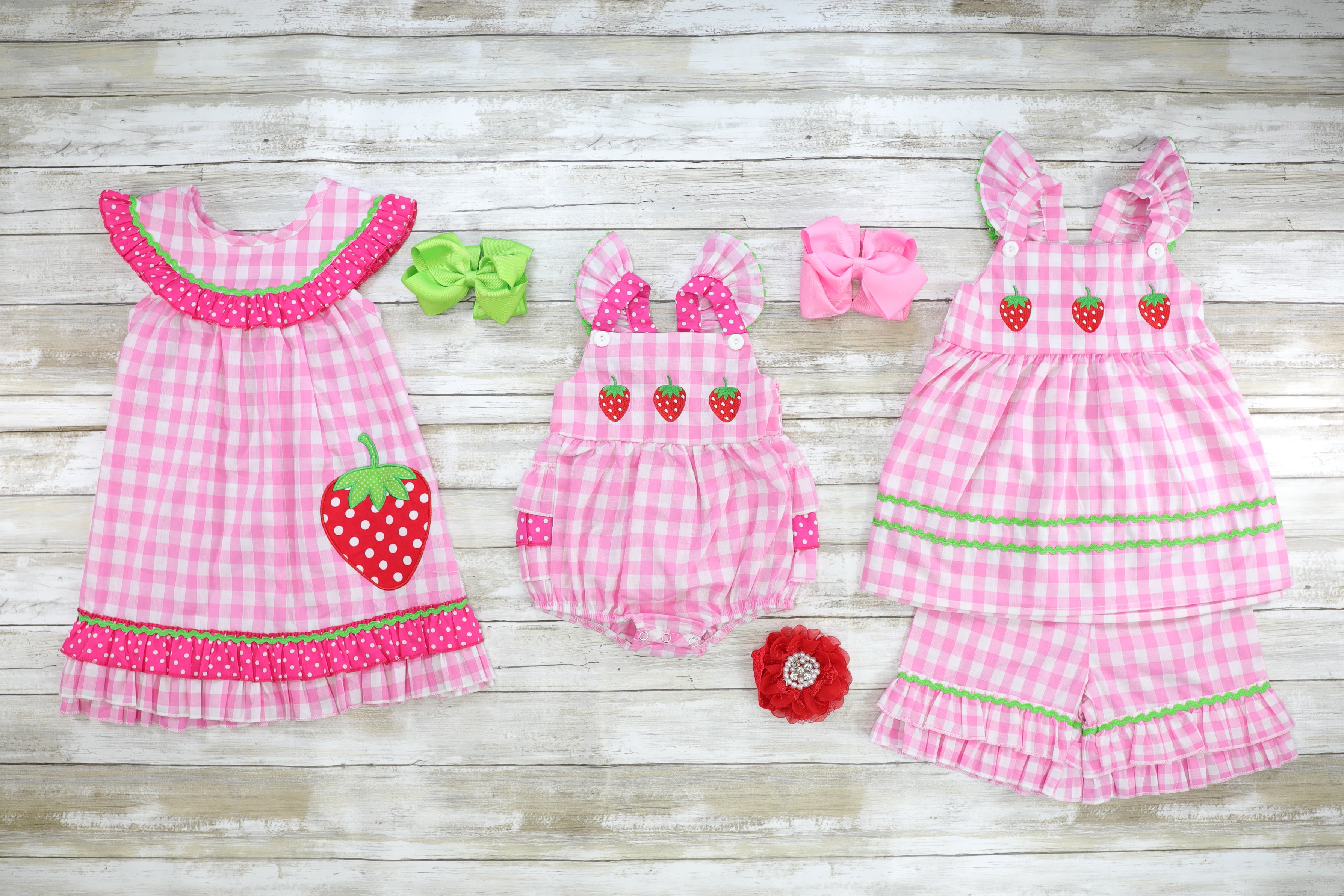 The cutest sister set for your BERRY special sisters! This bubble features adorable pink checks, polka dots, & ruffles.
