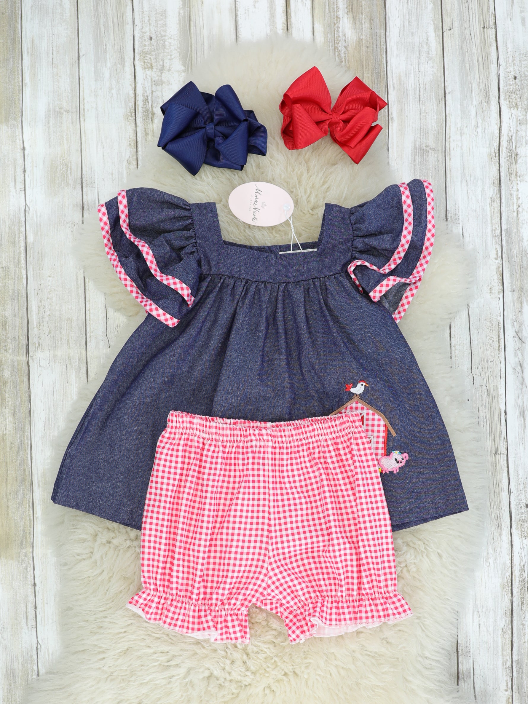 Chambray Barn Animals Ruffle Outfit