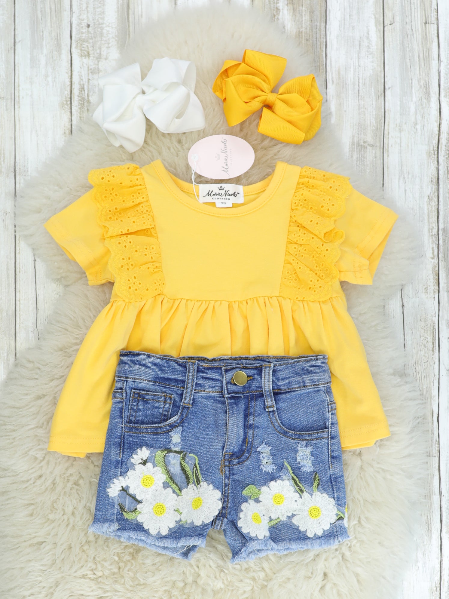 Pale Yellow Daisy Ruffle Top & Bloomer Set