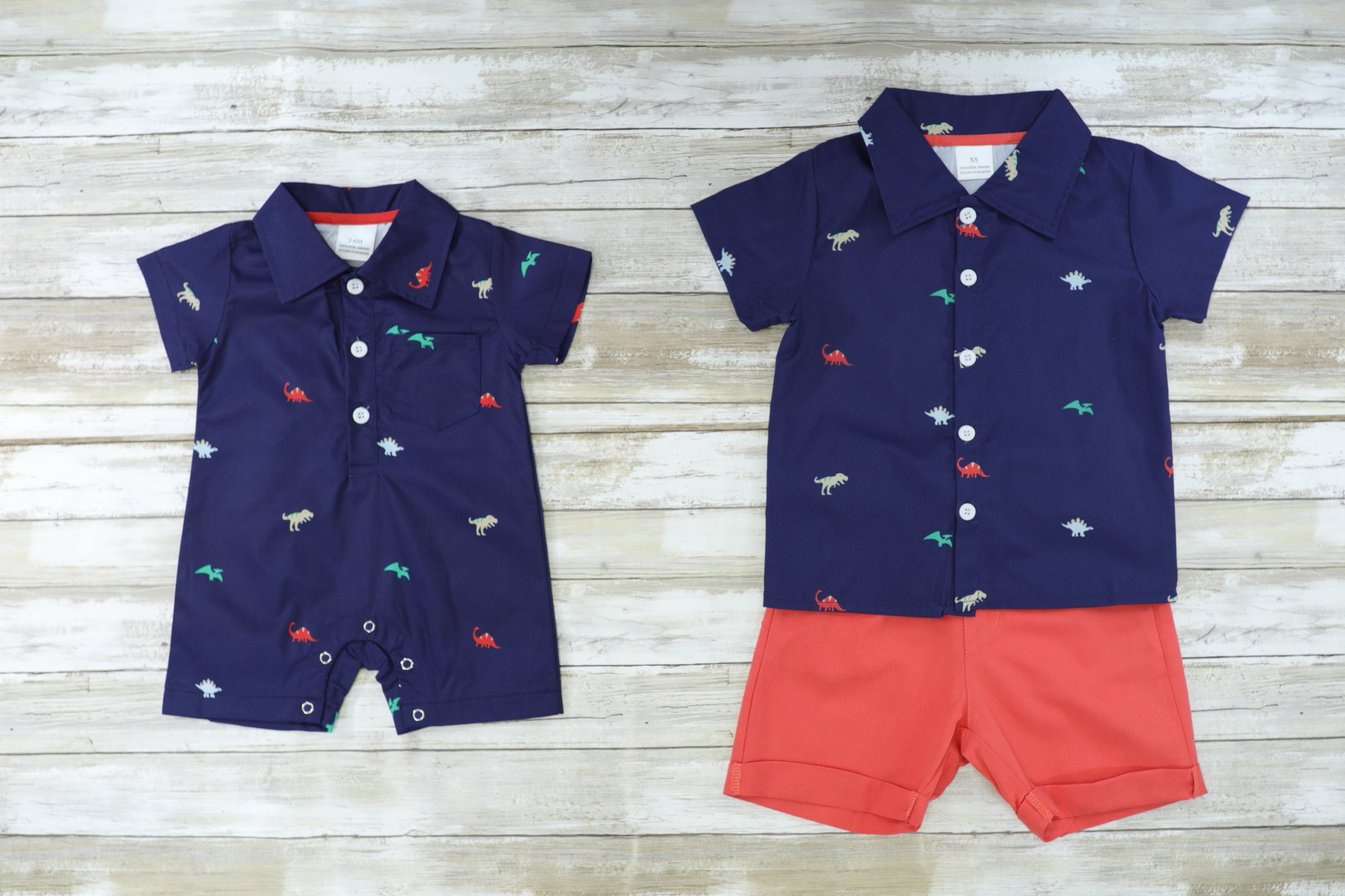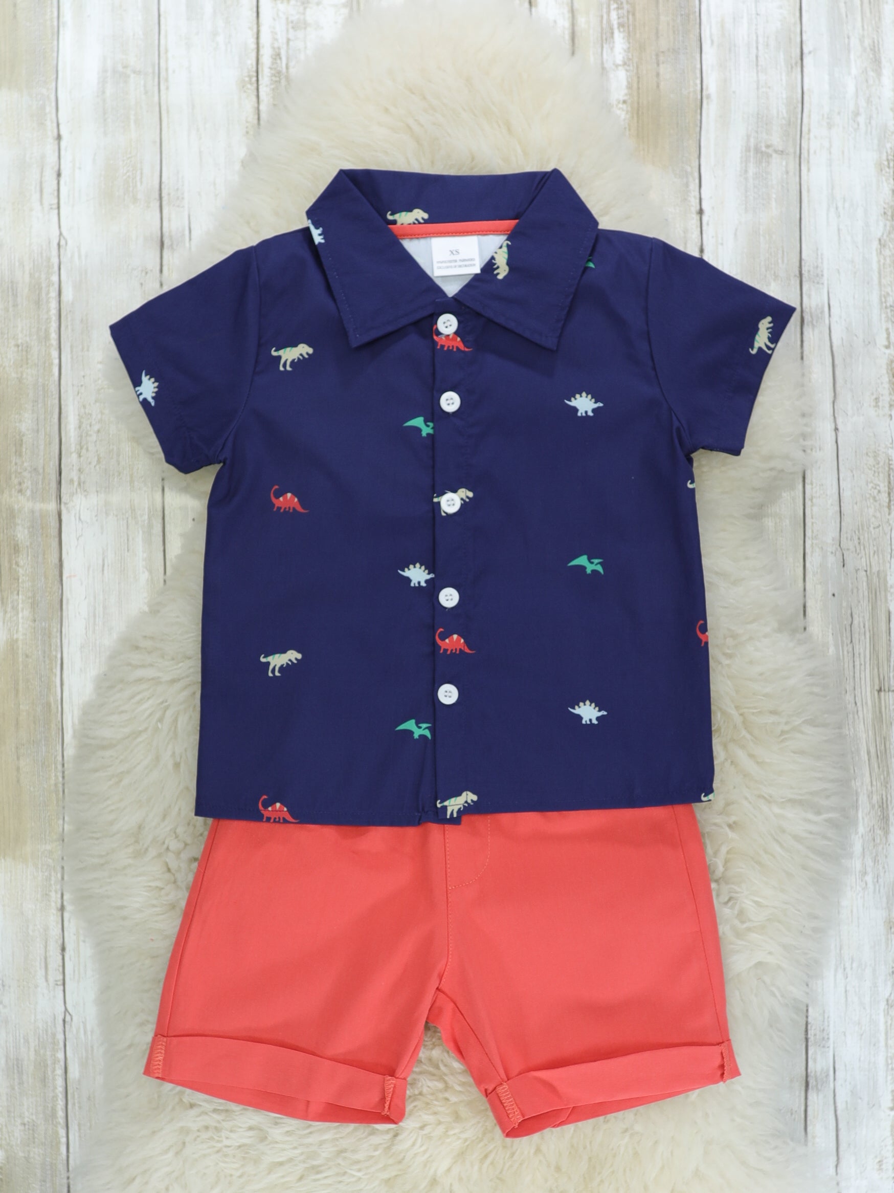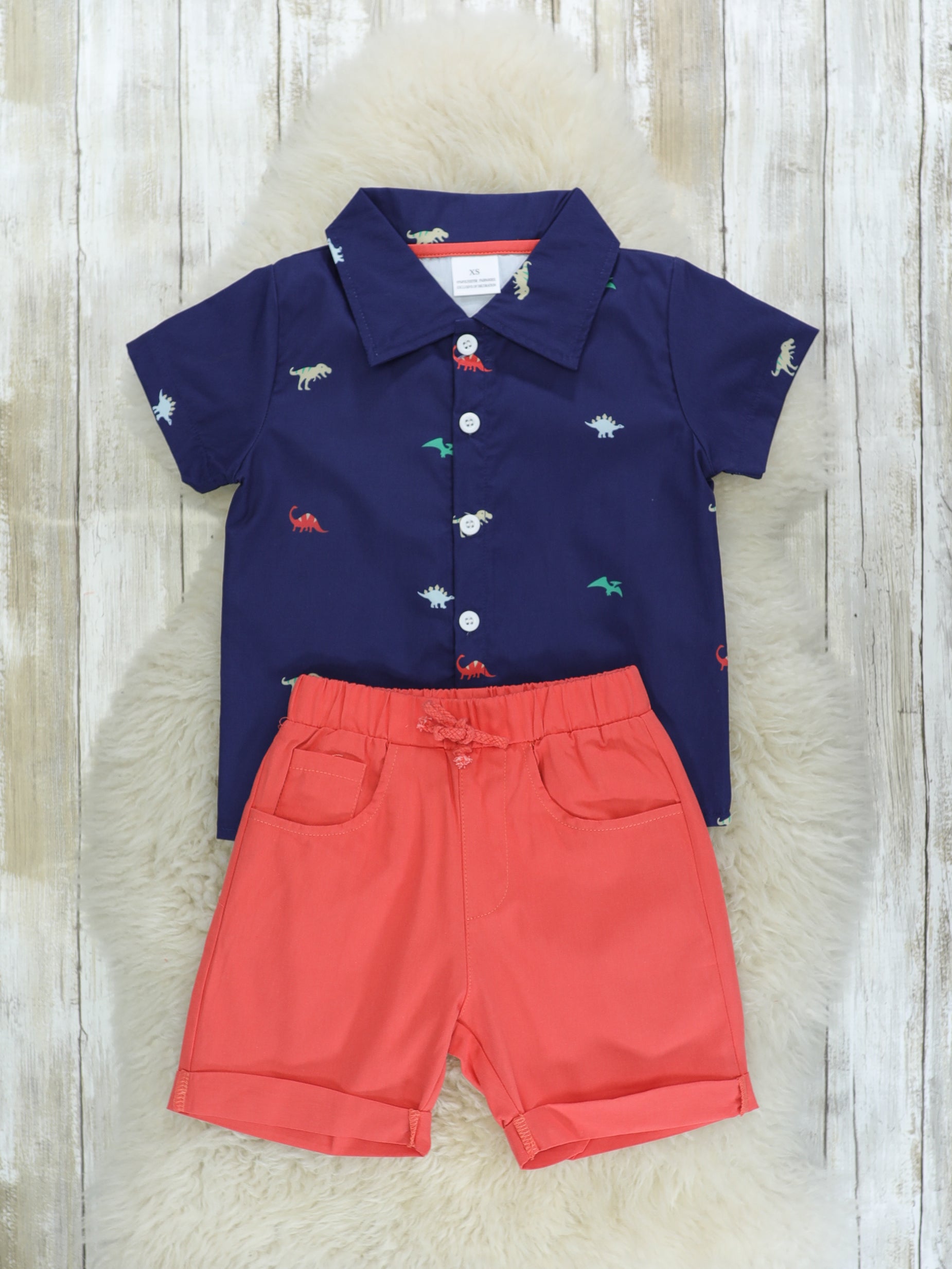 Navy Dino Polo & Shorts Outfit