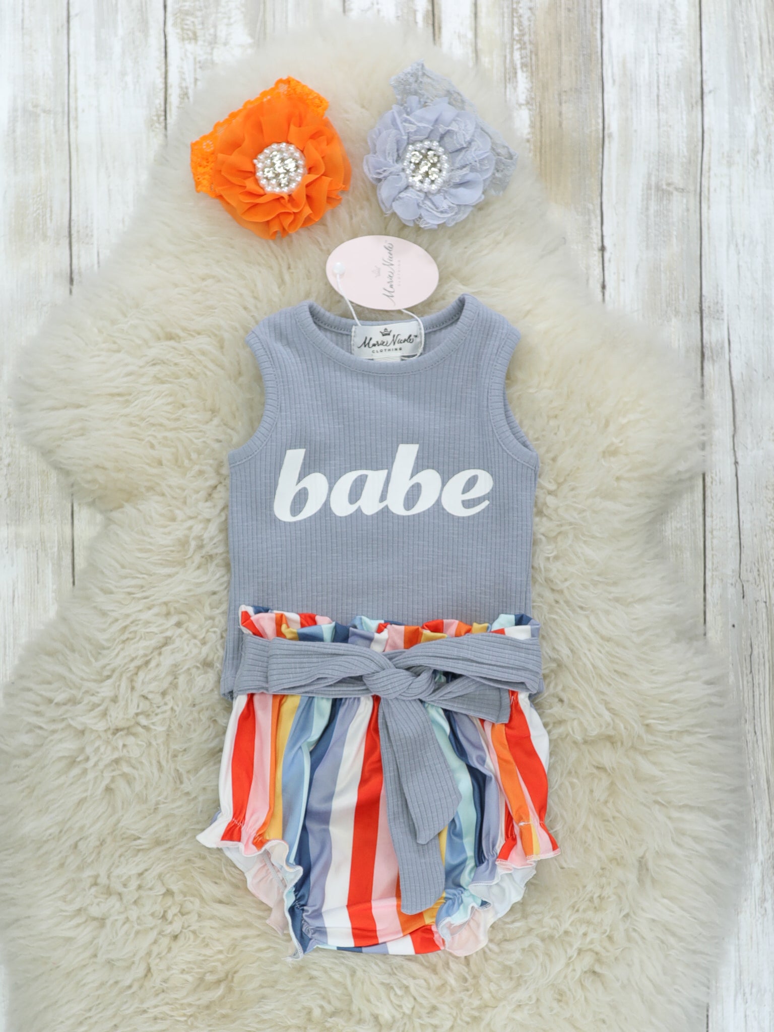 Babe Onesie & Striped Rainbow Bloomers Set