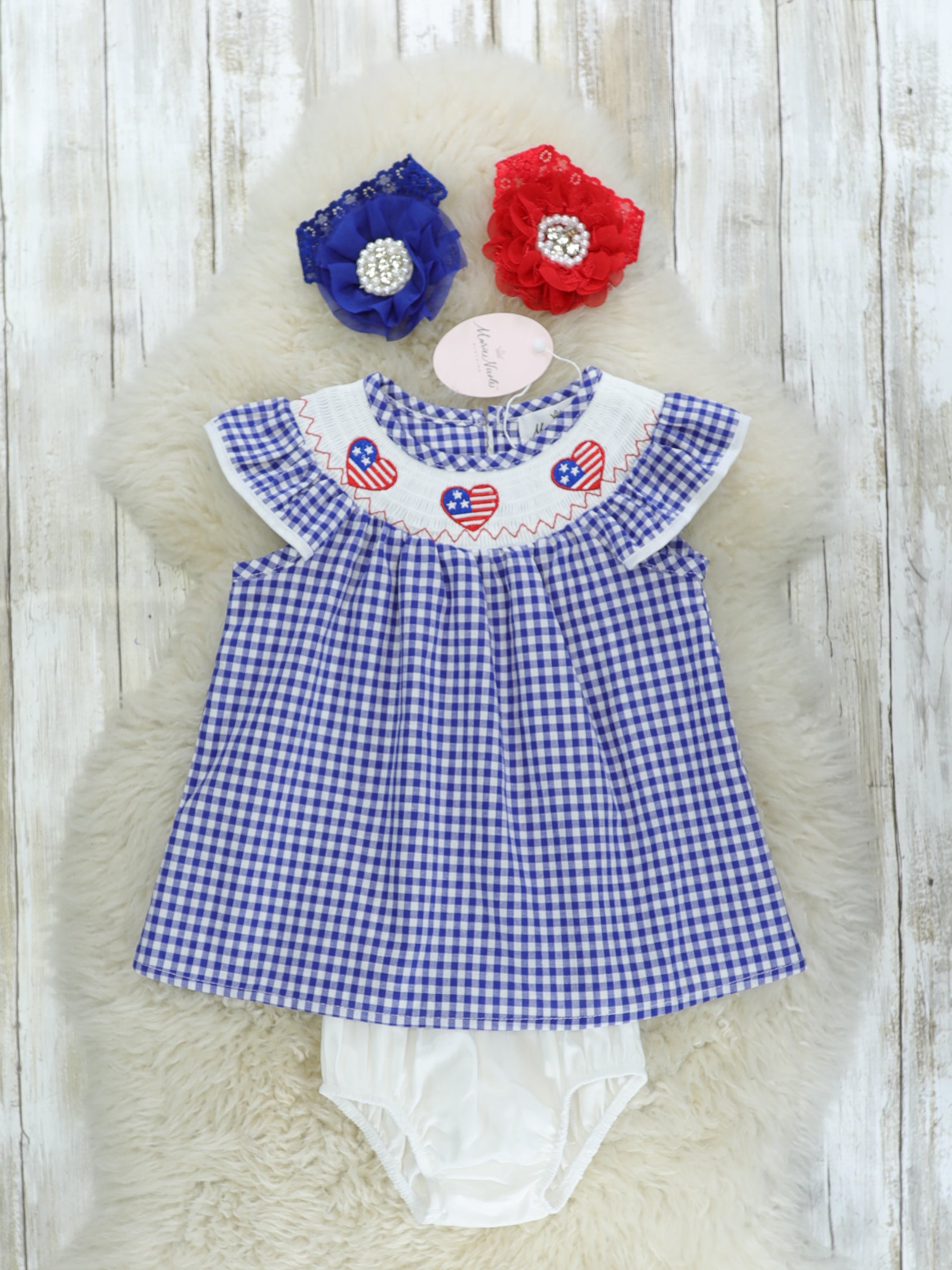 Flag Heart Smocked Tunic & Bloomers Set