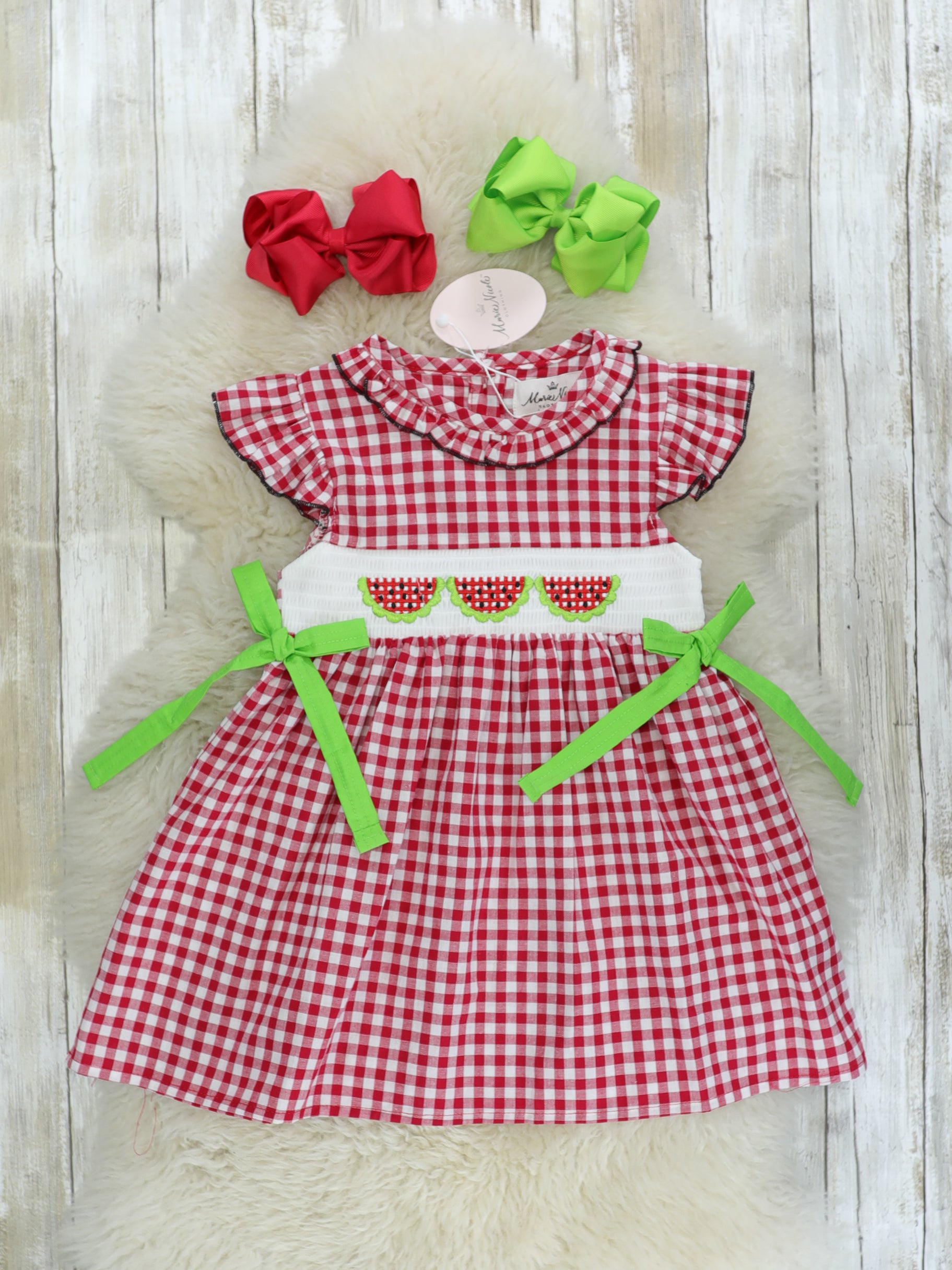 Smocked Watermelon Red Checked Dress