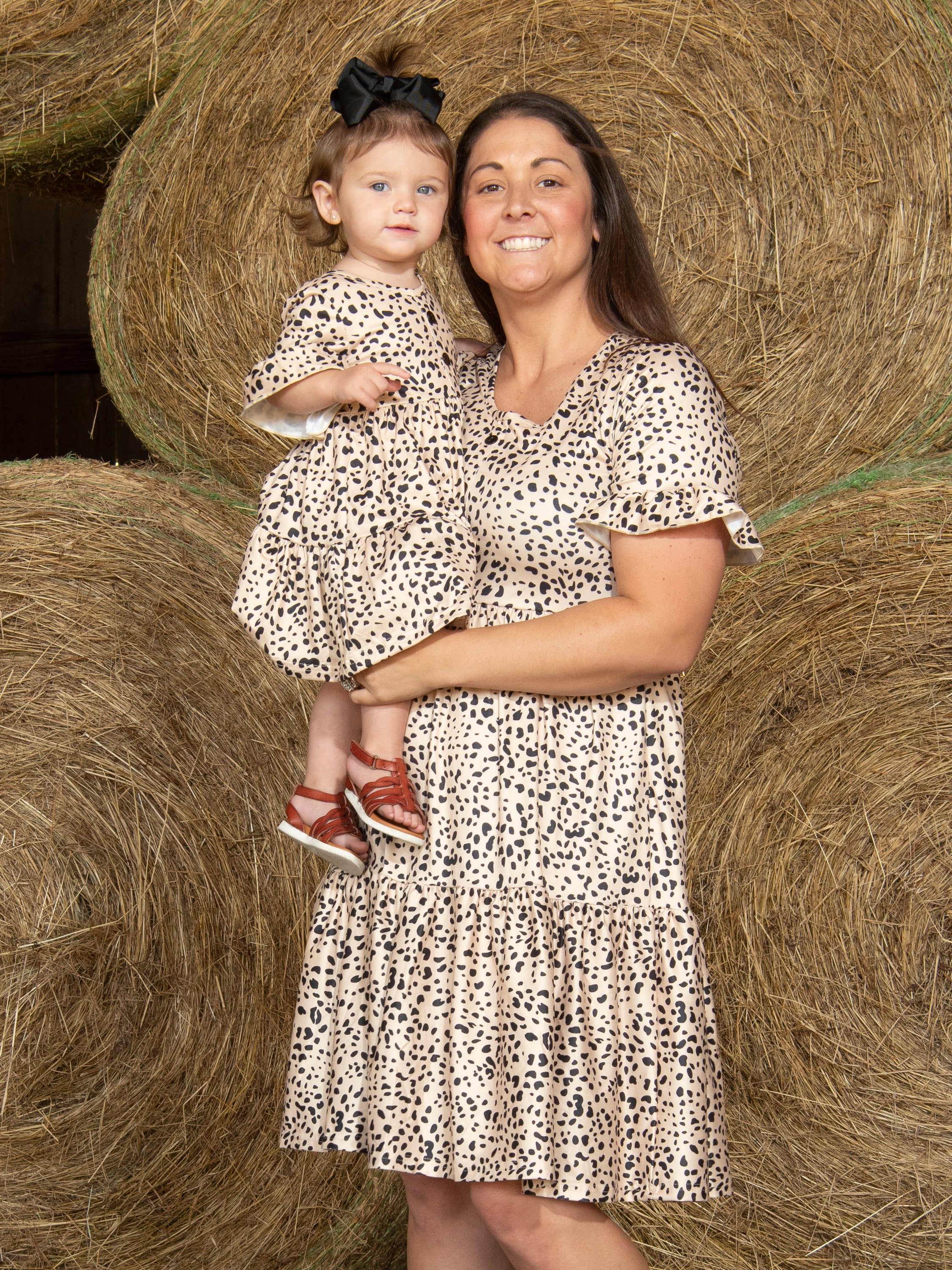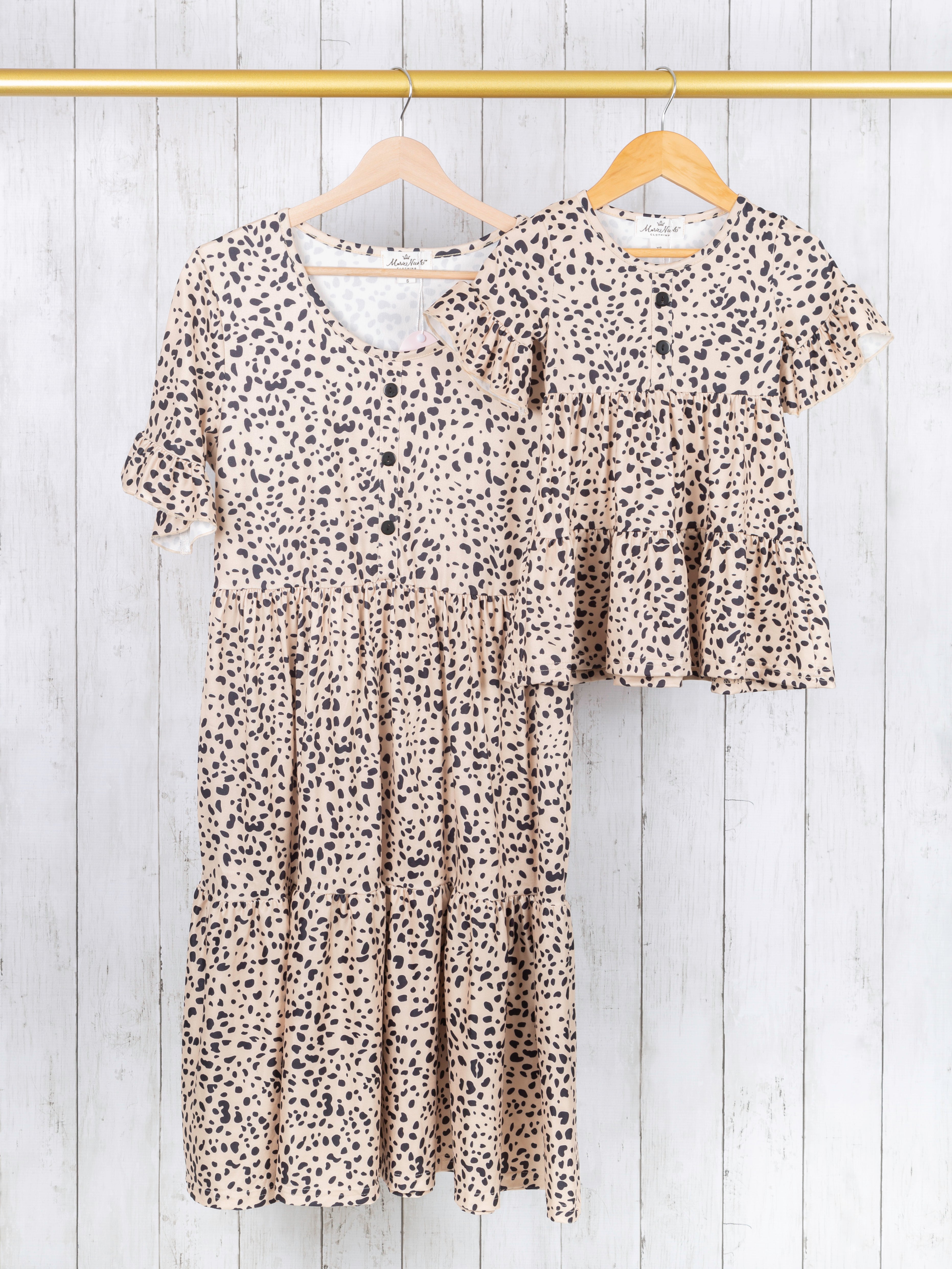 Mom & Me Dalmatian Print Tiered Ruffle Dress