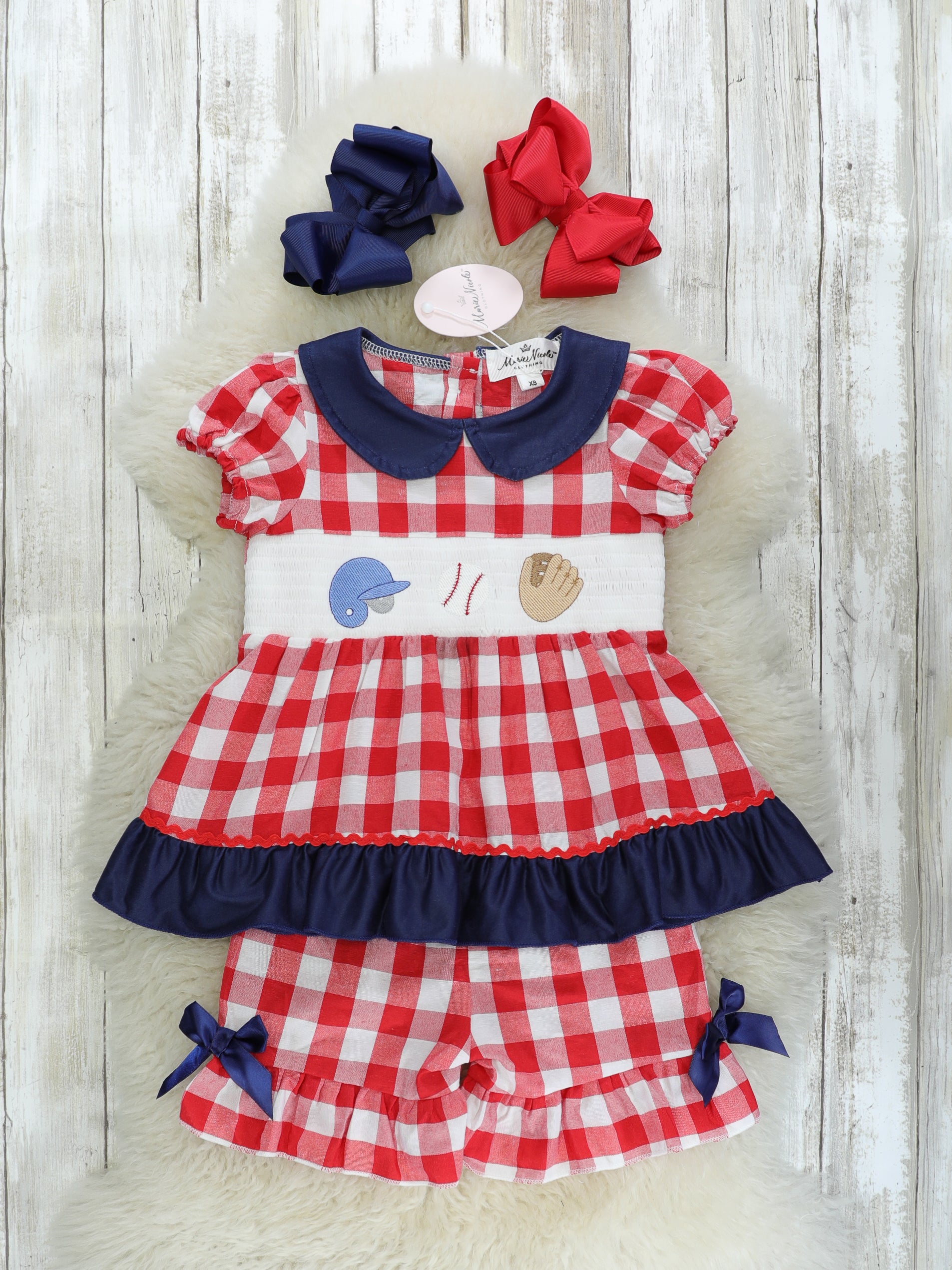 Baseball Gingham Smocked Ruffle Outfit