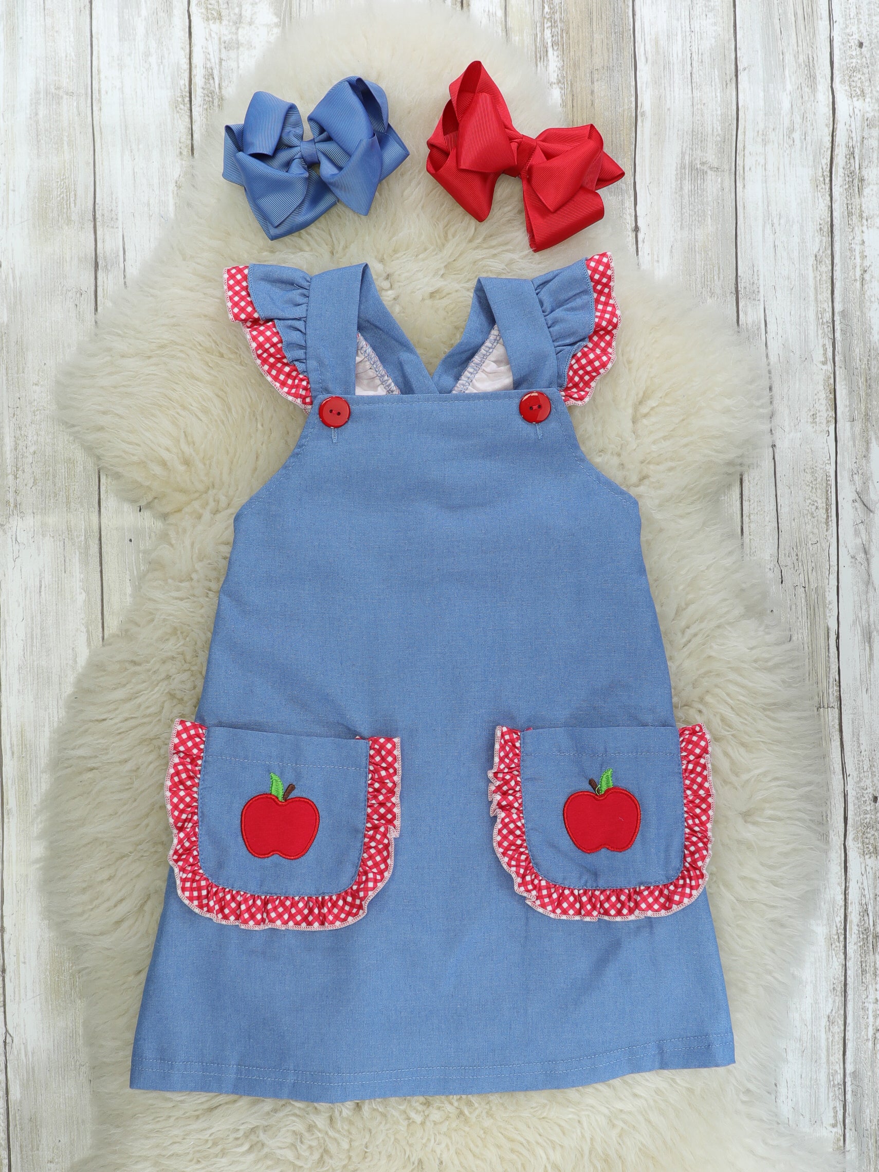 Red Apple Denim Overall Dress