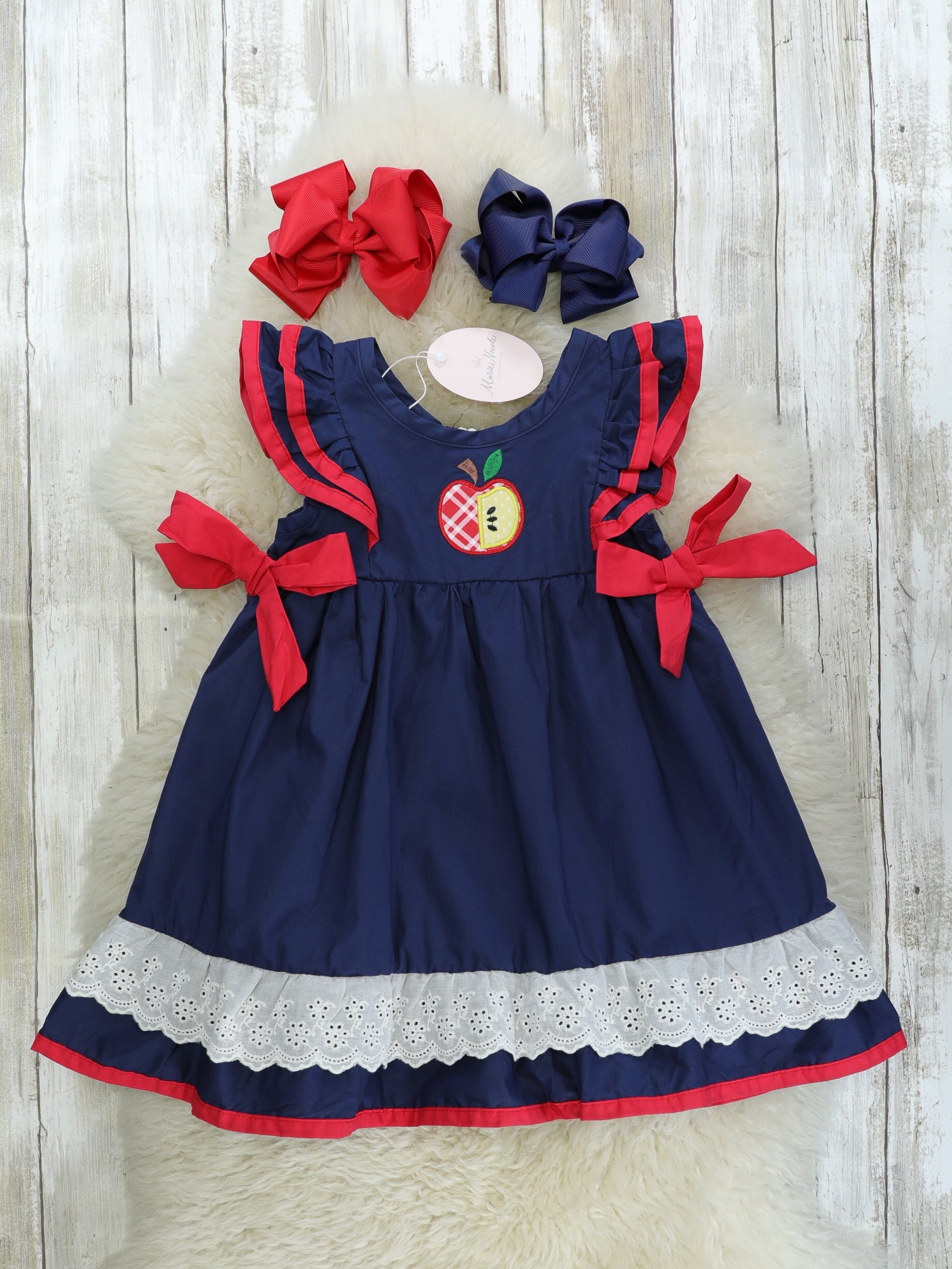 Navy & Red Apple Ruffle Dress