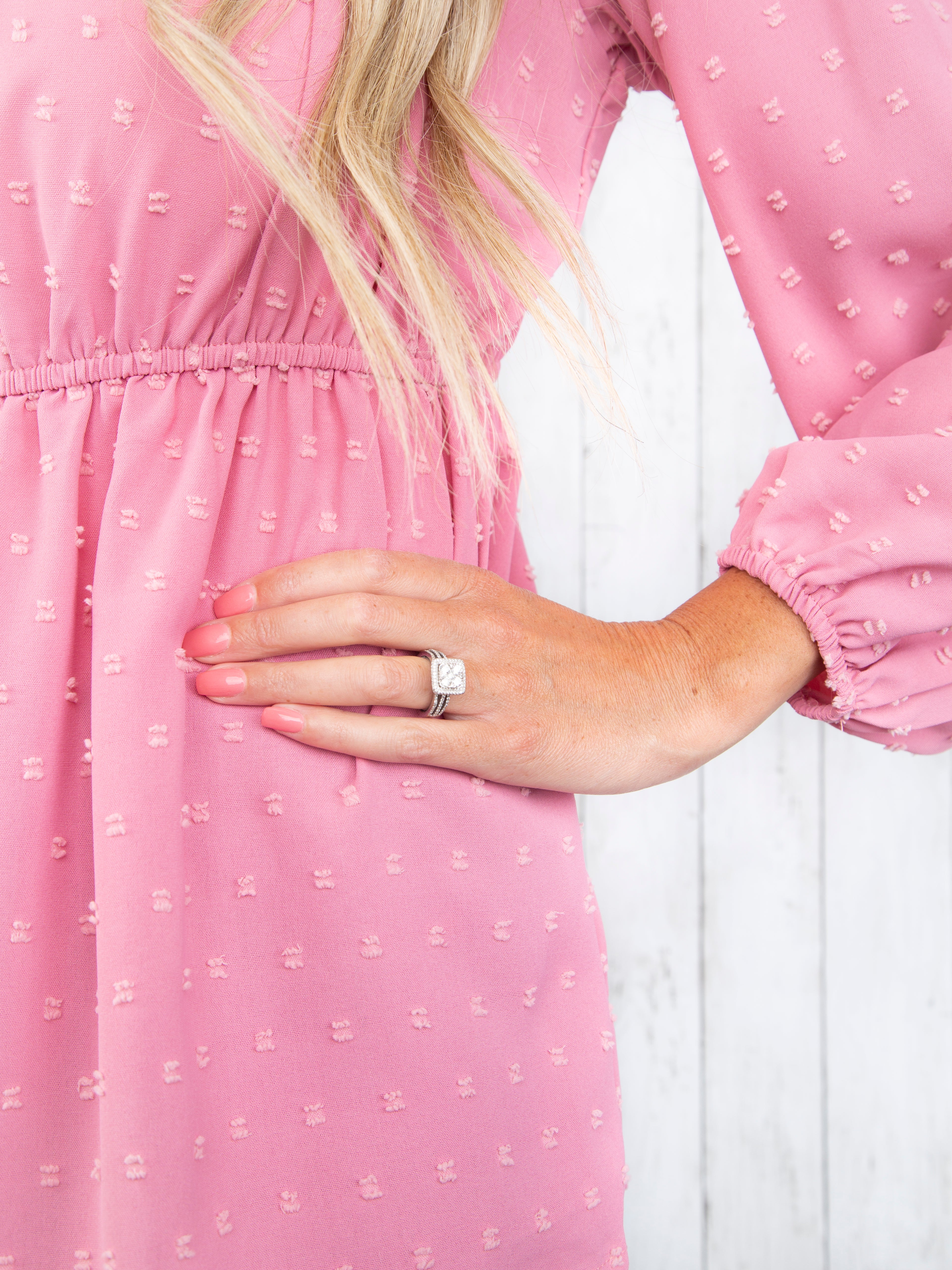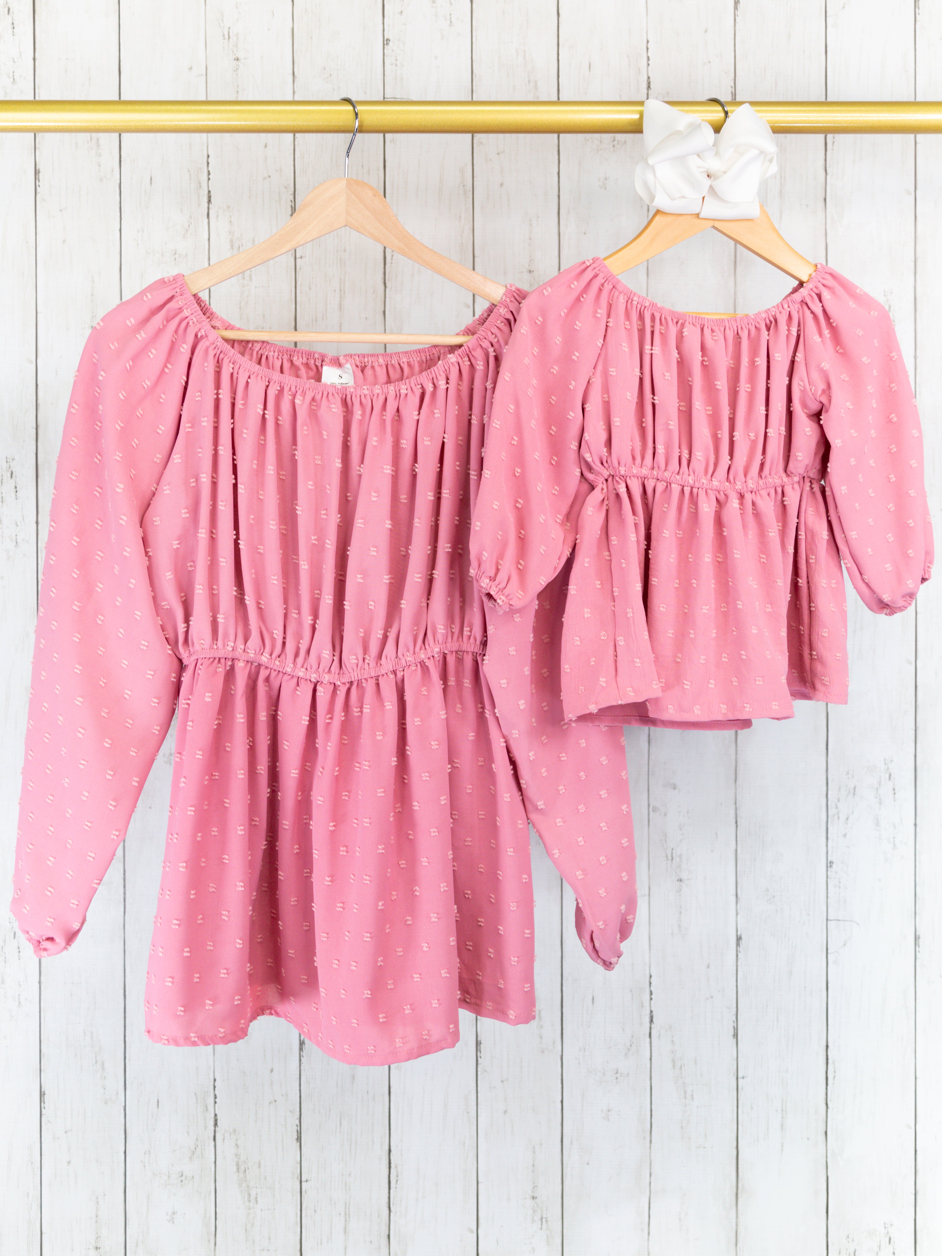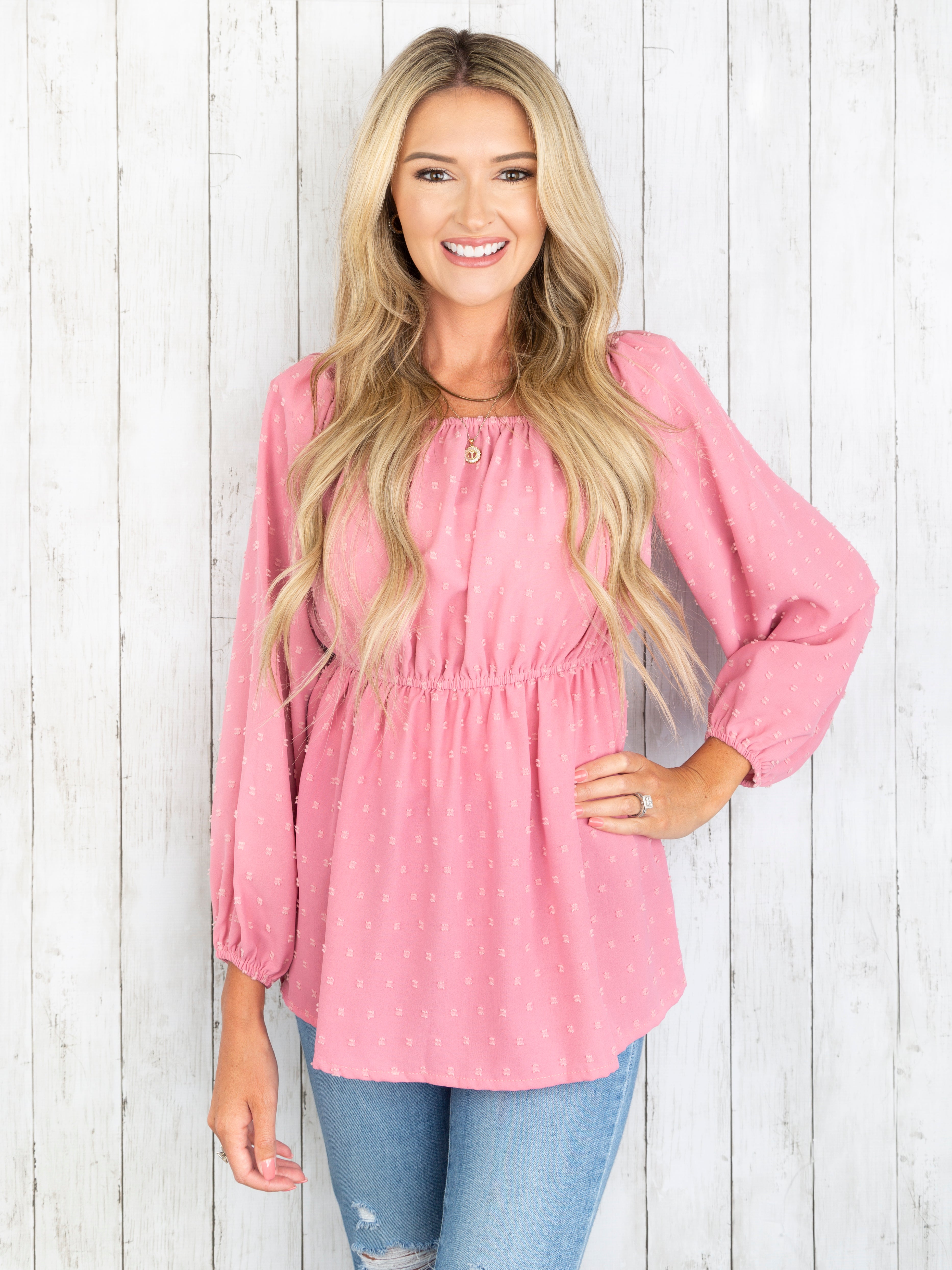 Rose Pink Ruffle Top & Distressed Denim Outfit