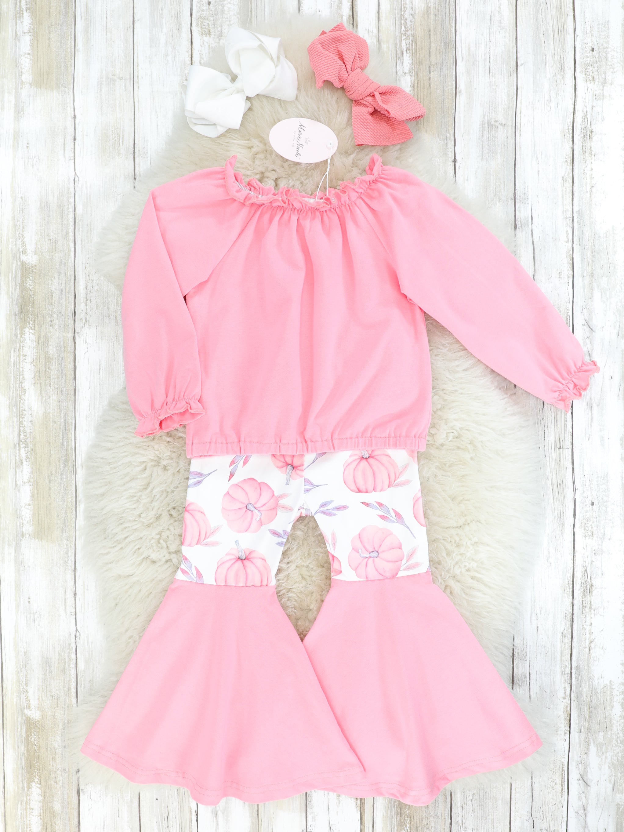 Pumpkin Eyelet Lace Top & Bell Bottoms Outfit