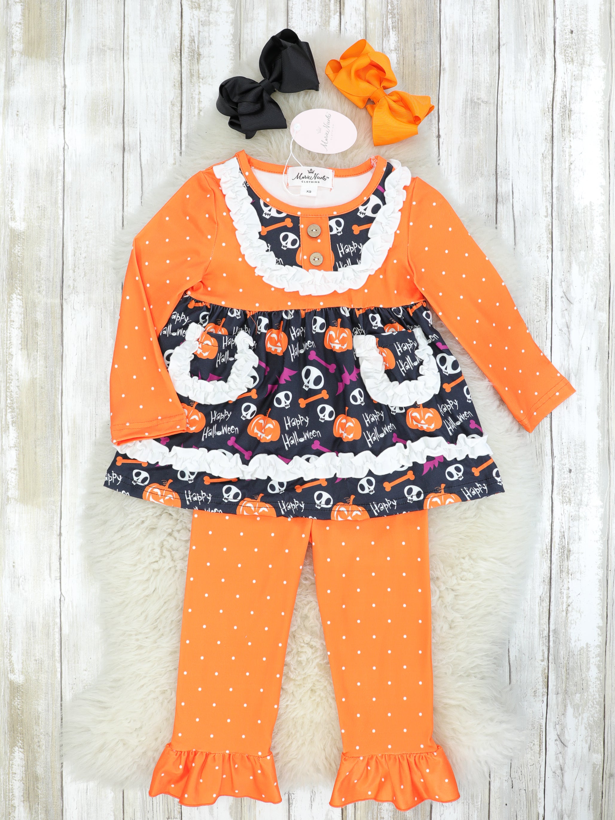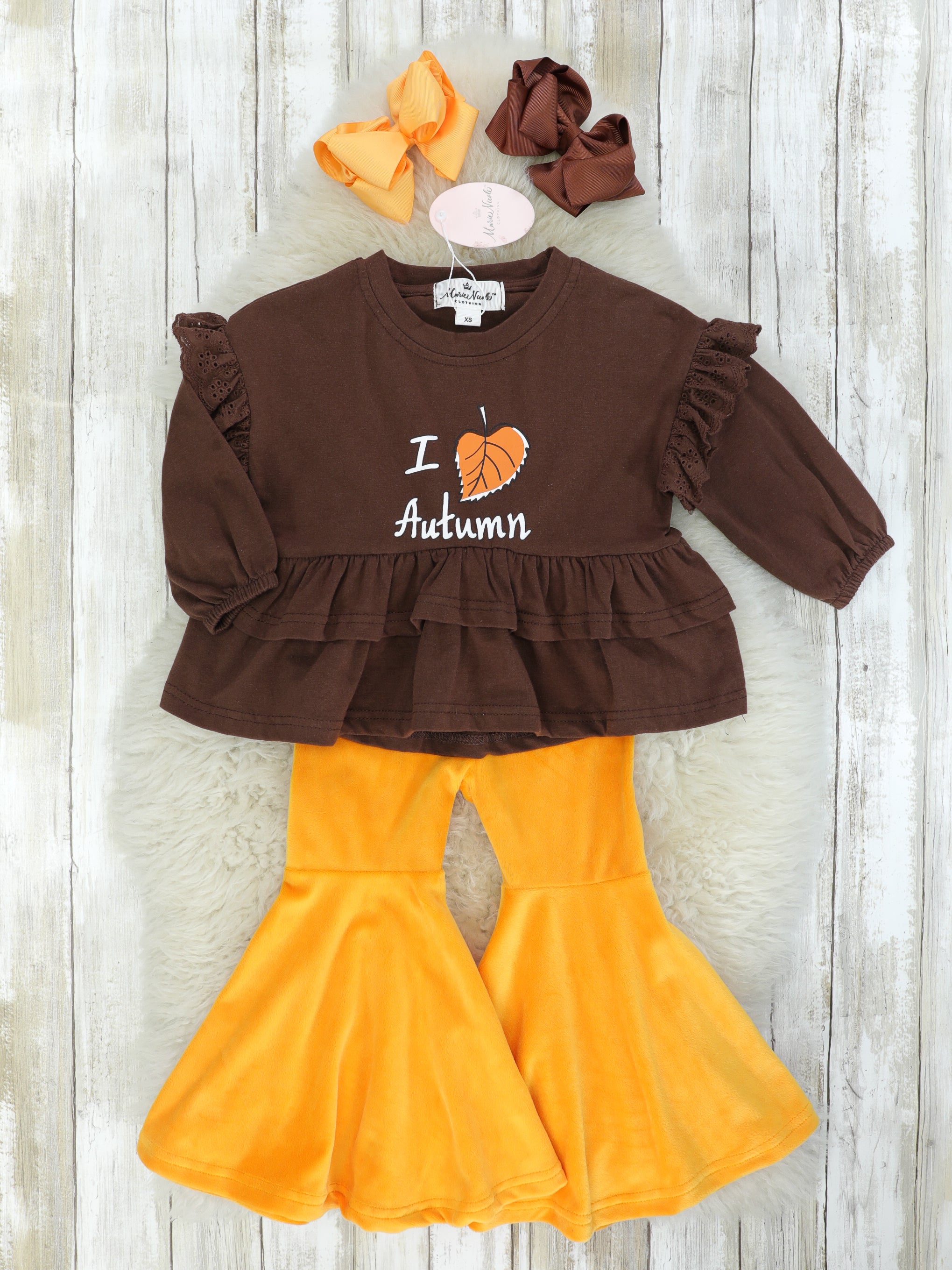 "I Love Autumn" Ruffle Top & Orange Velvet Bell Bottoms