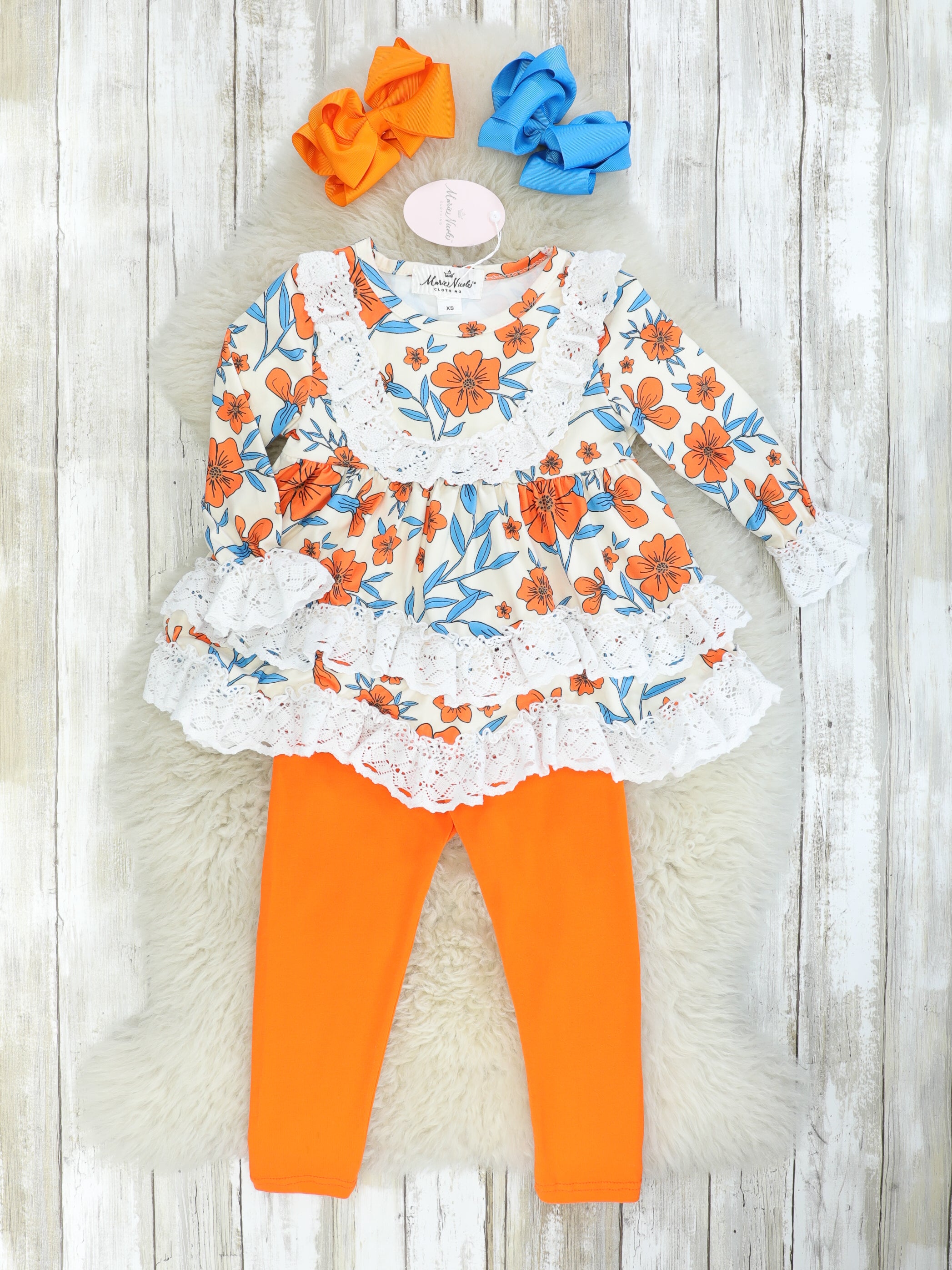 Orange & Blue Floral Overall Skirt W/ Long Sleeve