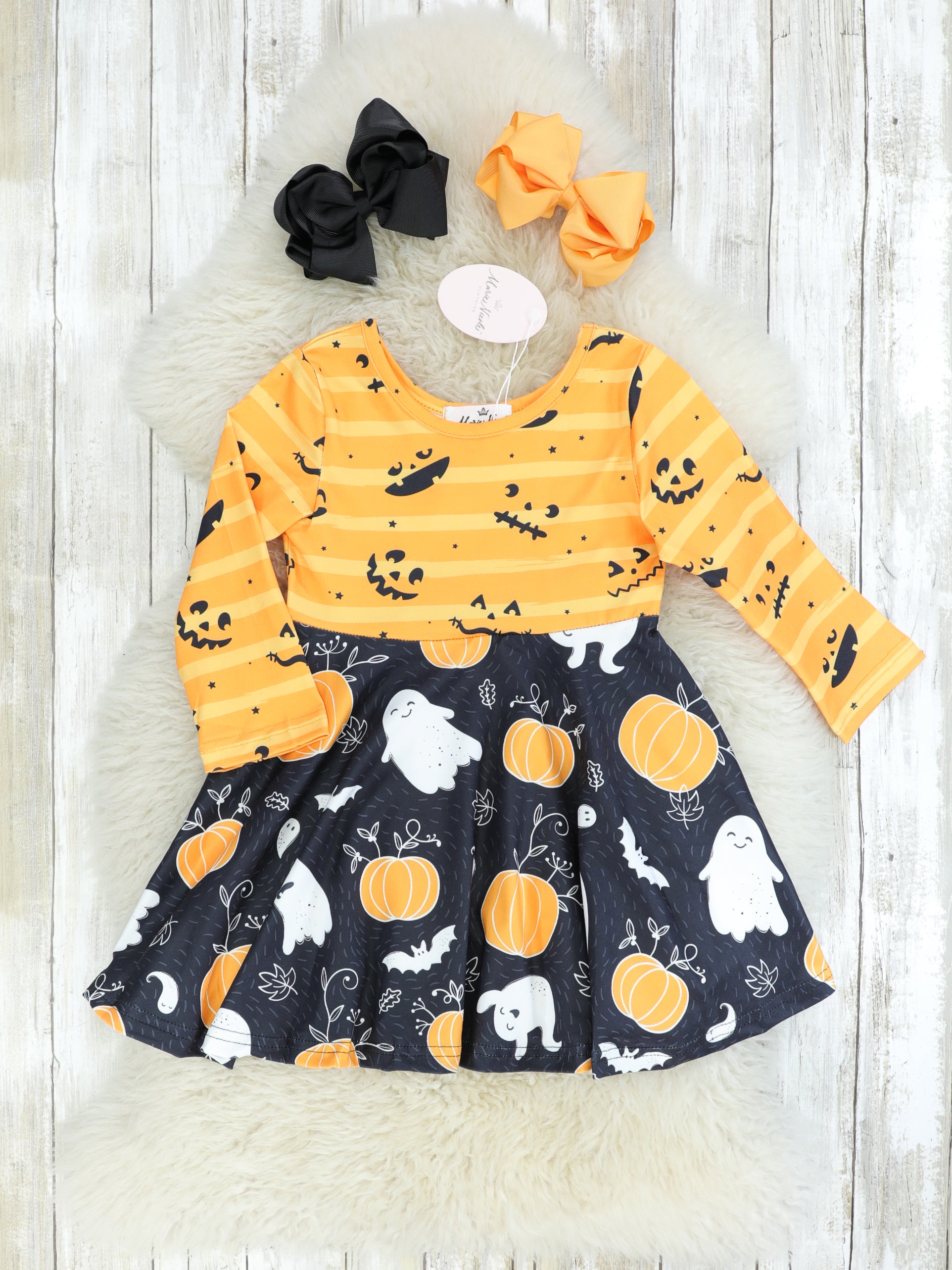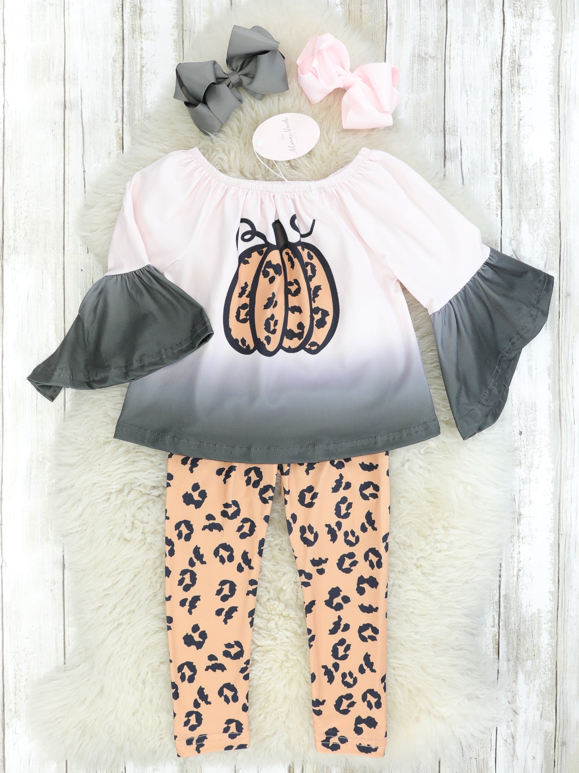 Leopard Pumpkin Bell Sleeved Top & Bottoms Outfit