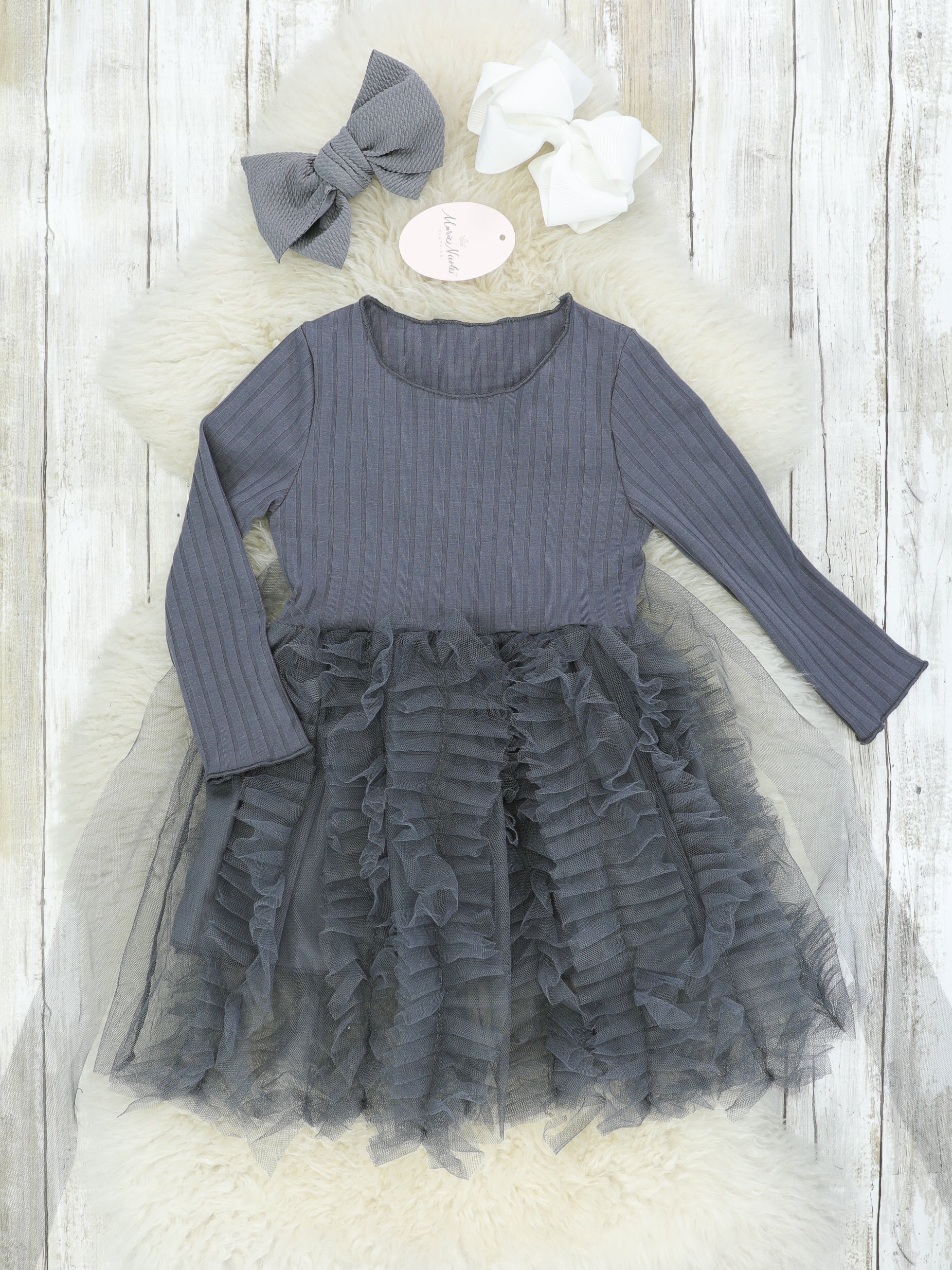 Grey Ribbed Ruffle Top & Camel Suede Bottoms Outfit