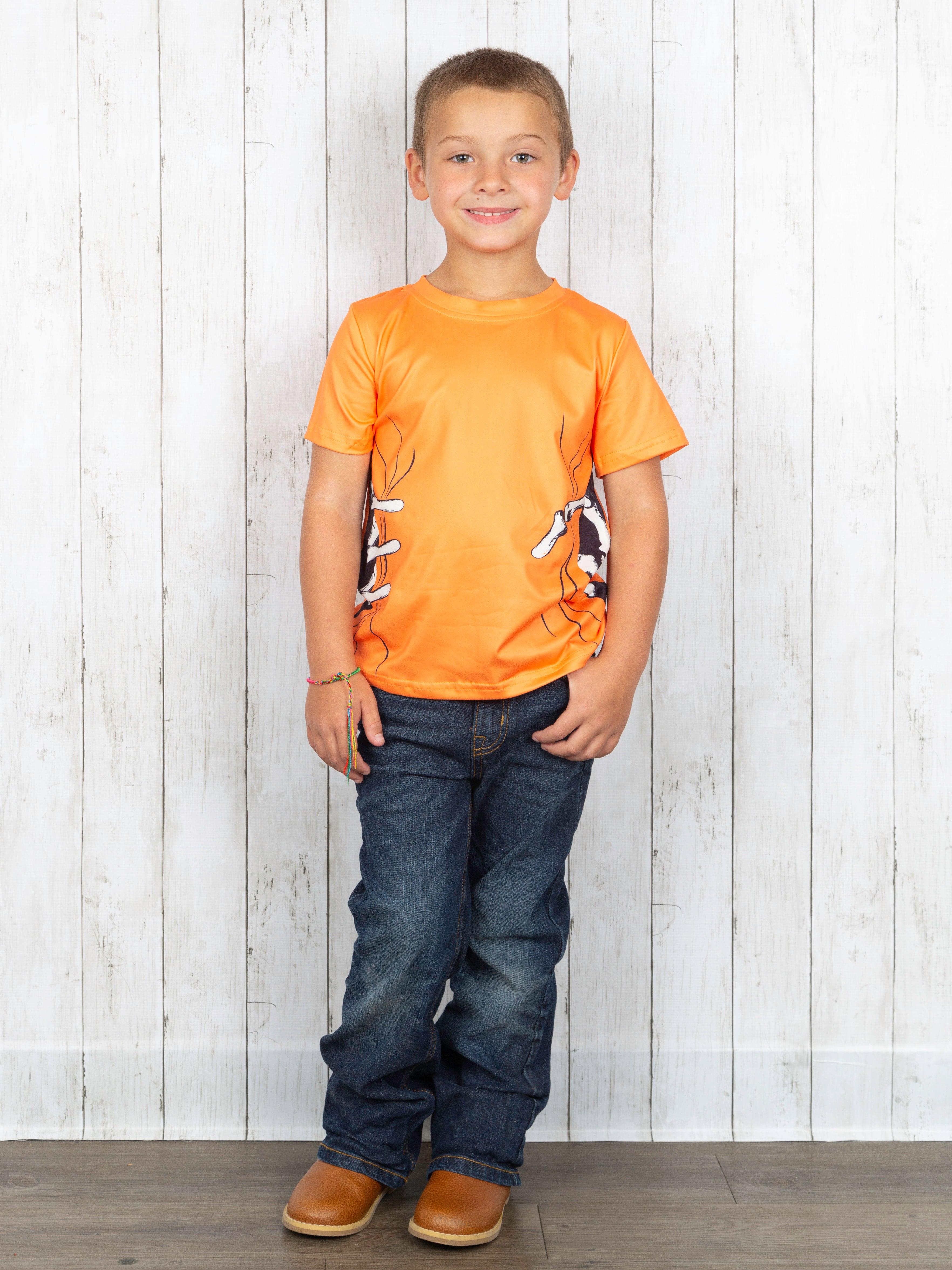 Orange Long Sleeve & Spotted Chicken Bell Bottoms Outfit