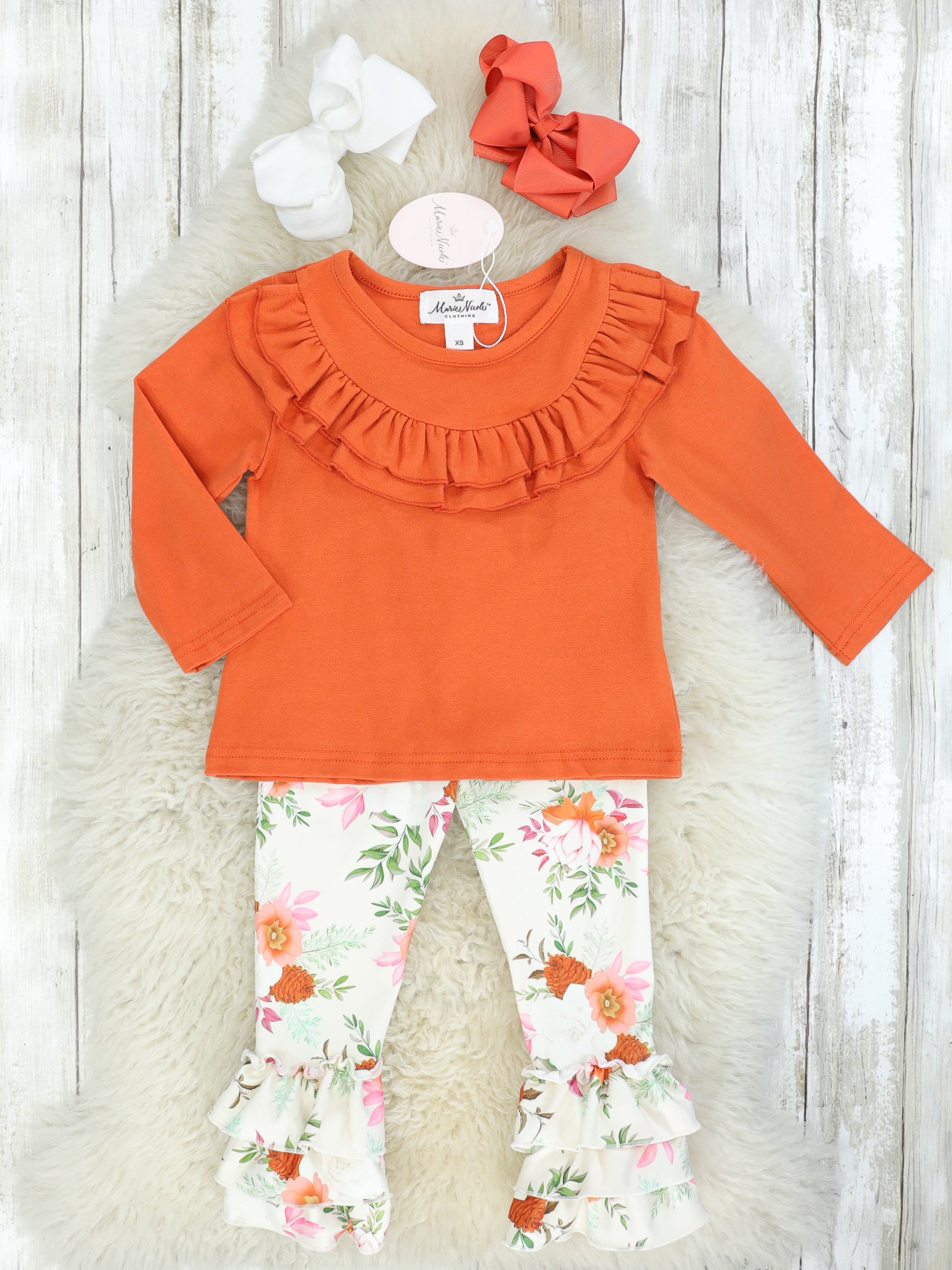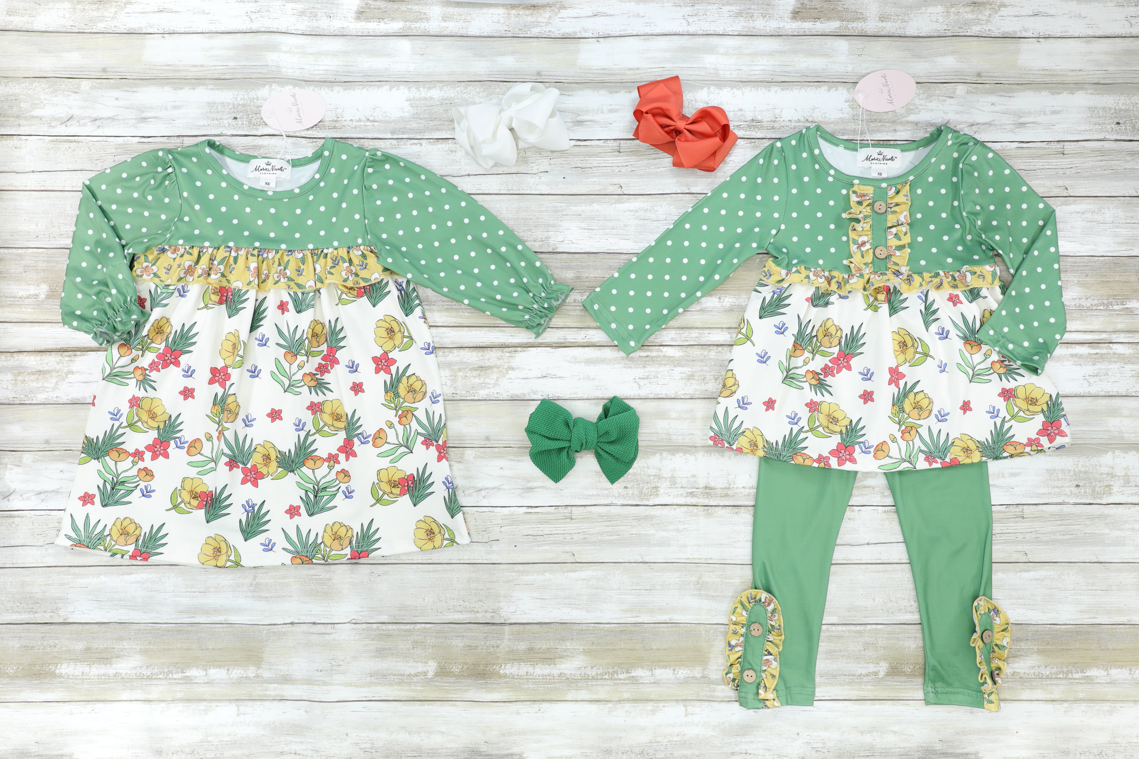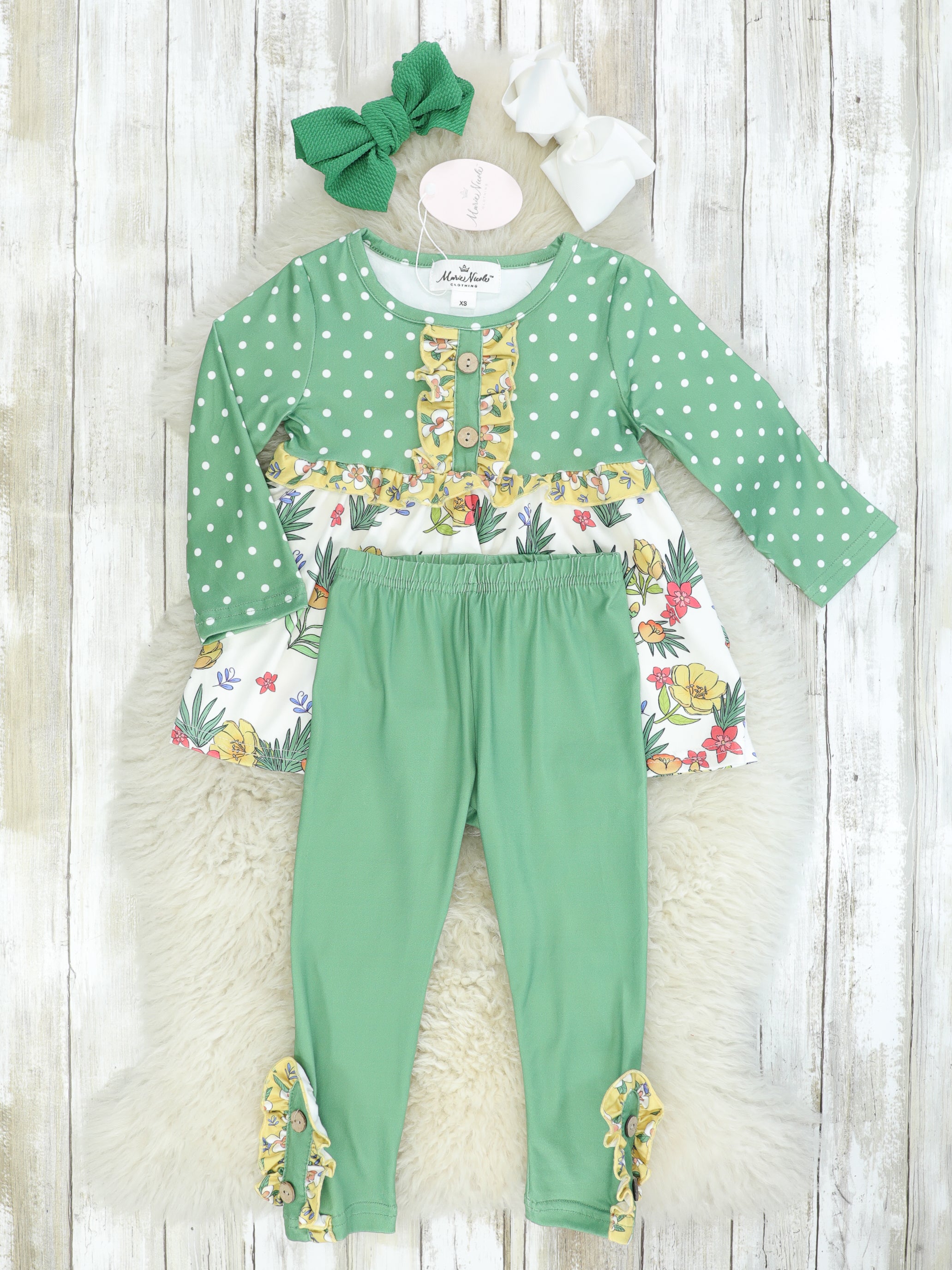 Olive Floral Long Sleeve Top & Bottoms Outfit