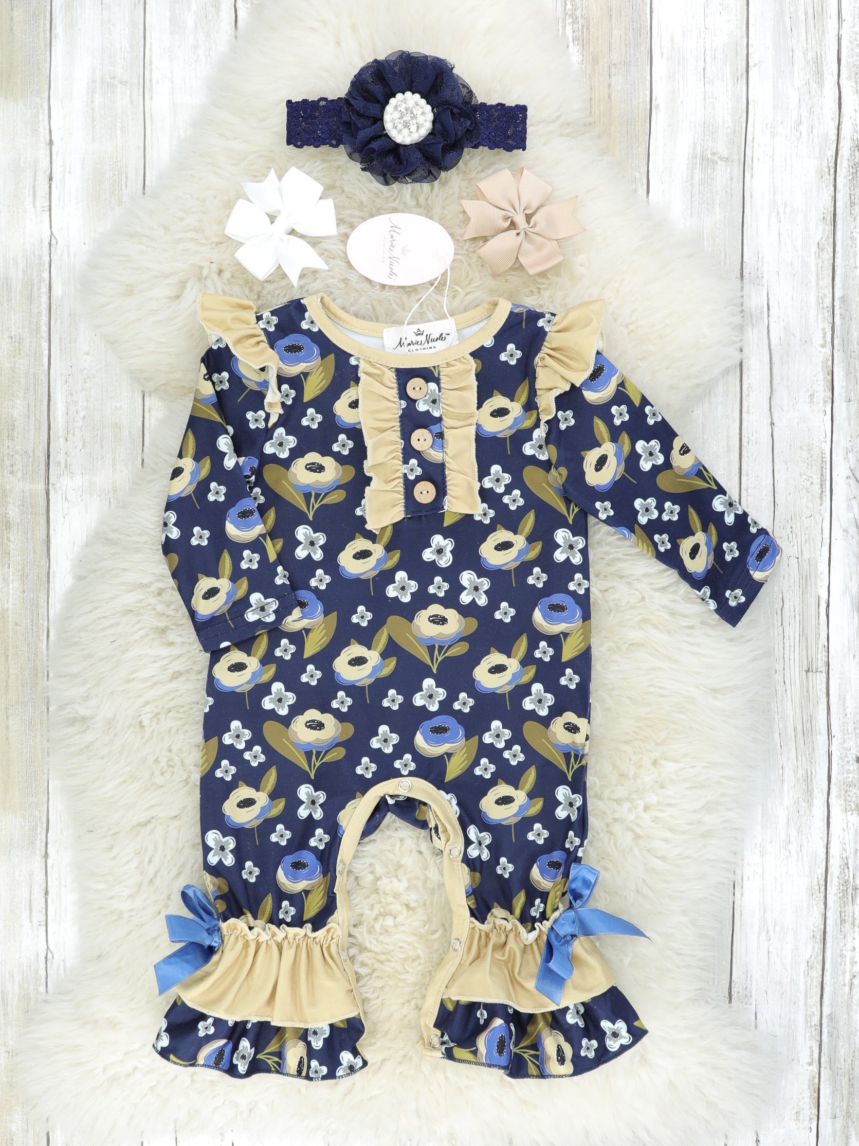 Orange Gingham & Navy Fox Ruffle Top & Brown Ruffle Bottoms Outfit