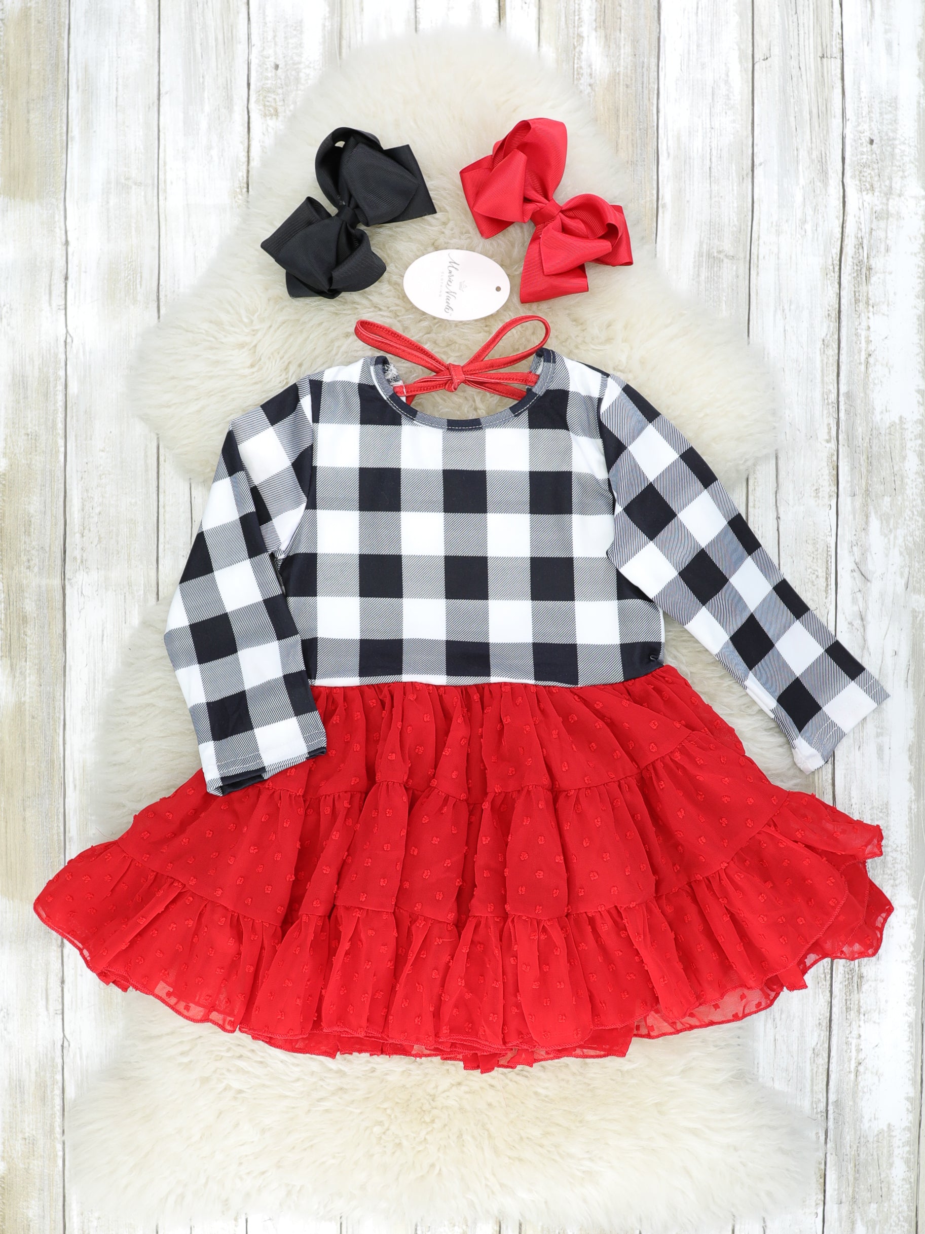 Mulberry & Pink Polka Dot "Hi" Llama Tulle Top & Black Bottoms Outfit