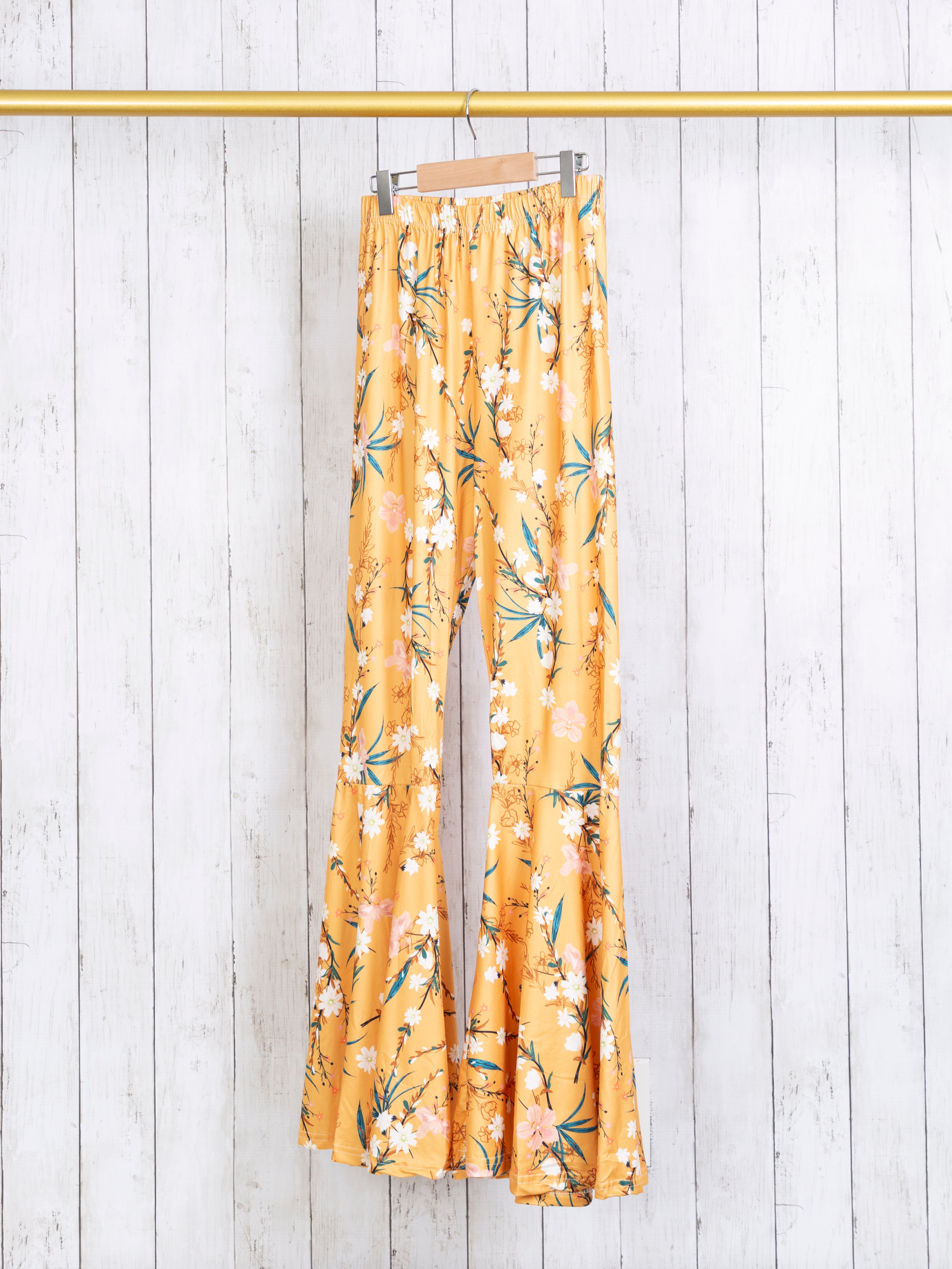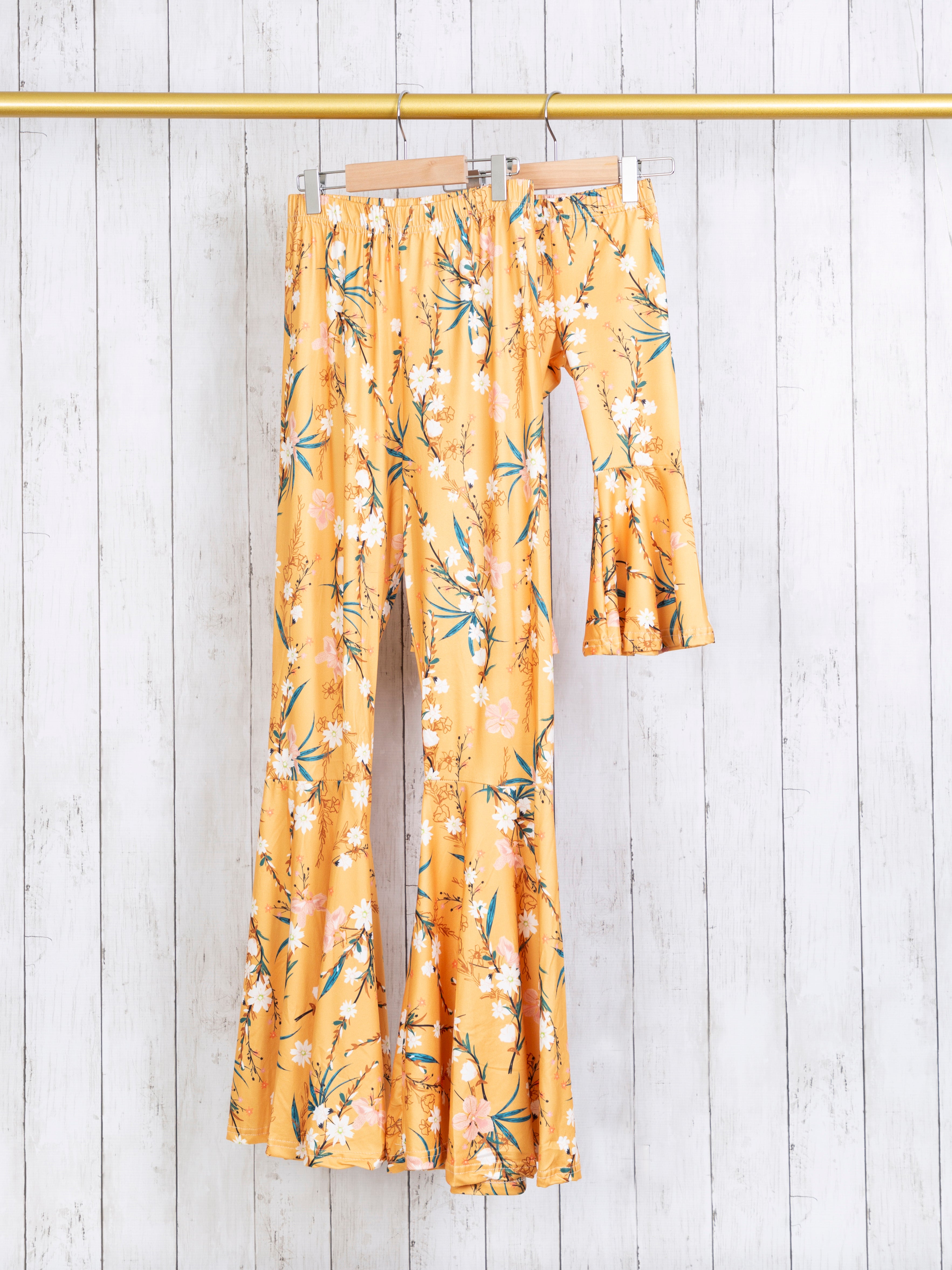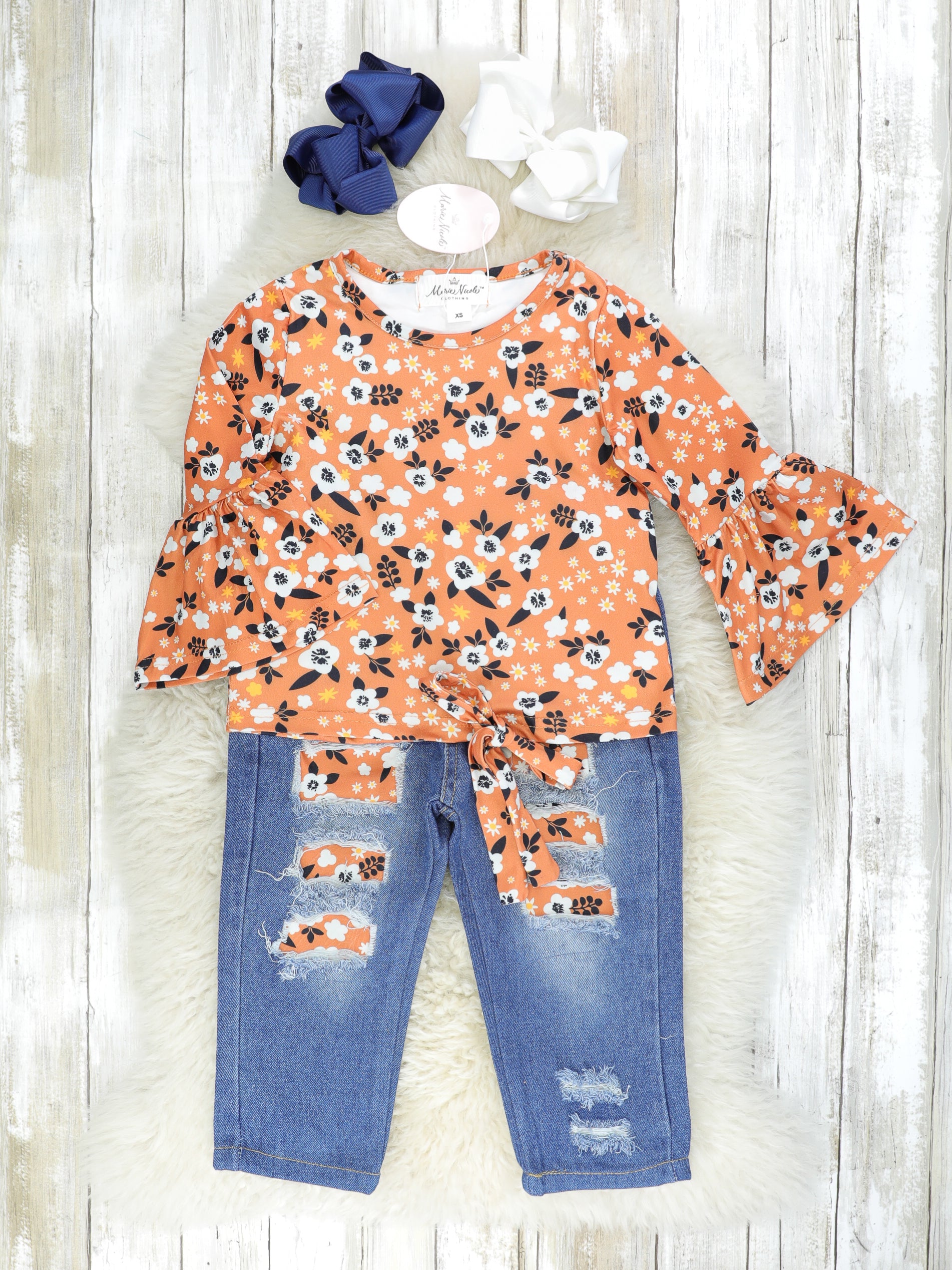 Orange & Black Floral Bell Sleeve Top & Distressed Denim Outfit