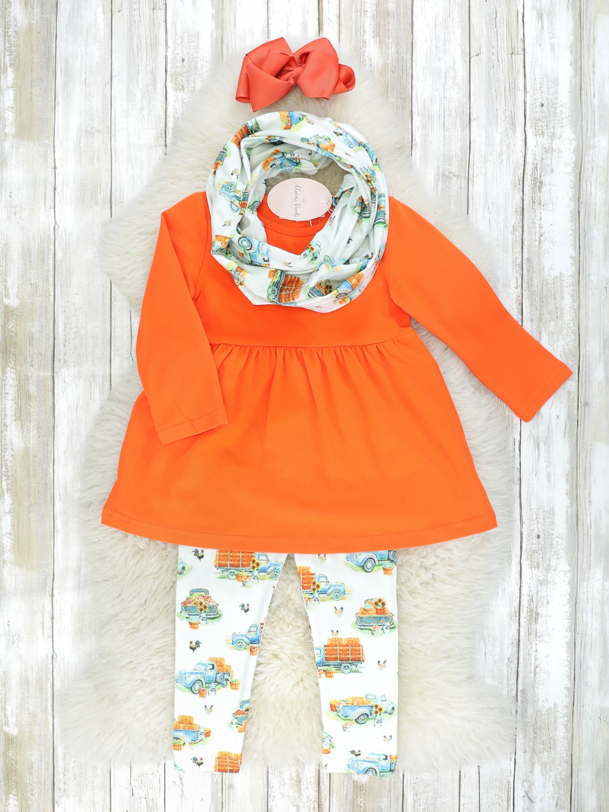 Navy Polka Dot Fox Tulle Top & Orange Bottoms Outfit