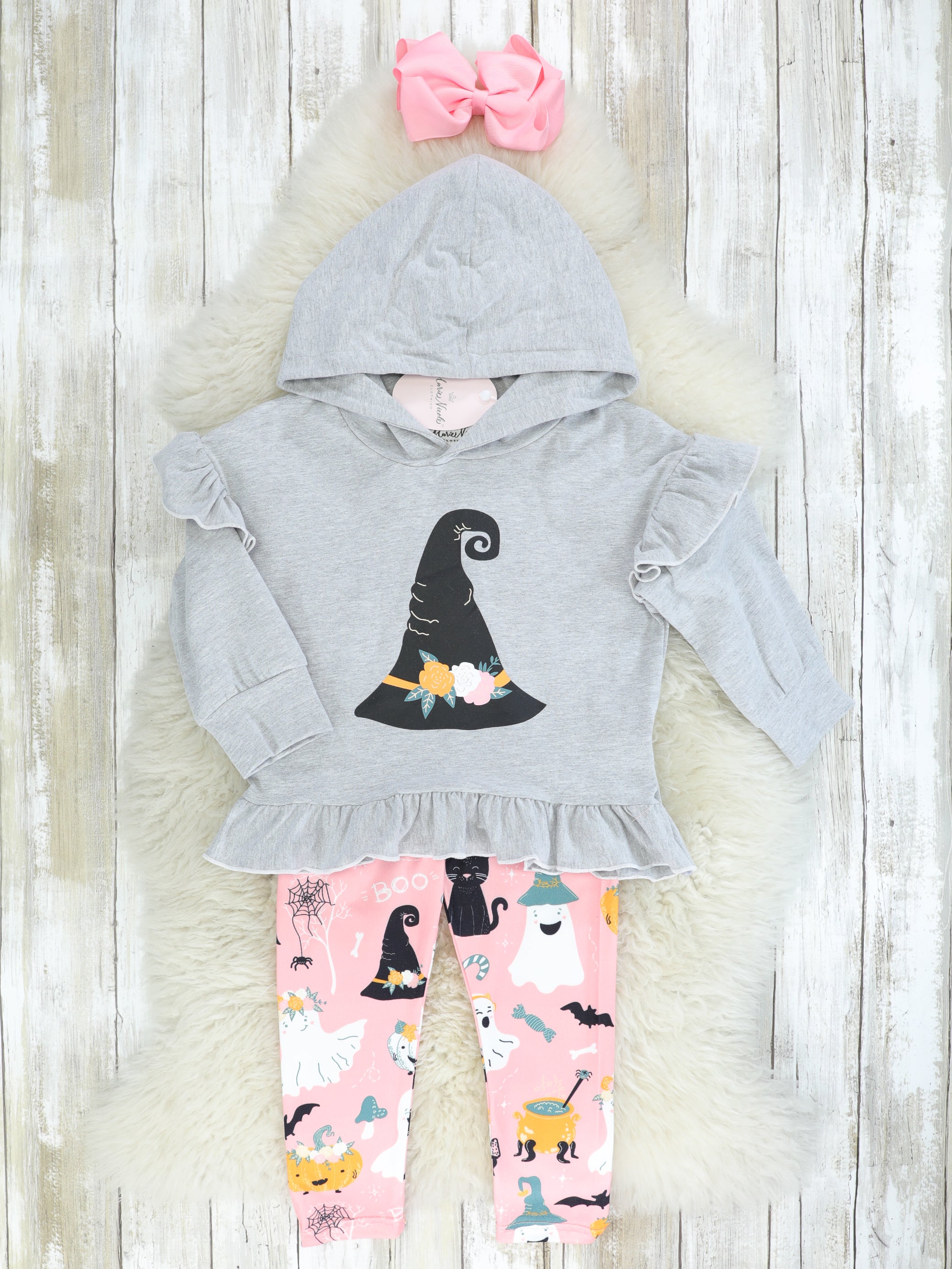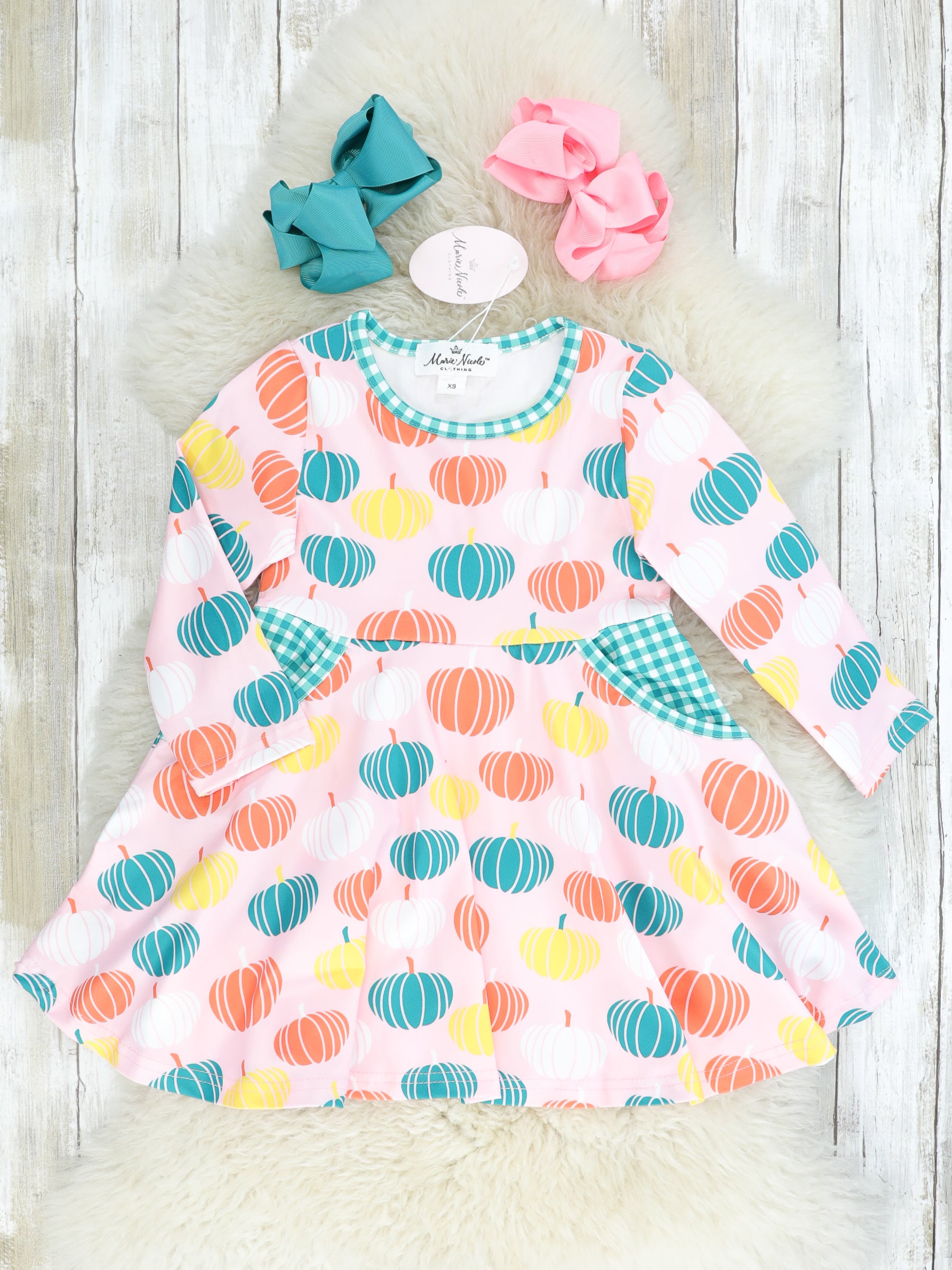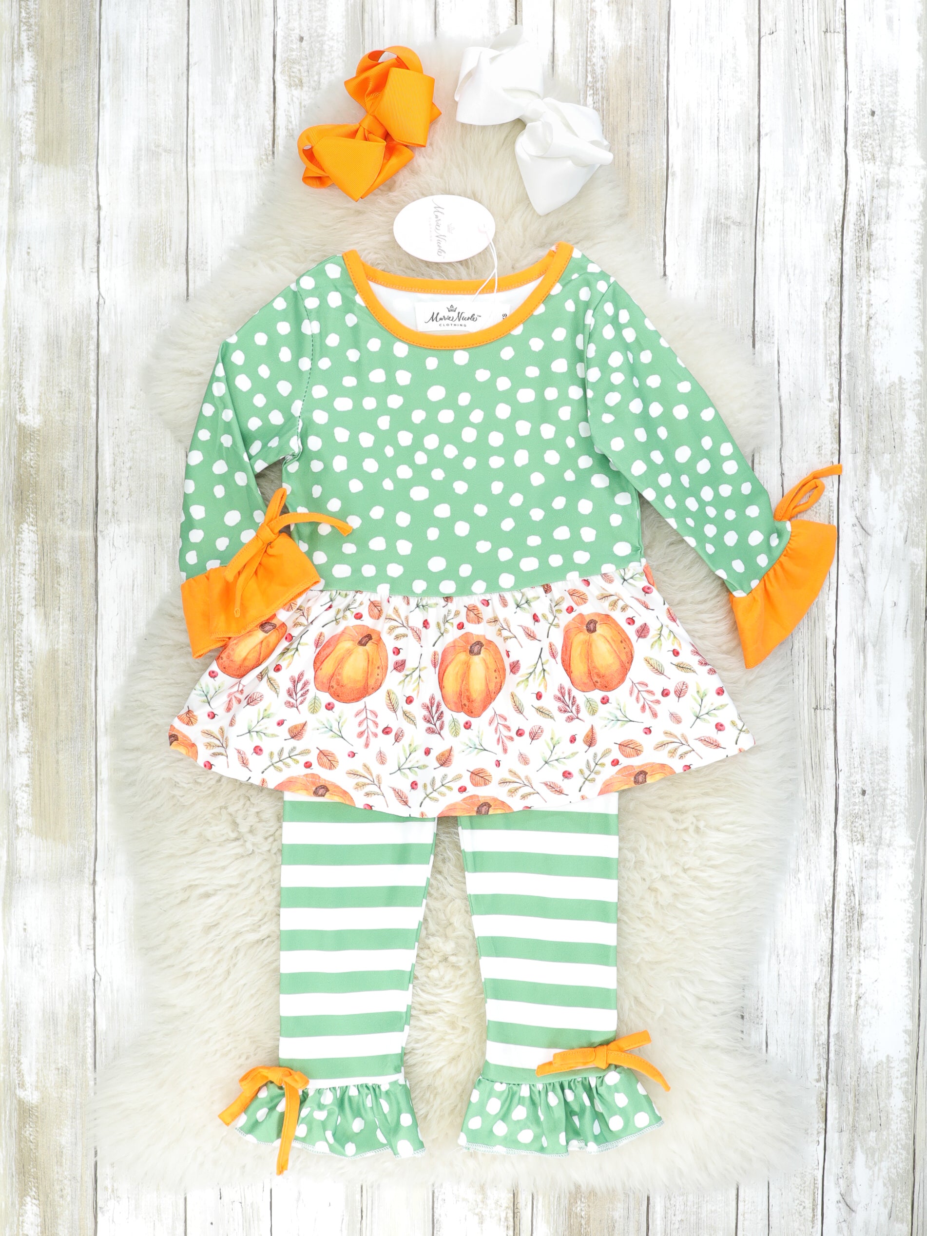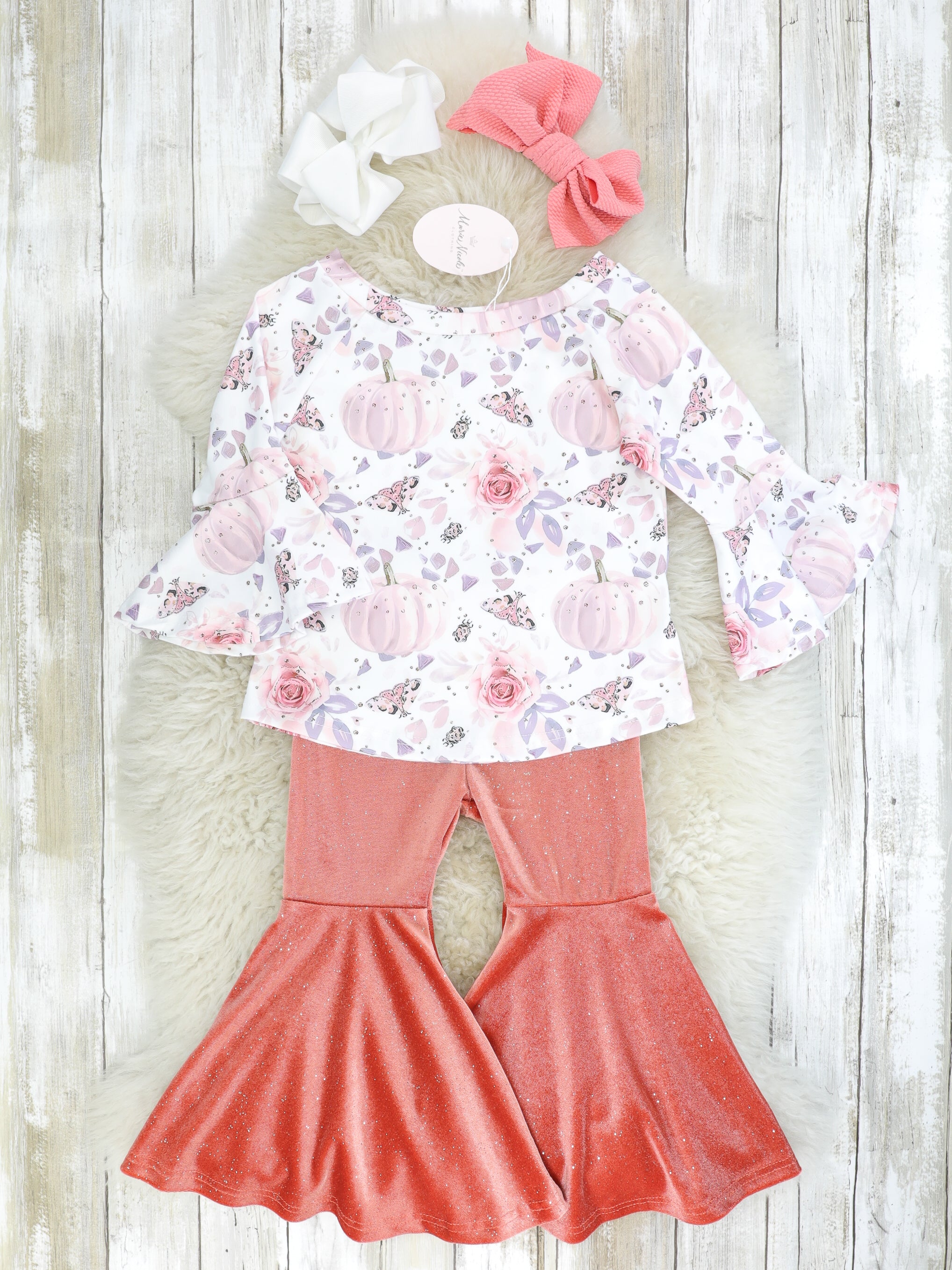 Pink Floral Pumpkin Top & Velvet Bell Bottoms