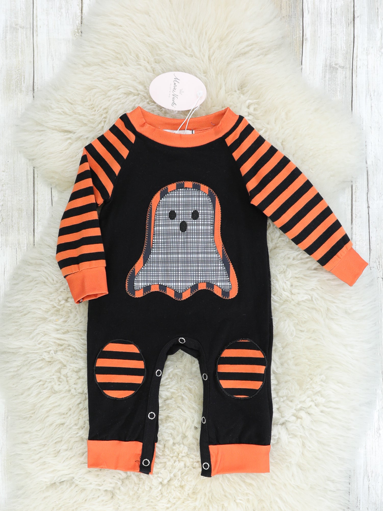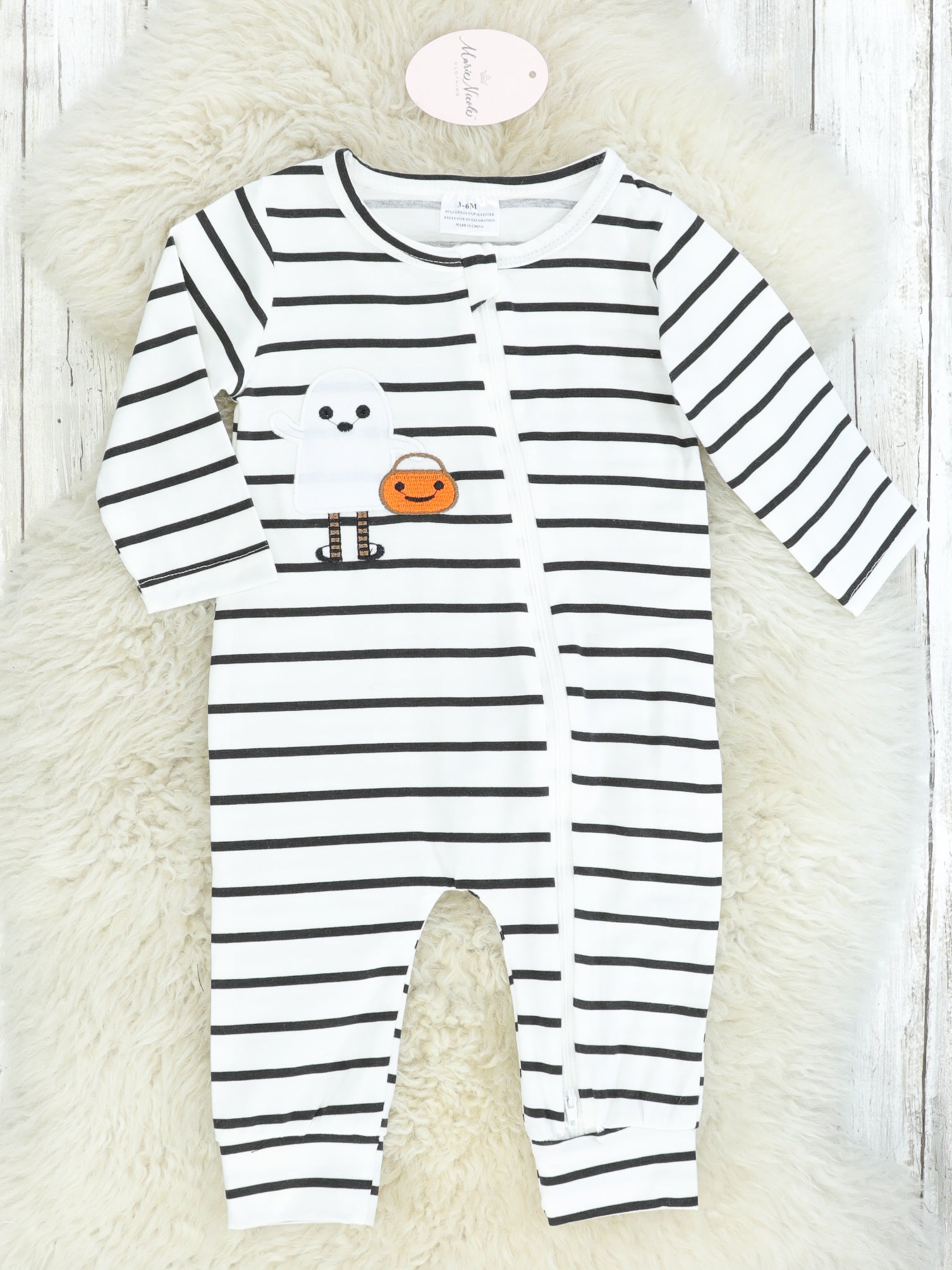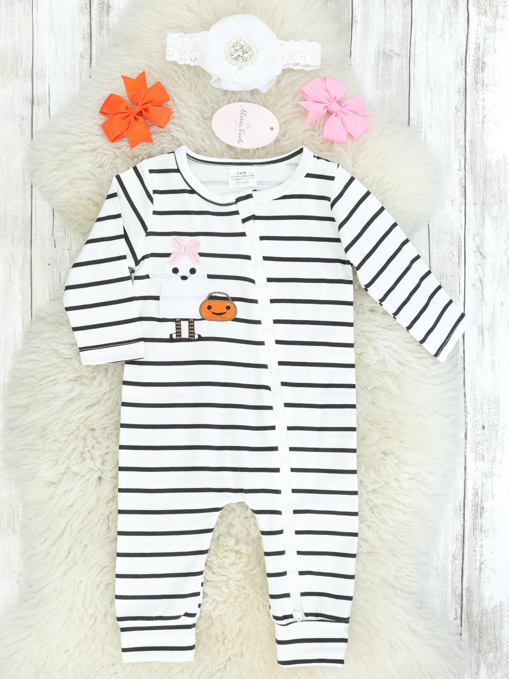 Striped Ghost W/ Bow & Pumpkin Romper Pajamas