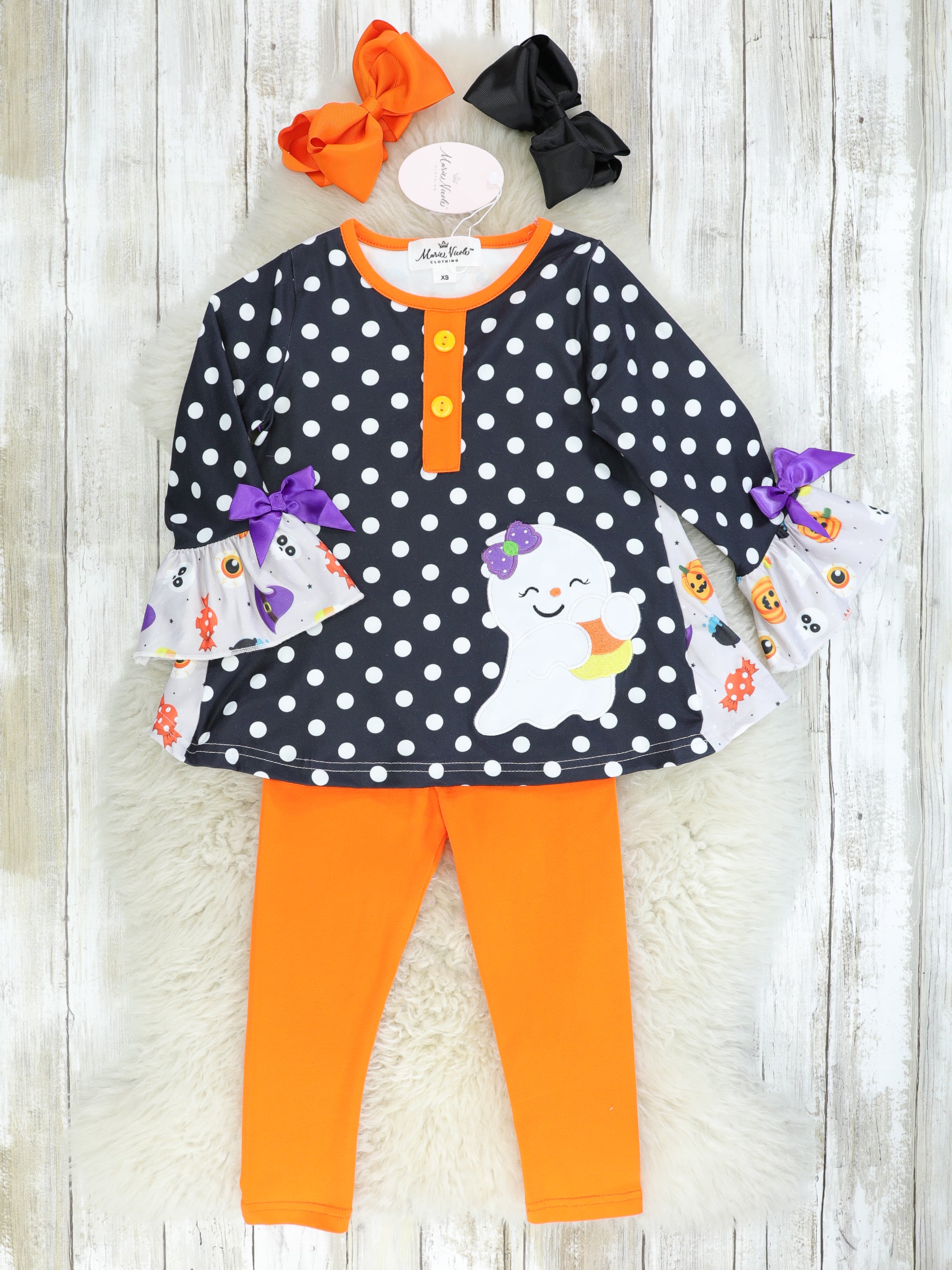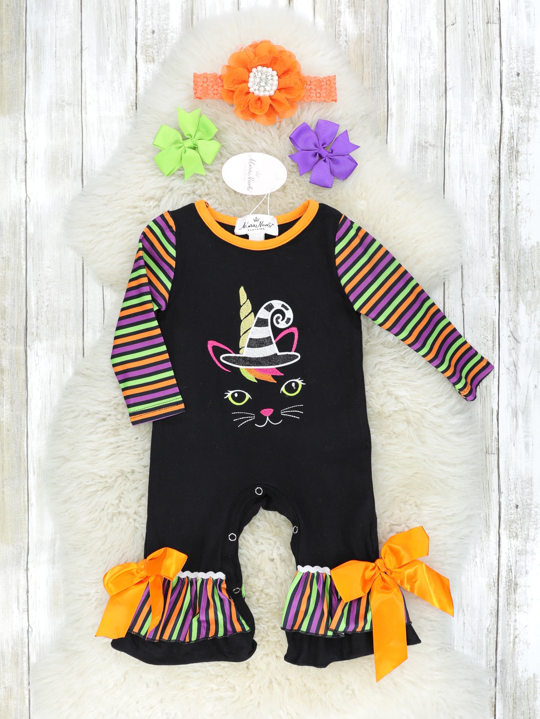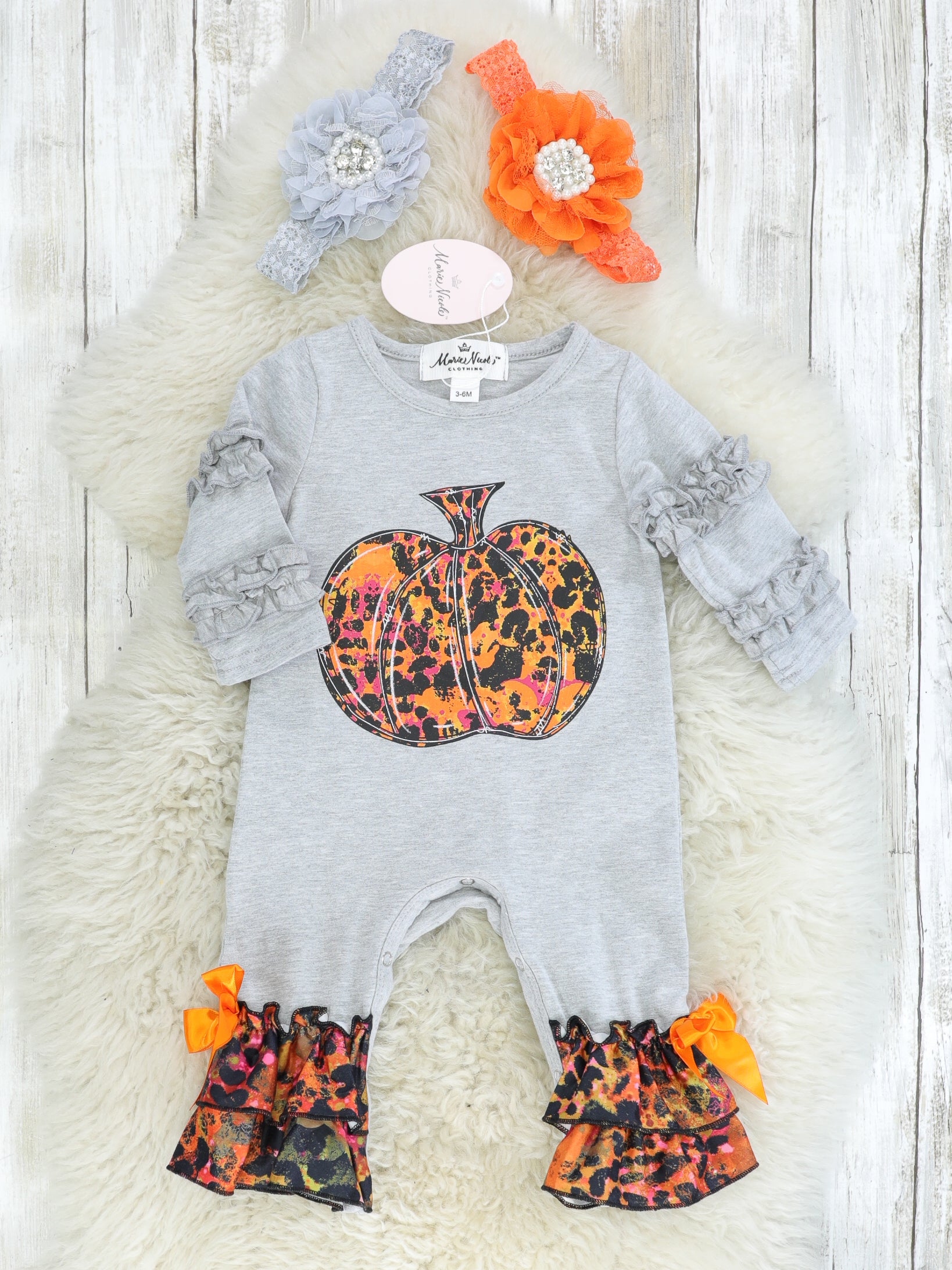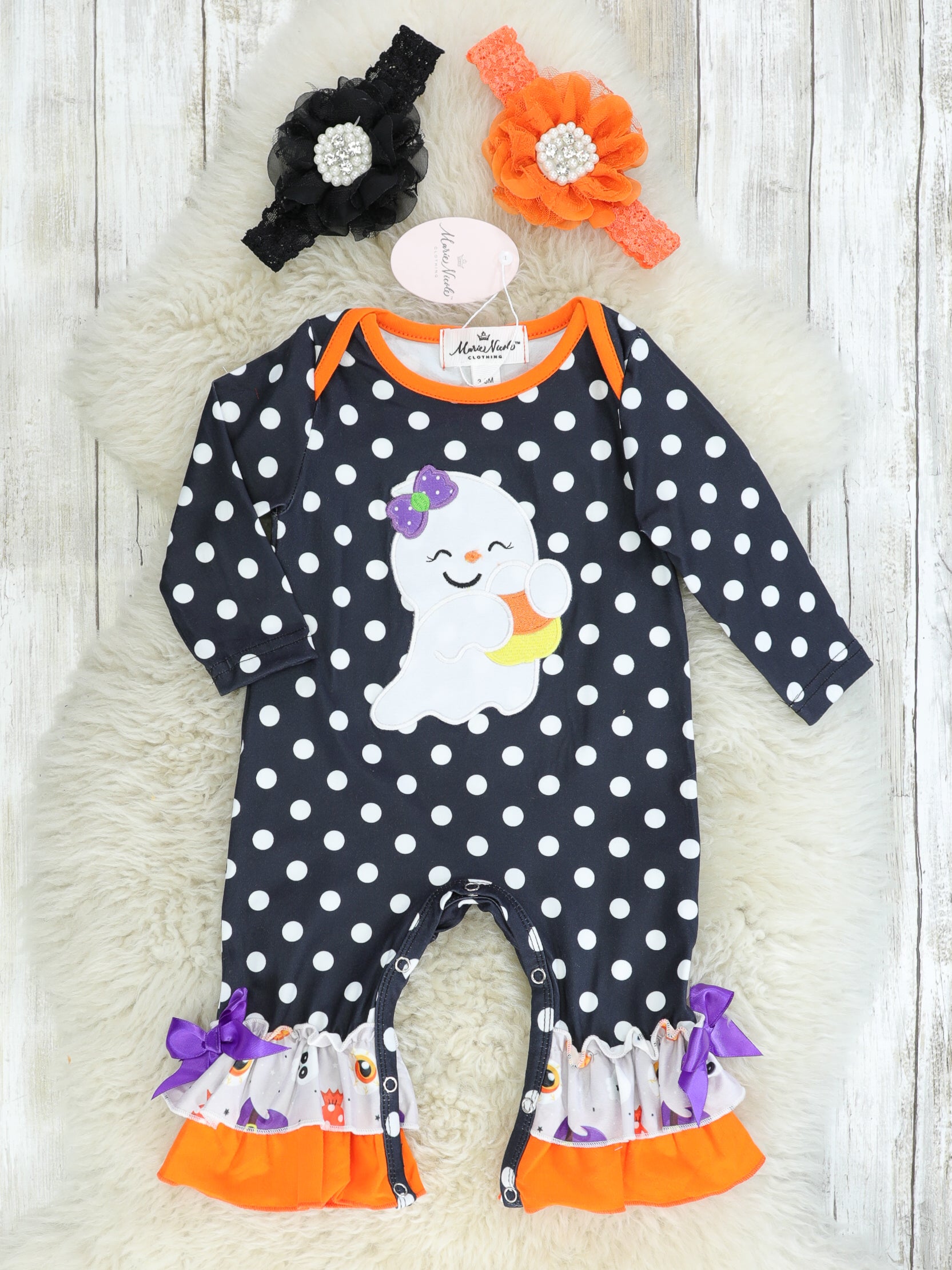 Striped Ghost W/ Bow & Pumpkin Romper Pajamas