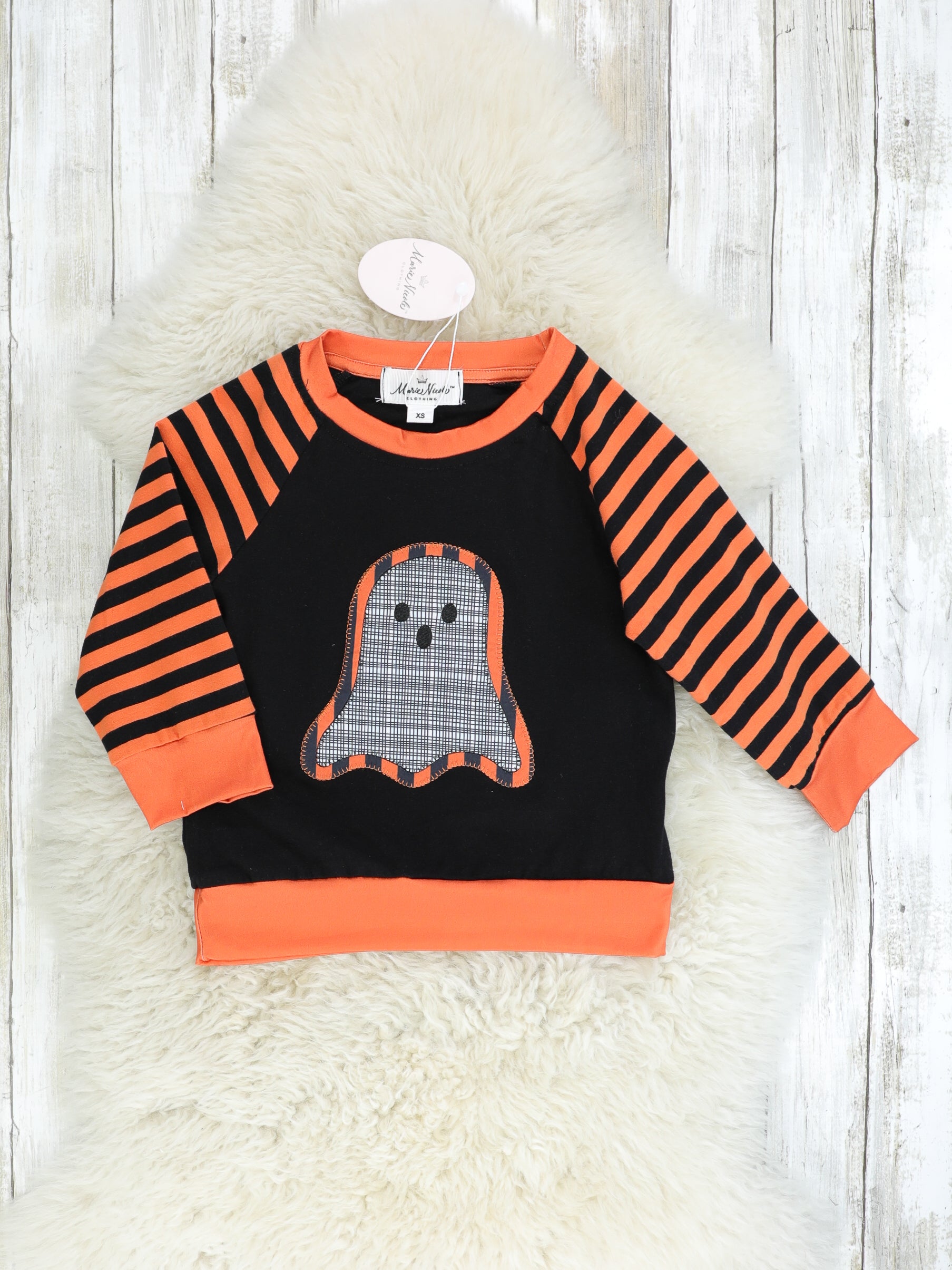 Orange & Black Striped Ghost Long Sleeve Shirt
