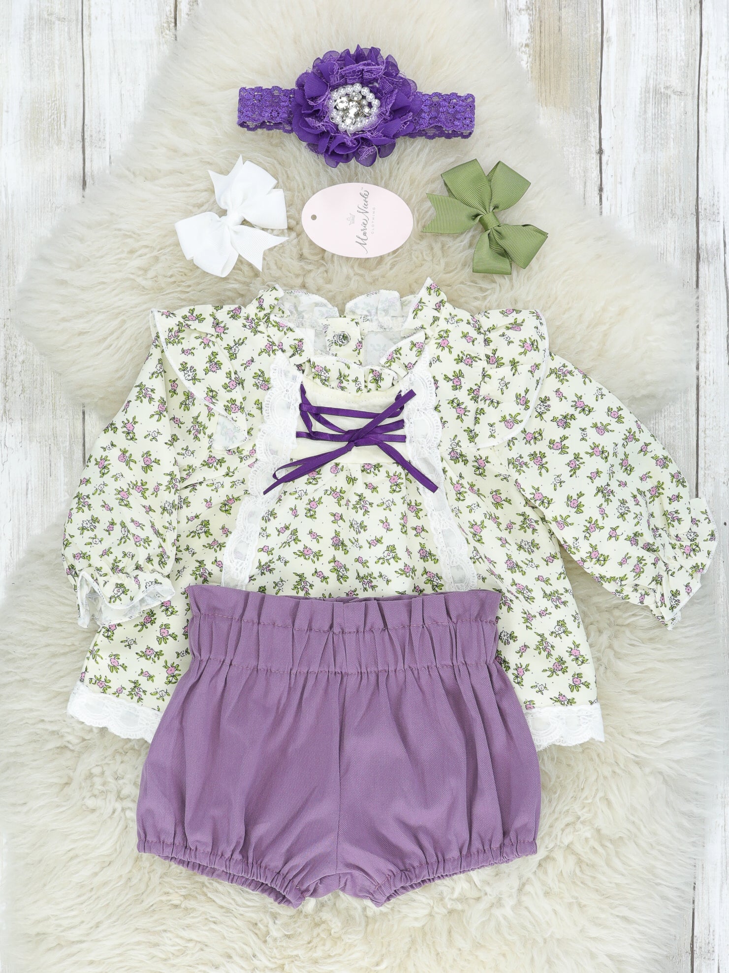 Ivory Lace Floral Top & Purple Bloomers Outfit