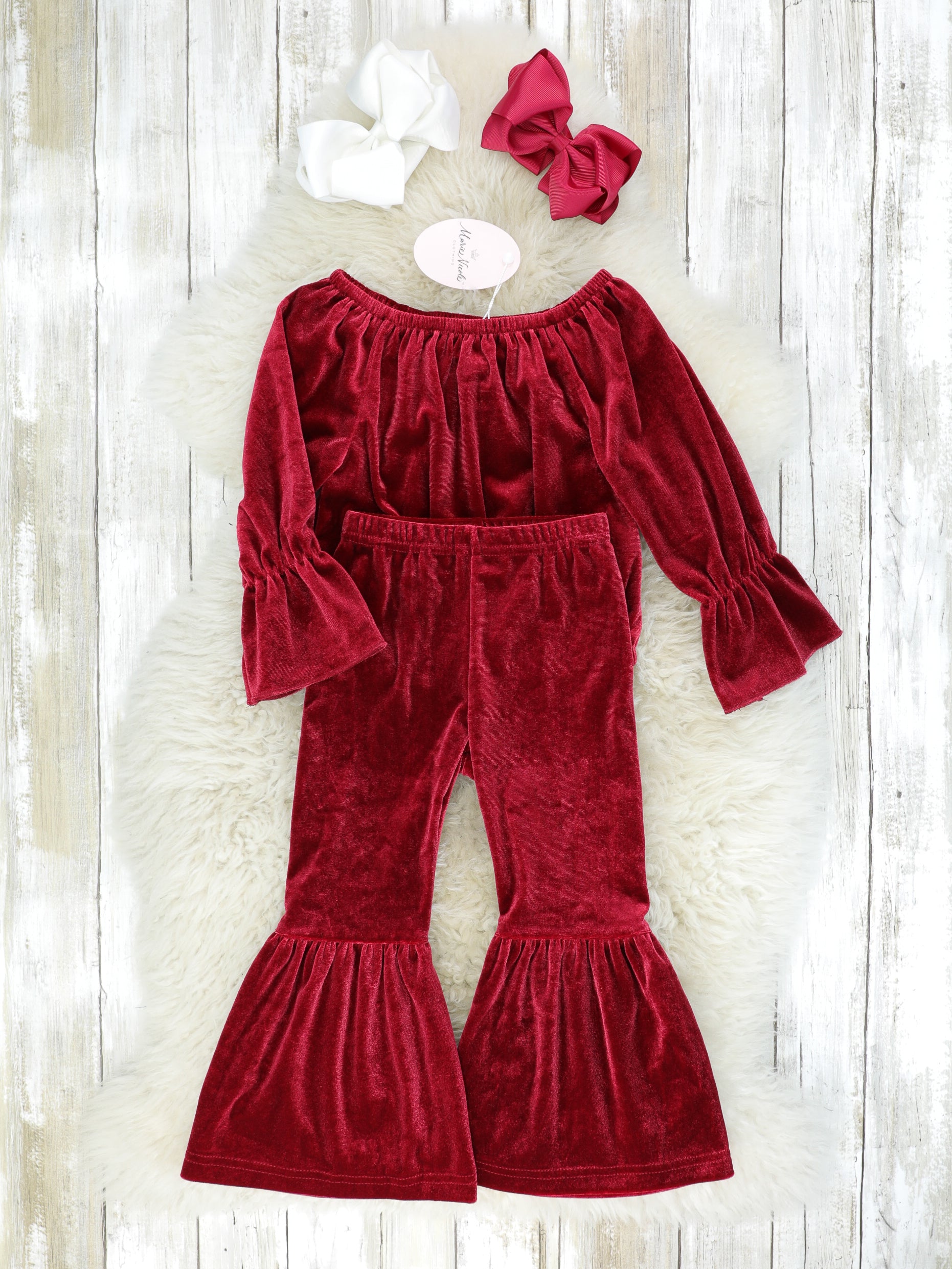 Ruby Red Velvet Top & Bell Bottoms Outfit