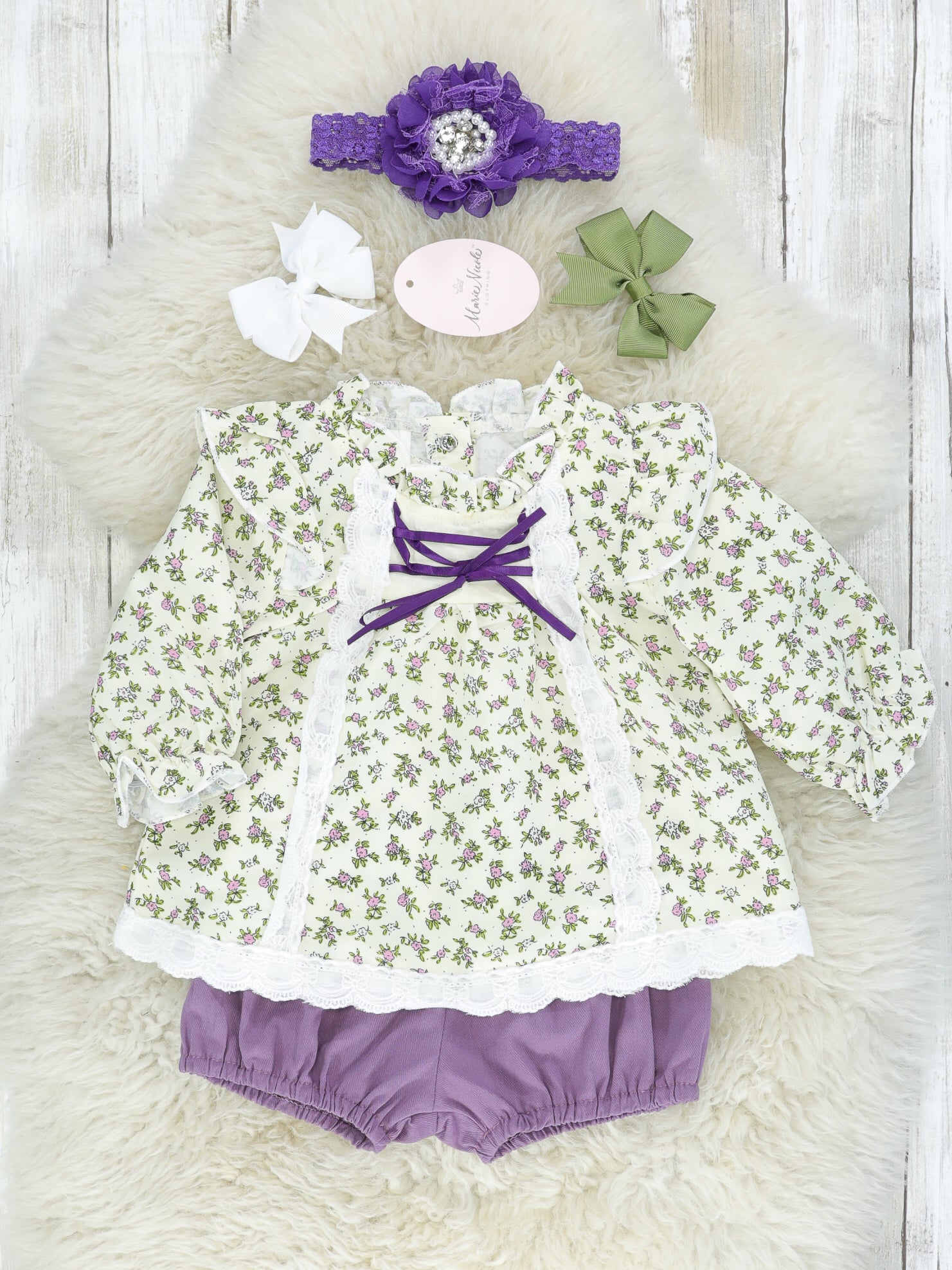 Ivory Lace Floral Top & Purple Bloomers Outfit