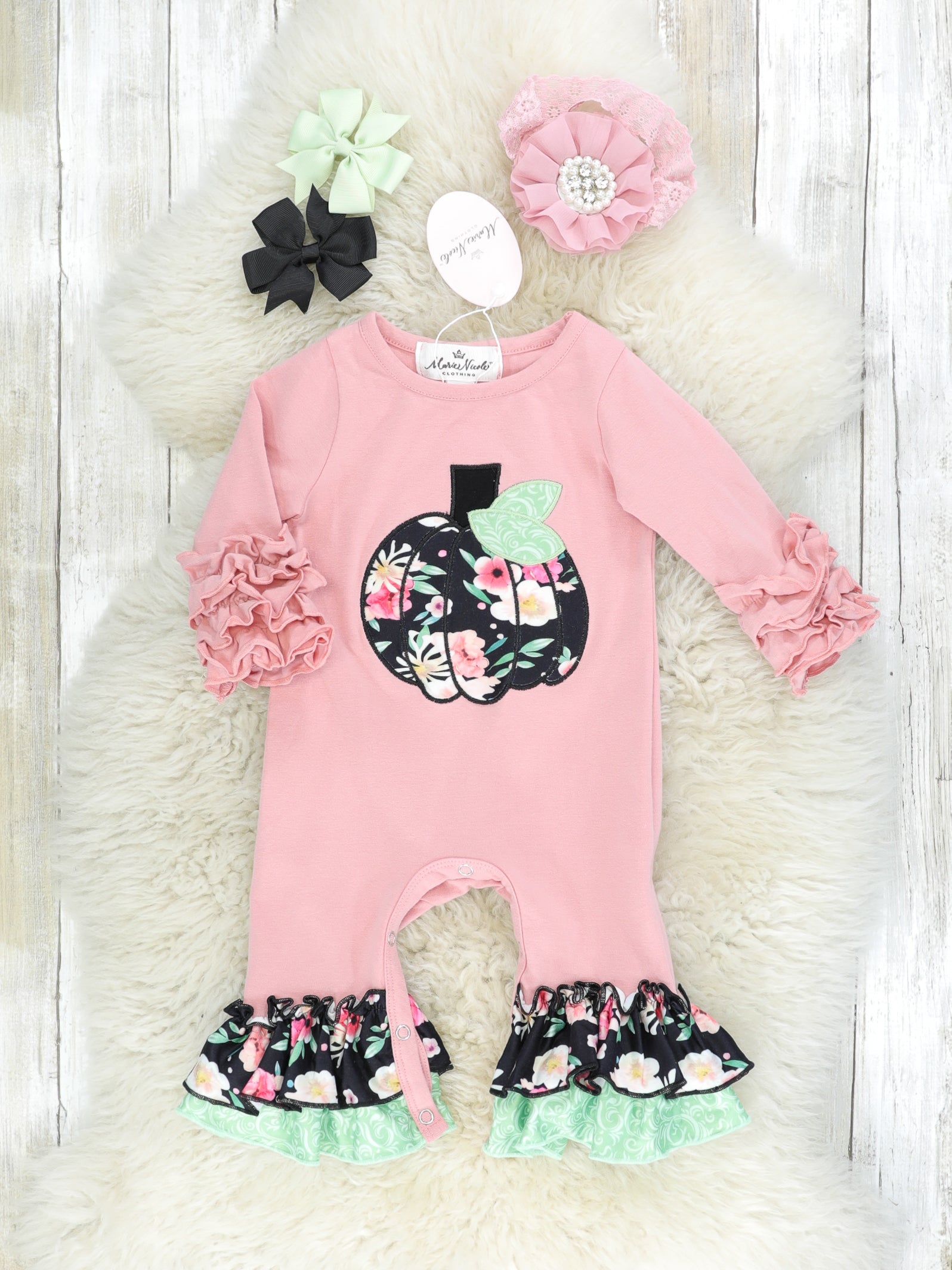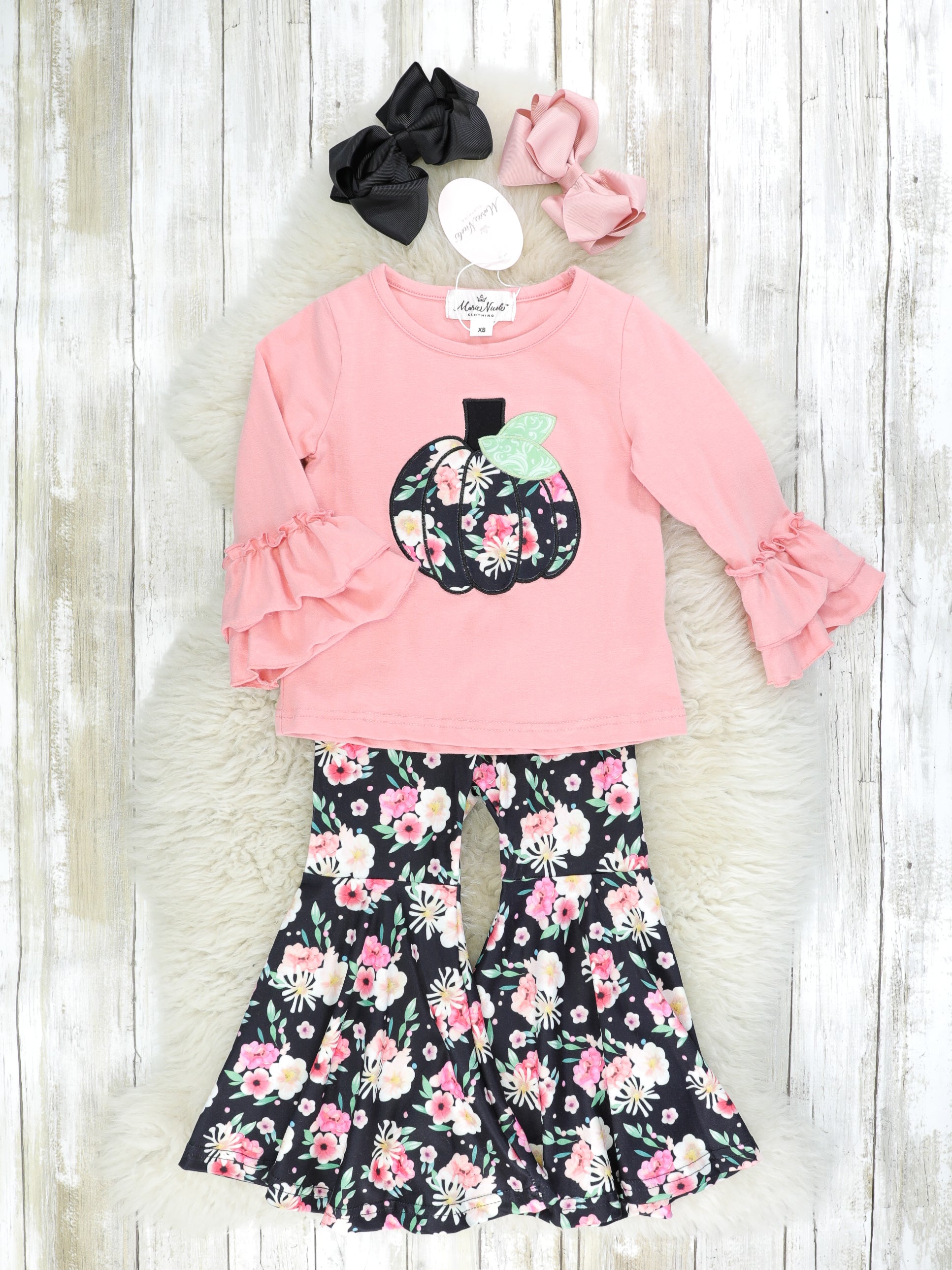 Pink & Black Floral Pumpkin Bell Bottom Outfit