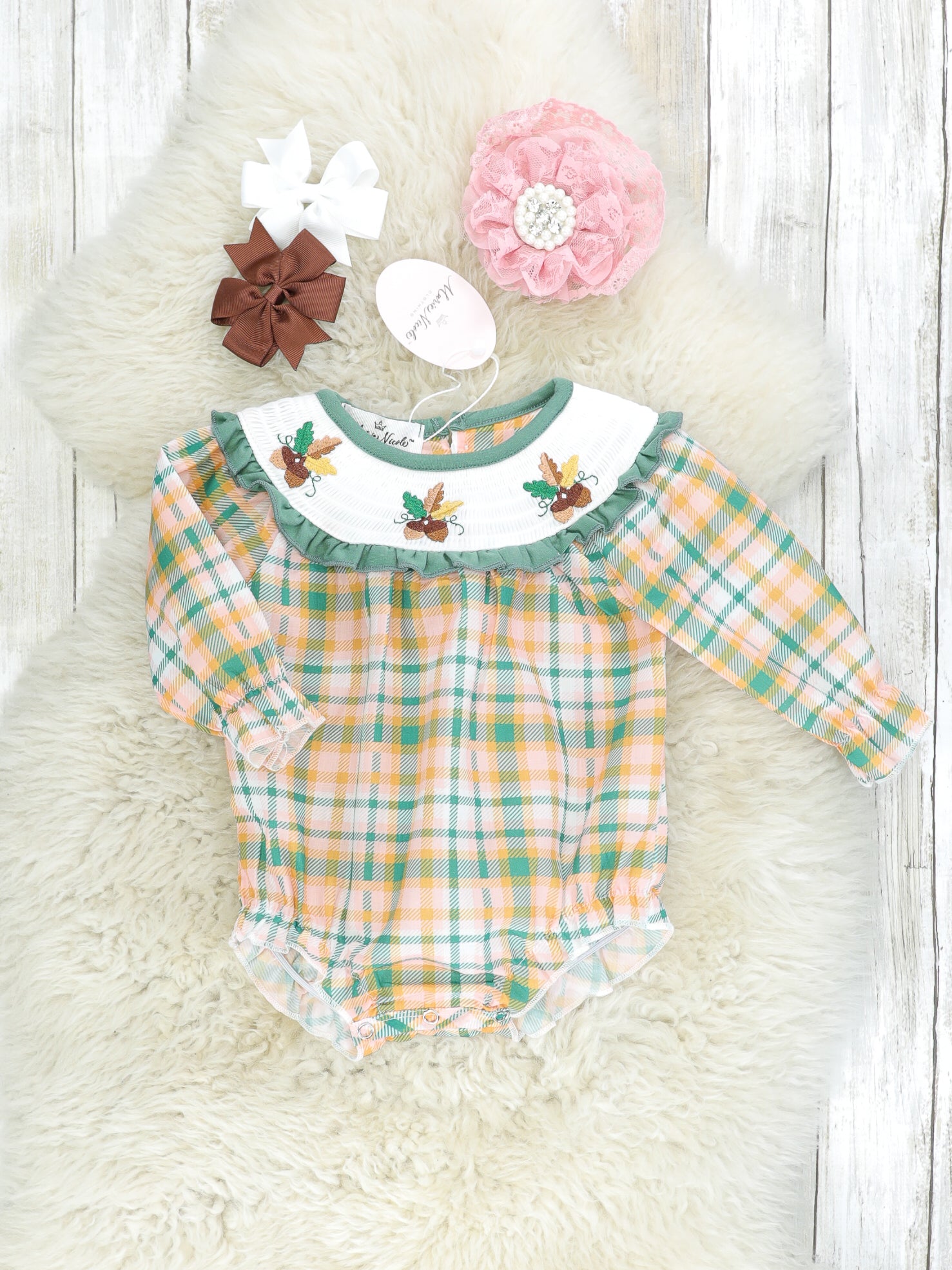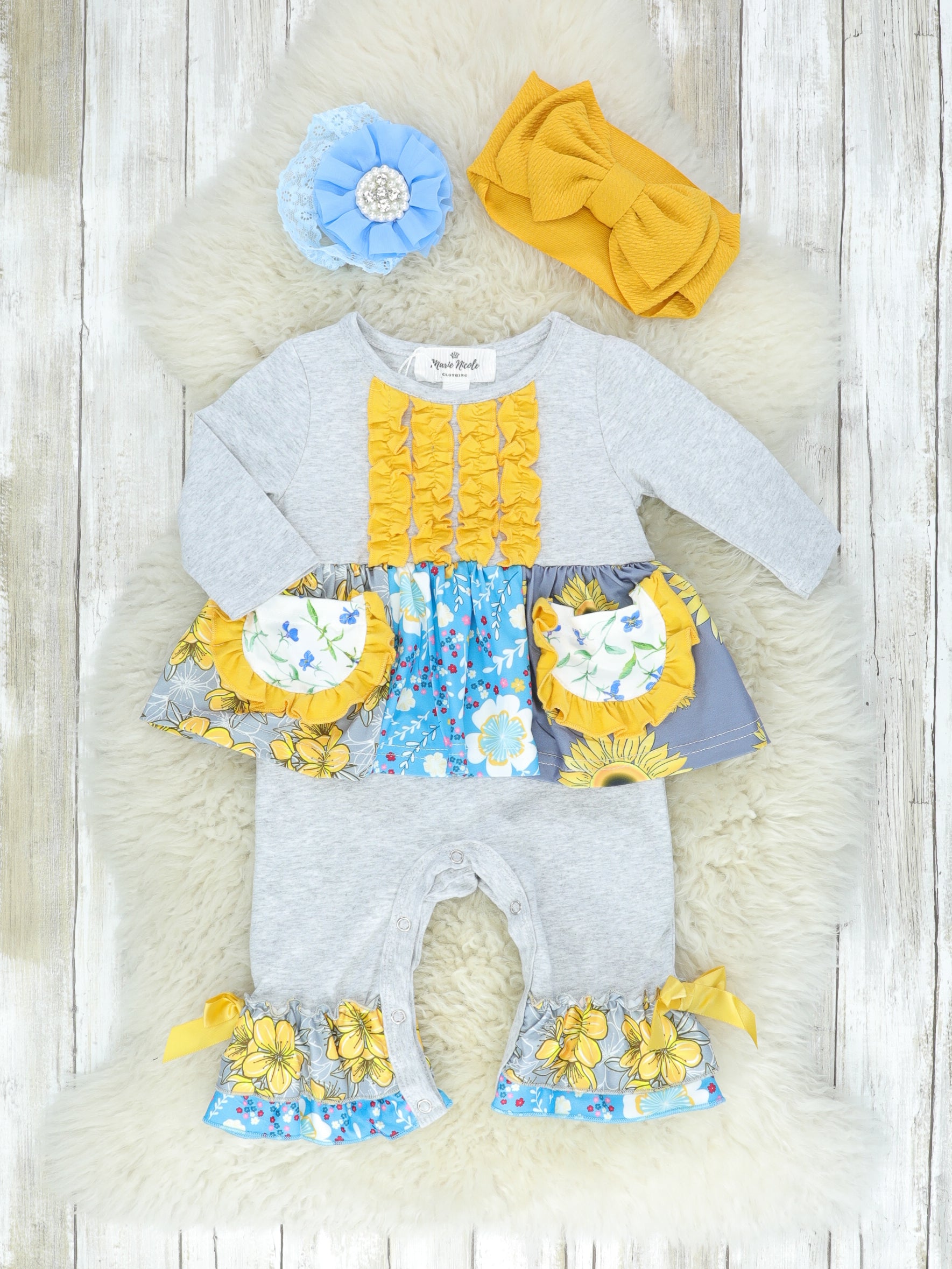 Grey & Mustard Floral Pocket Ruffle Dressy Romper