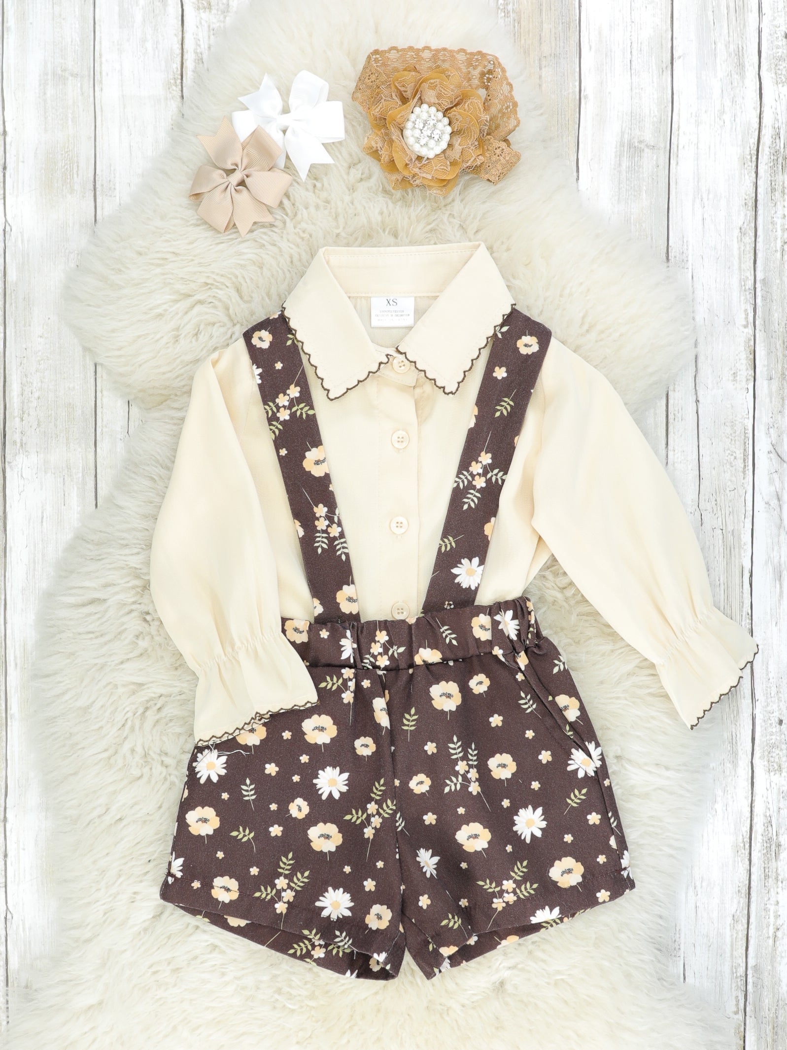Navy & Burnt Orange Persimmon Suspender Skirt Set