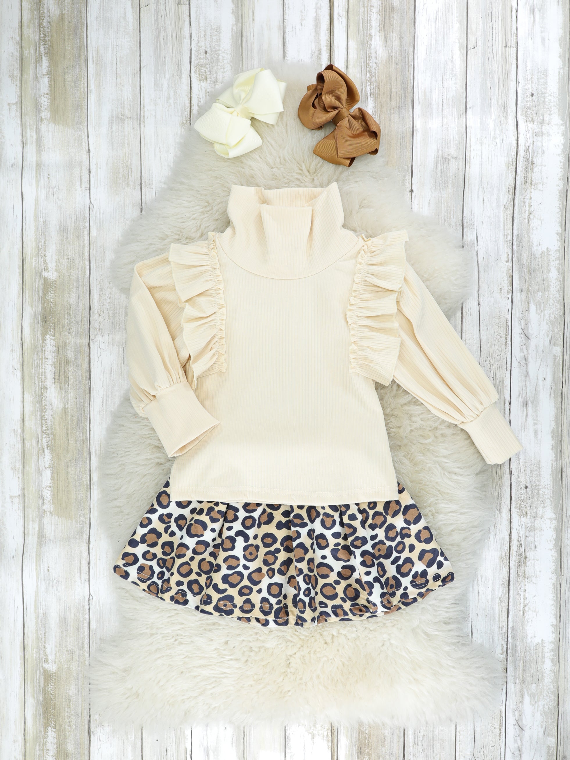Cream Turtle Neck & Leopard Skirt Outfit