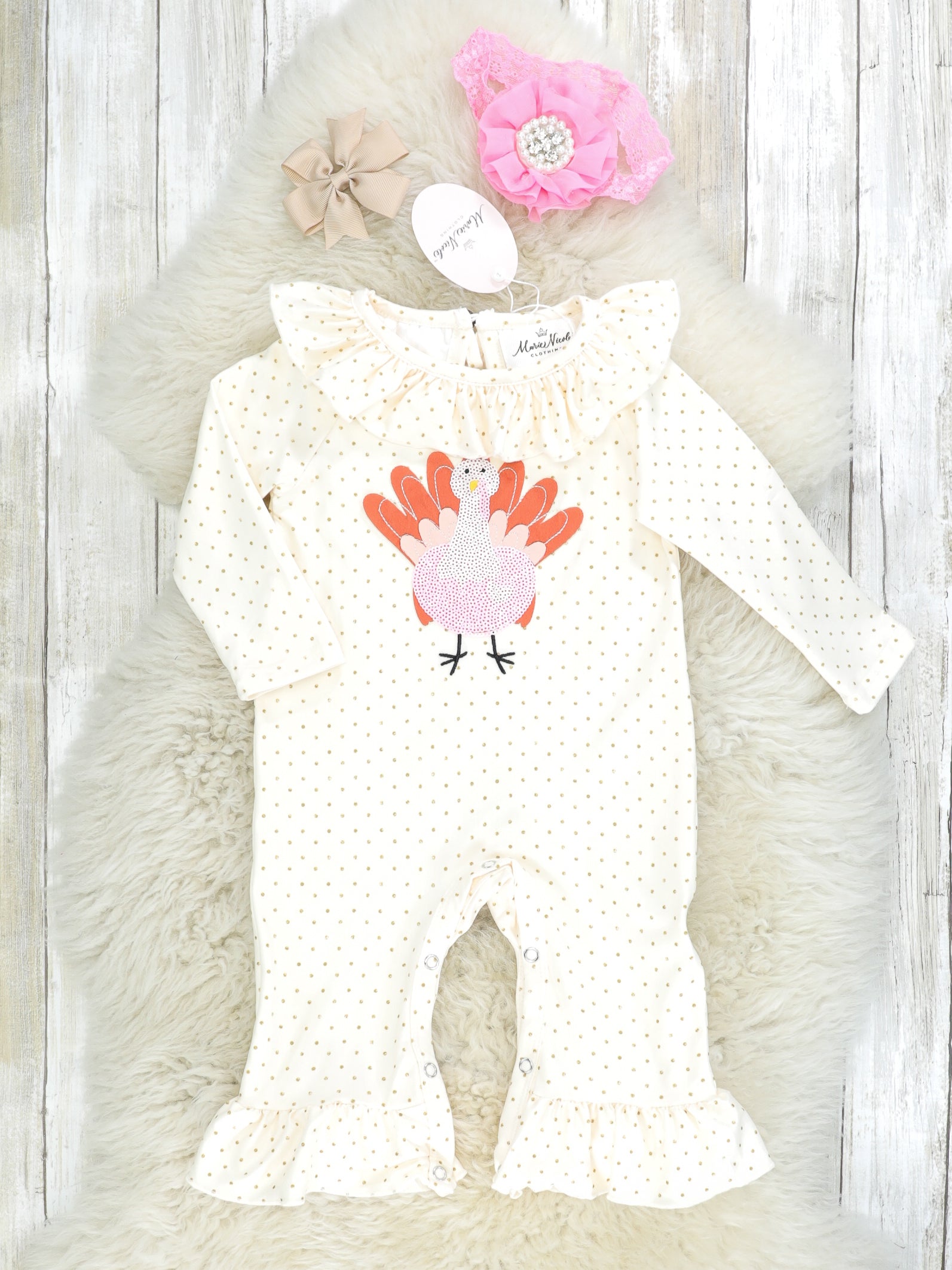 Pink Polka Dot Turkey Ruffle Romper