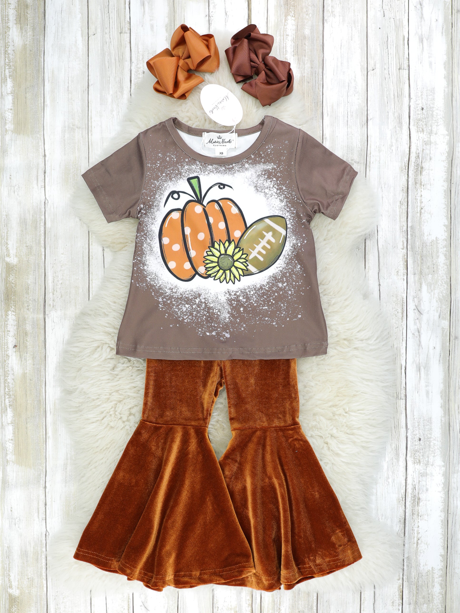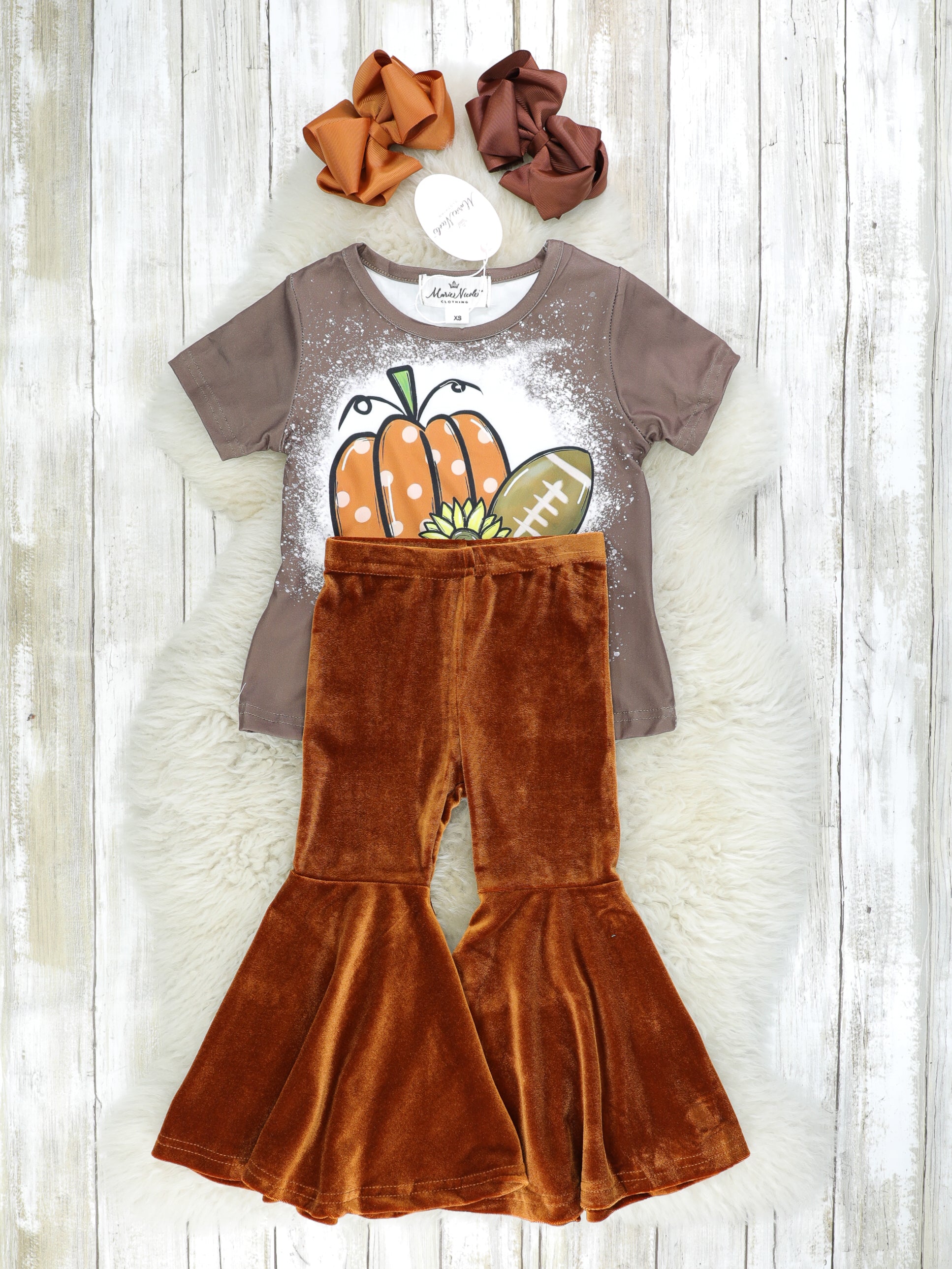 Brown Football Top & Velvet Bell Bottoms Outfit