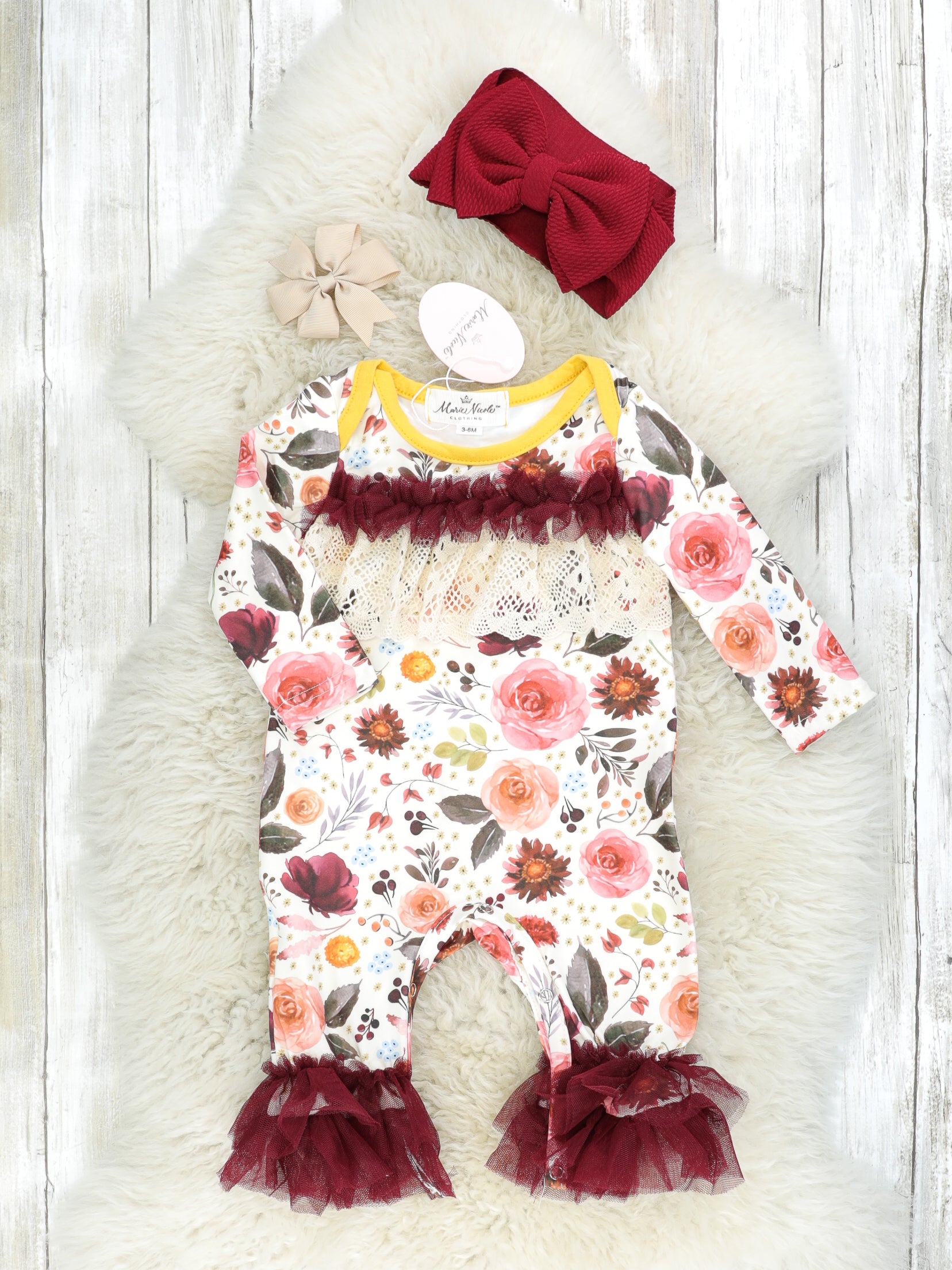 Burgundy Floral Tulle Ruffle Romper