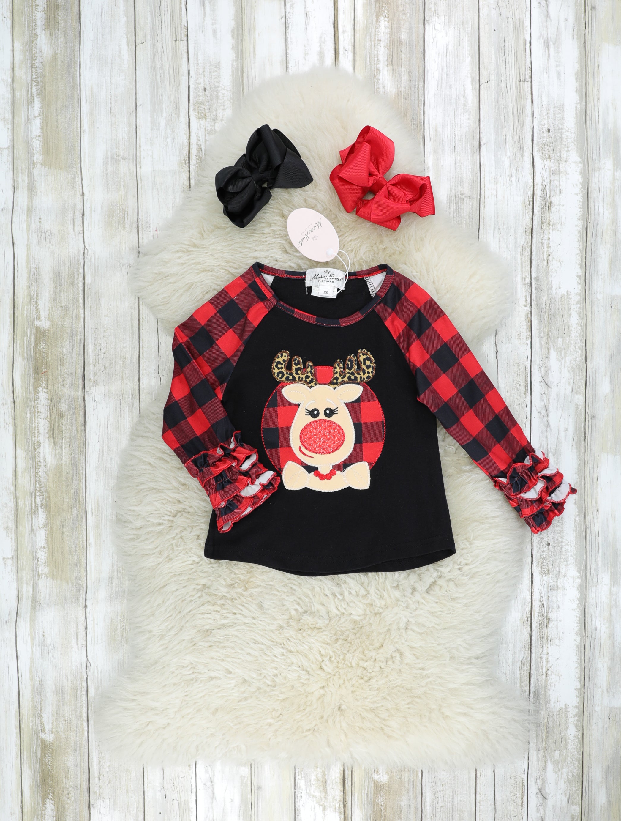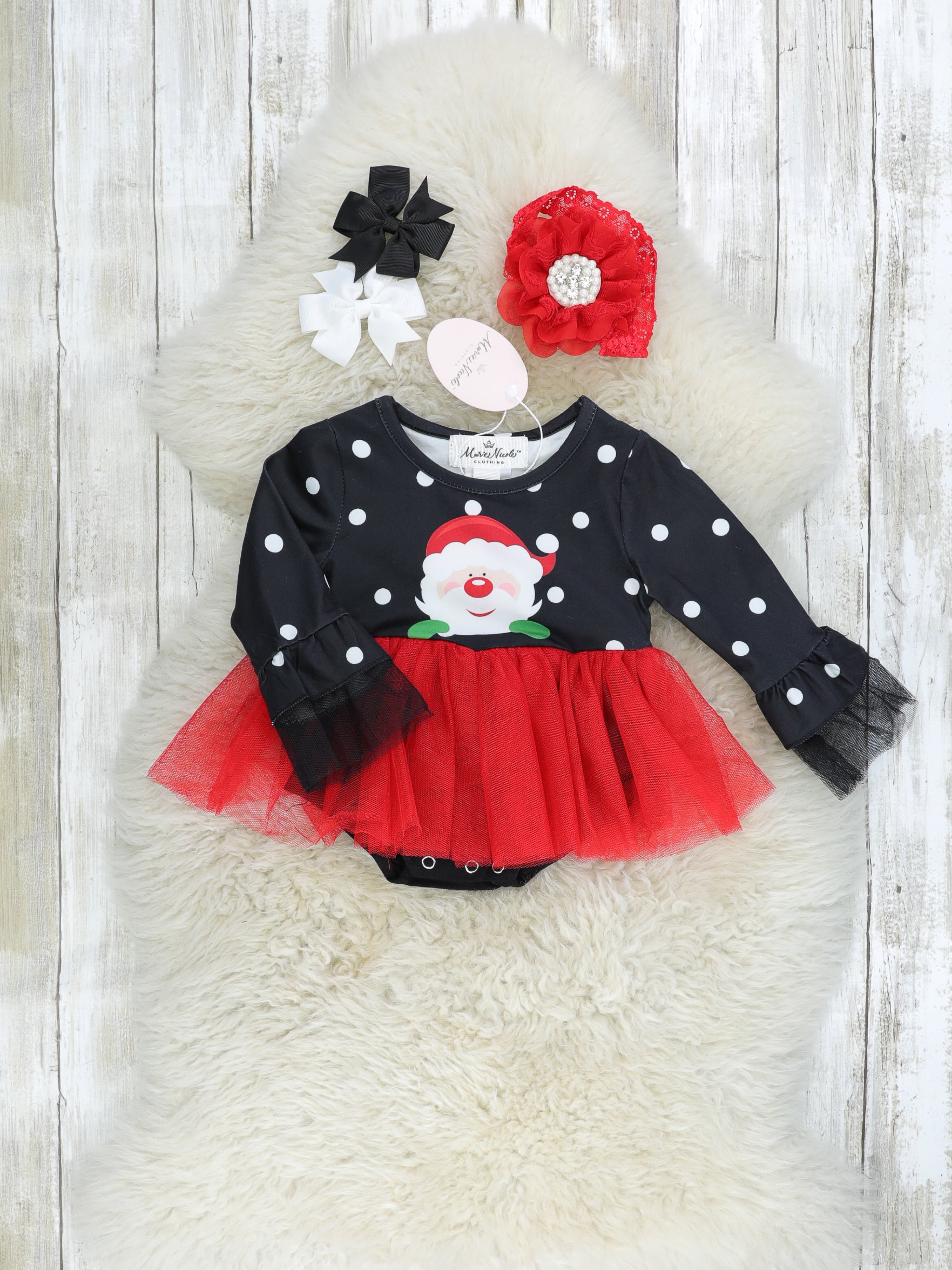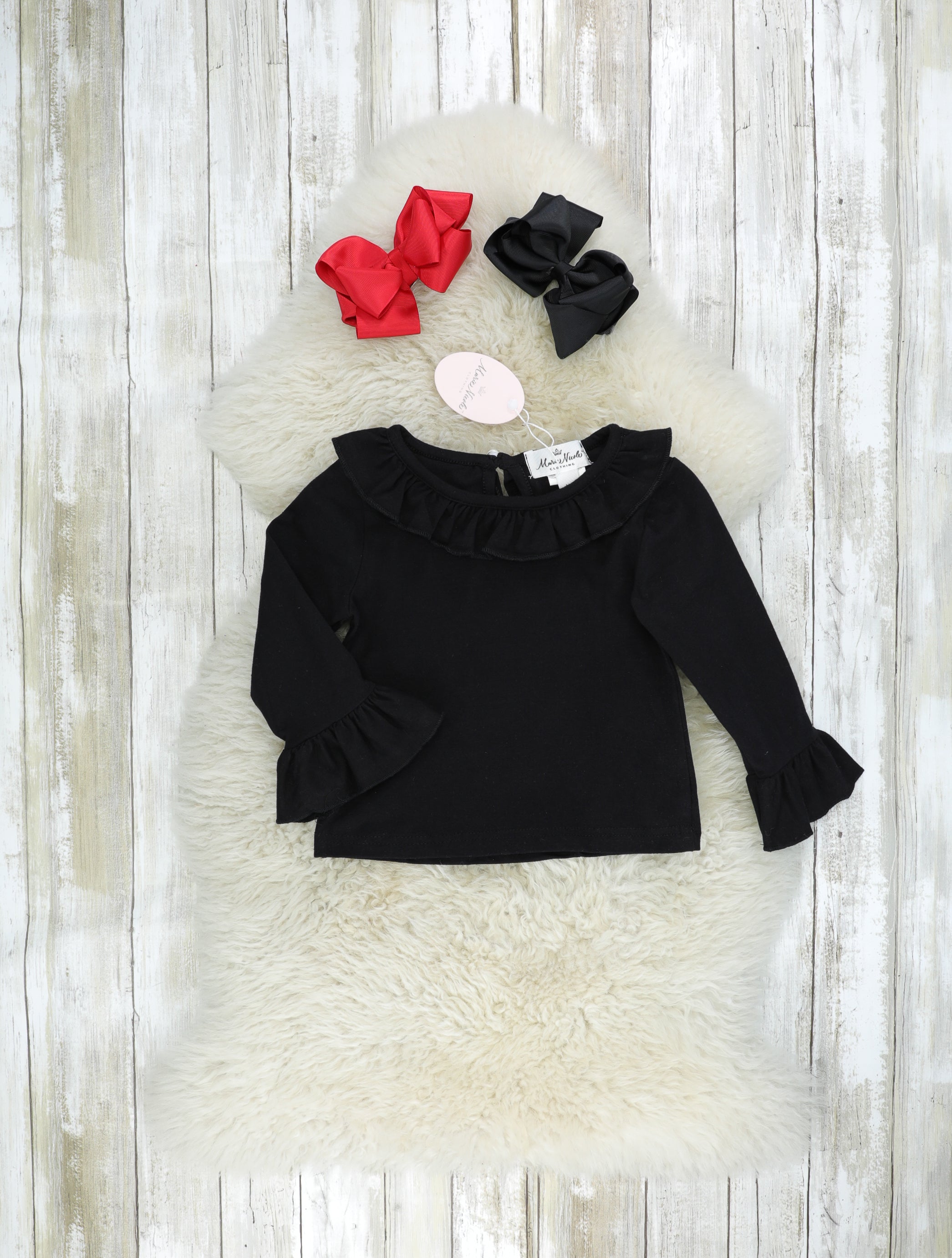 Black Puff Sleeve Top & Santa Bell Bottoms Outfit