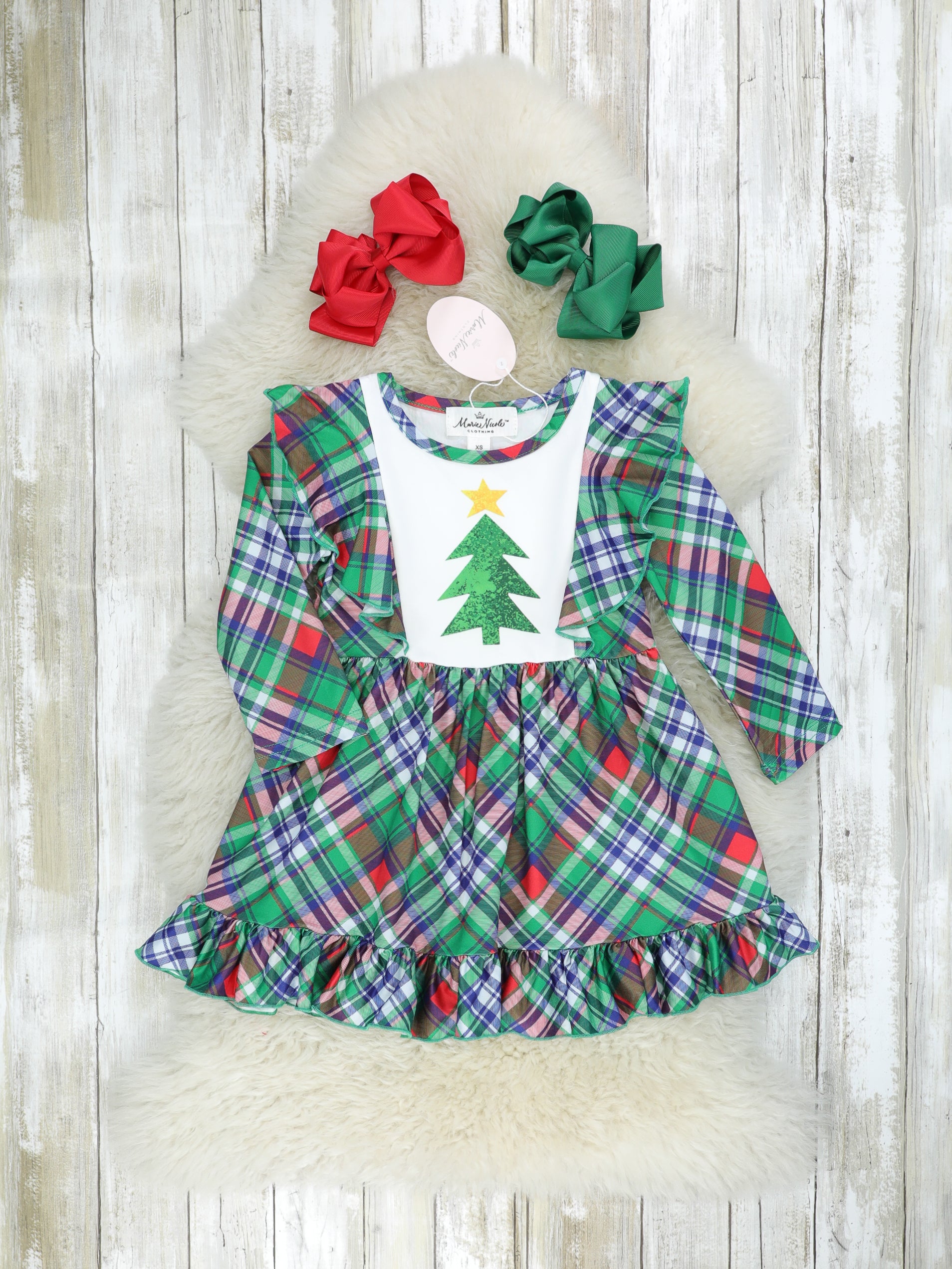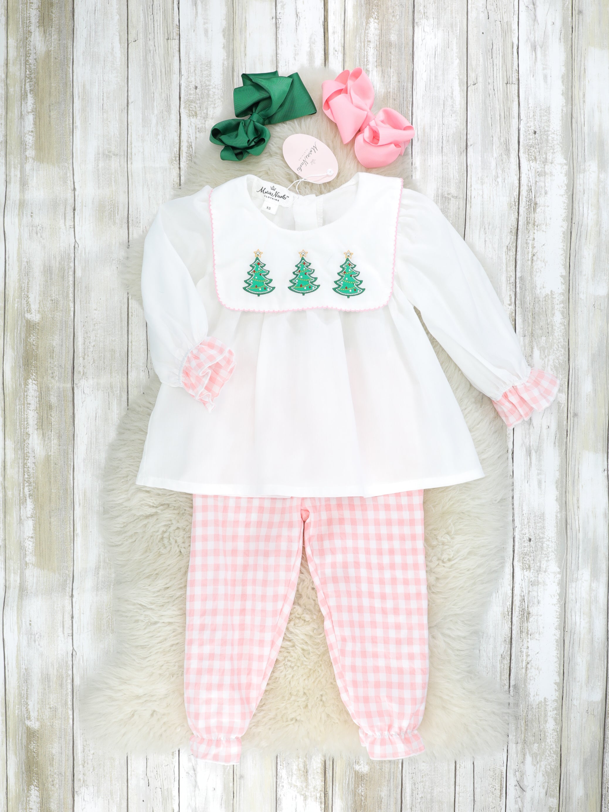 Pink Gingham Christmas Tree Bib Collar Outfit