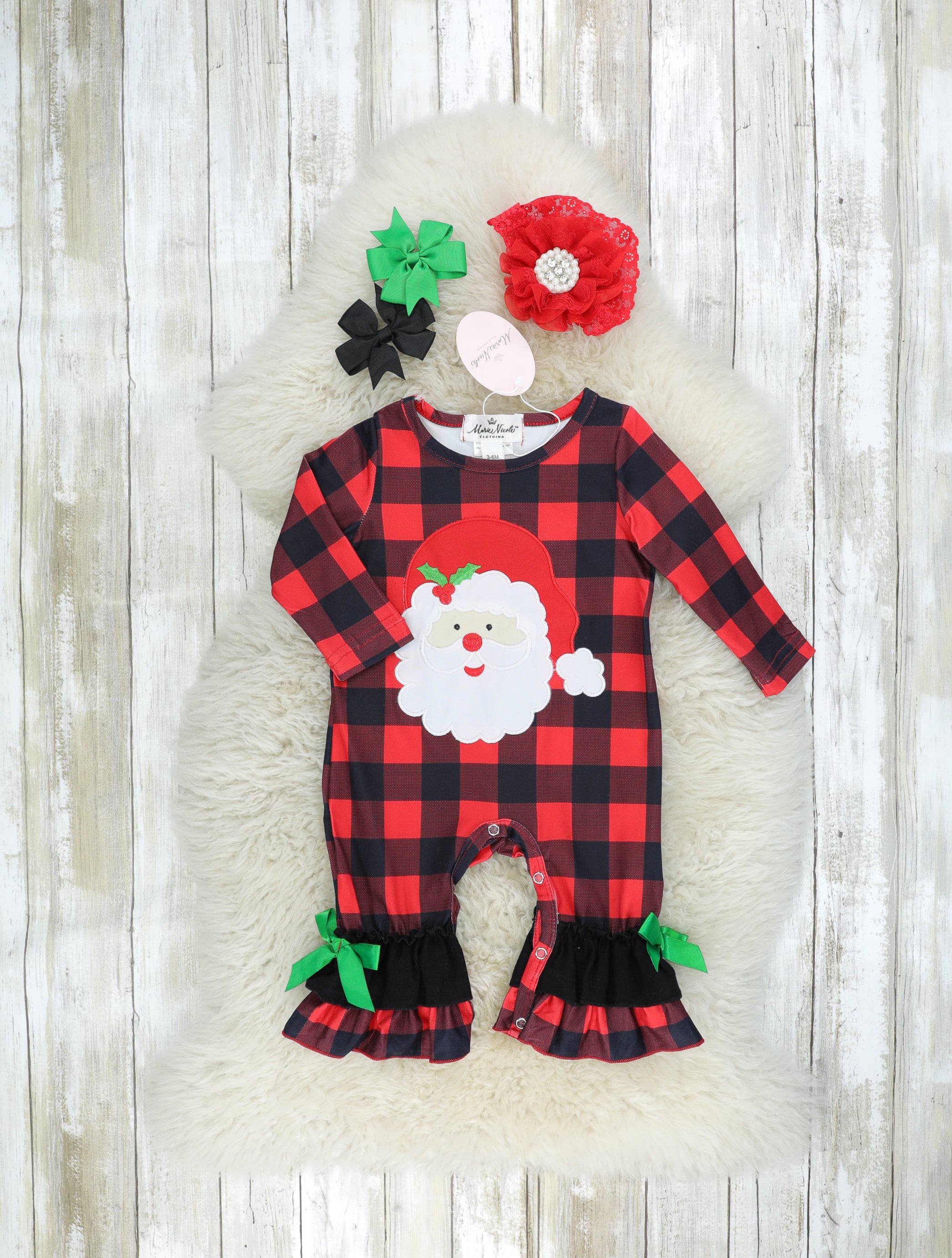 Buffalo Plaid "Let It Snow" Raglan Romper