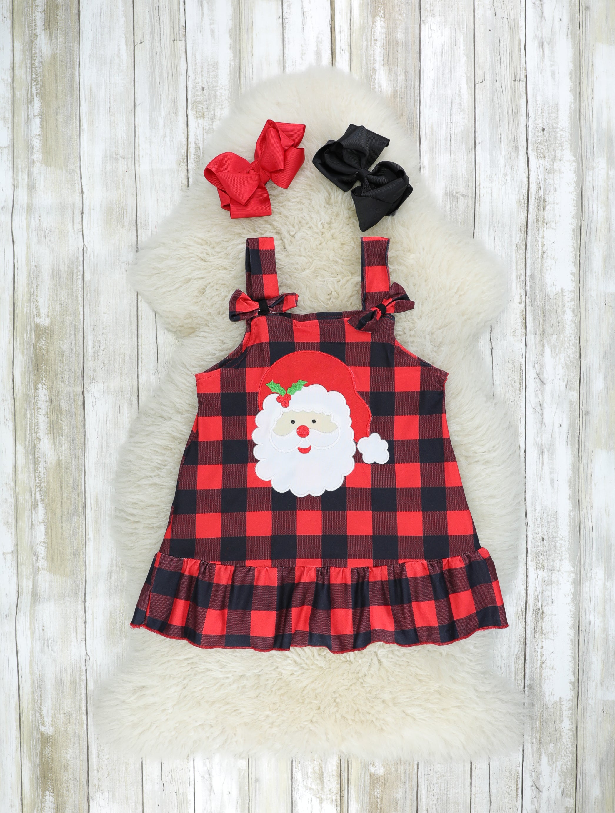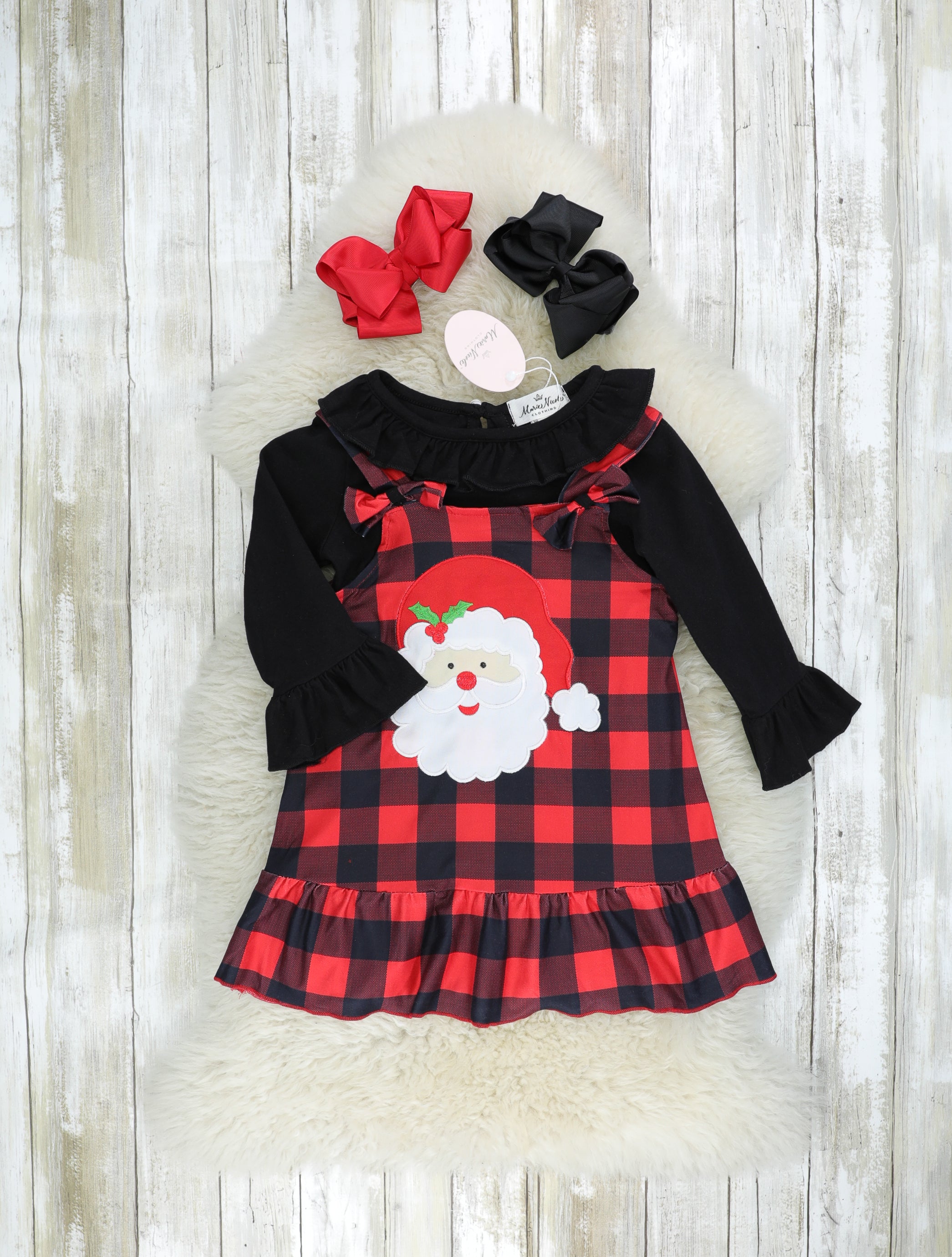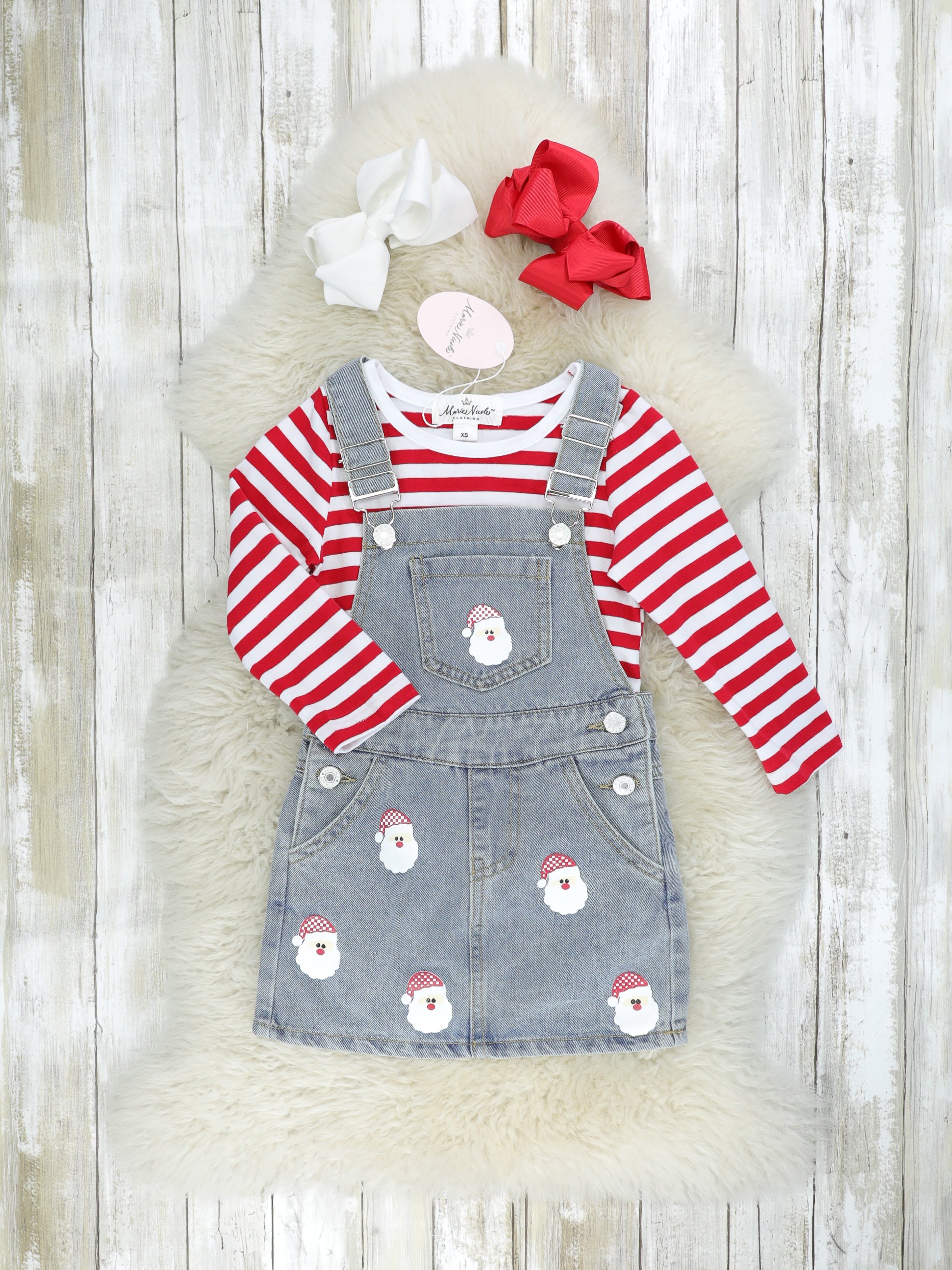 Red Striped Shirt & Denim Santa Overall Dress Set