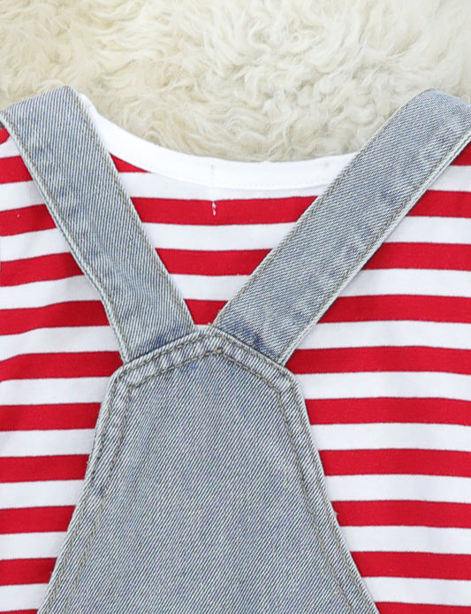 Red Striped Shirt & Denim Santa Overall Dress Set