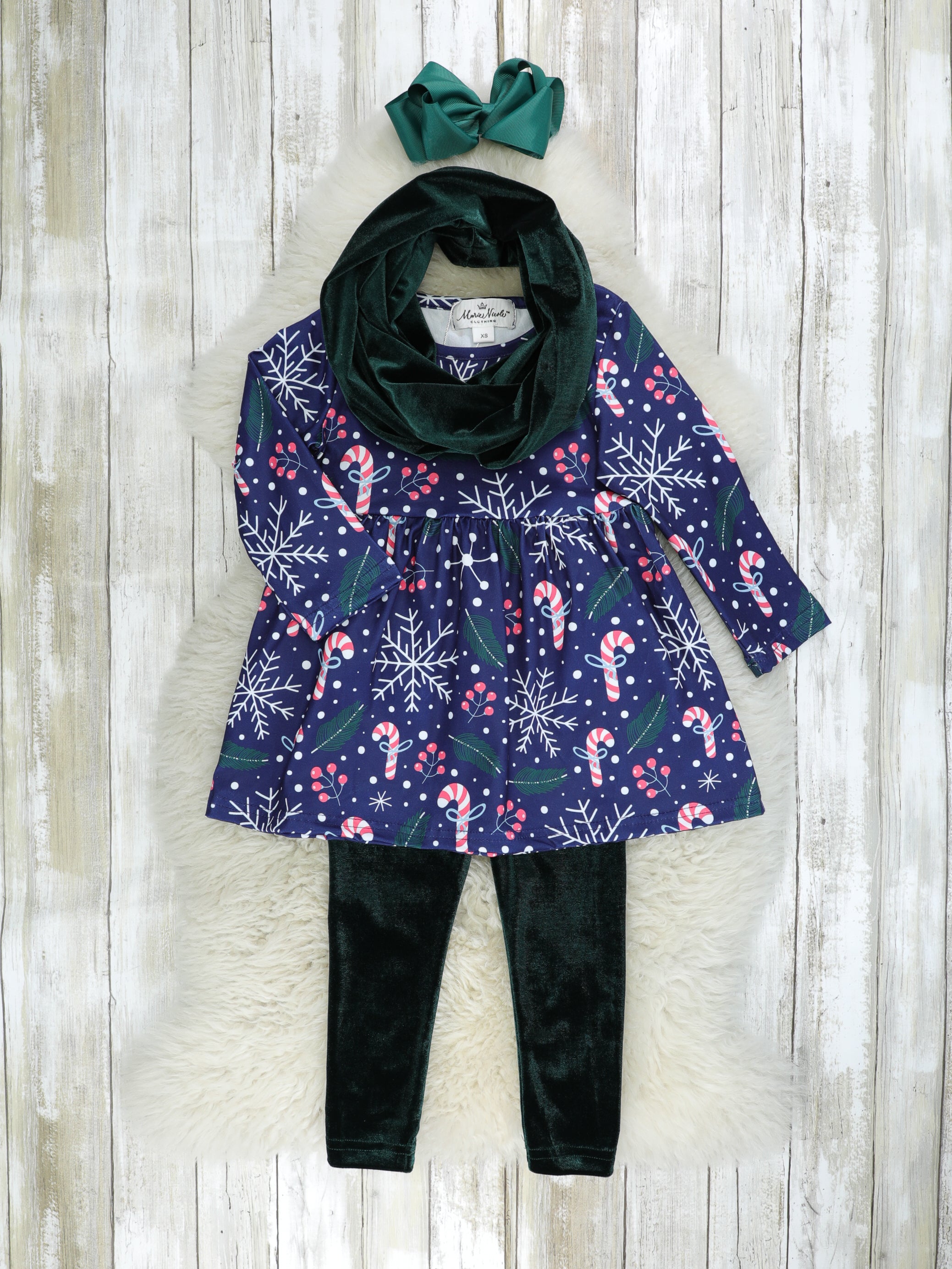Candycane Peplum Top & Velvet Bell Bottoms Outfit