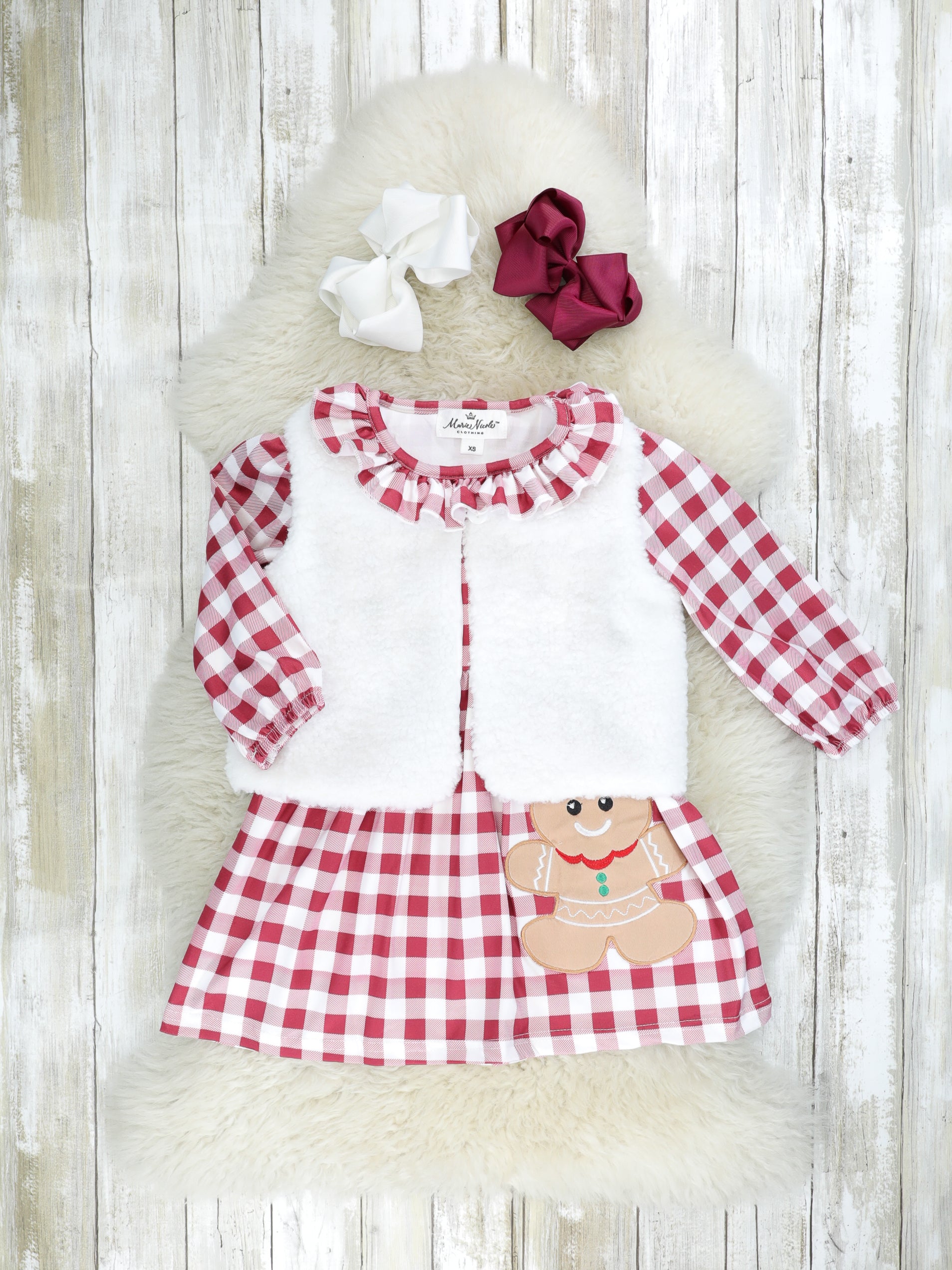 Red Plaid Gingerbread Pocket Ruffle Dress